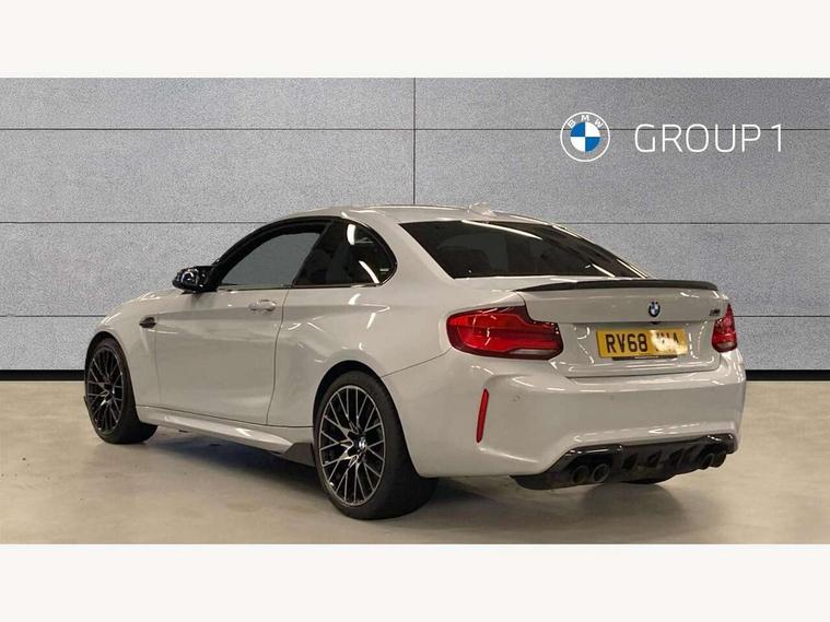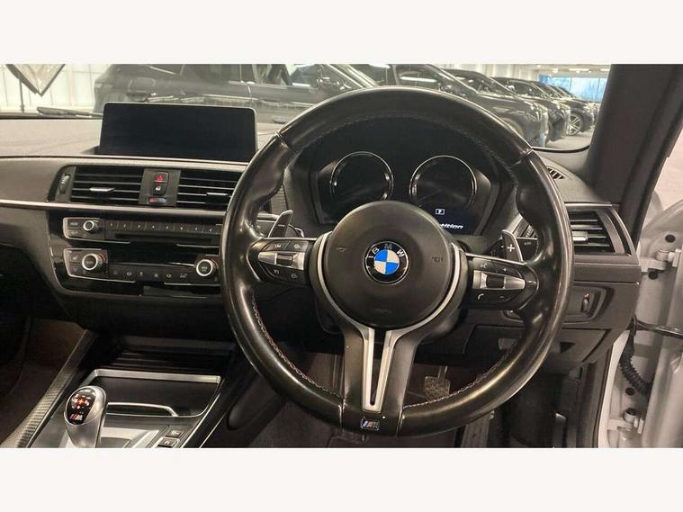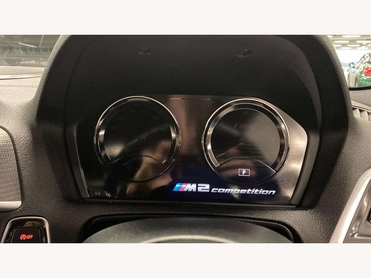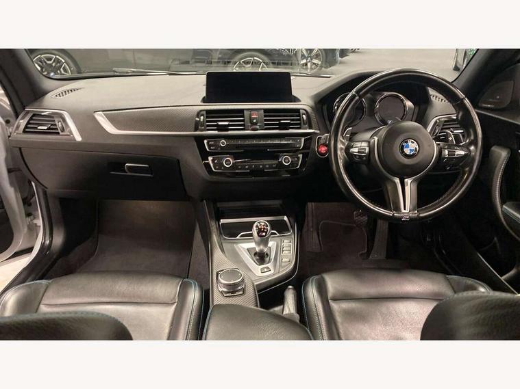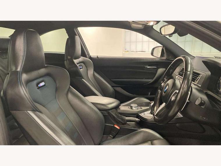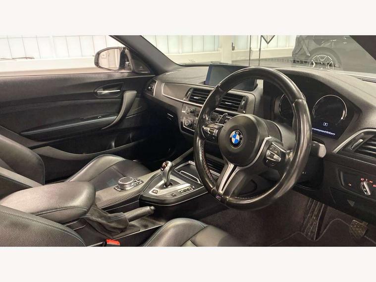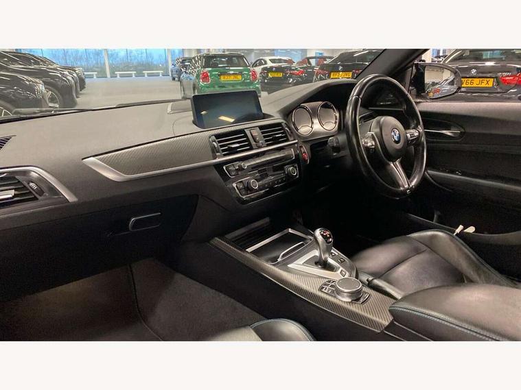 BMW Online services, BMW remote services, BMW Teleservices, Brake pad wear indicator warning light, Check control system, Cruise control with brake assist, Door/boot open warning, Front/rear Parking distance control, Lights on warning, M Servotronic power steering, Oil temperature gauge, On board computer, Outside temperature display, Real time traffic information, Service interval indicator, Speed limiter, Stop/start button, Drive Performance Control, BMW professional radio/CD/MP3, DAB Digital radio, 2 speed adjustable intermittent wipers with wash/wipe function, Auto dimming rear view mirror, Black chrome exhaust, Body colour bumpers, Body colour door handles, Body colour mirror caps, Body colour roof mouldings, Door sill finishers, Dynamic brake lights, Electric adjustable heated door mirrors, Electric front windows/one touch facility, Follow me home headlights, Front apron with large air inlets, Headlight range control, Heat insulating tinted glass, Heated windscreen washer jets, High gloss black kidney grille, High gloss shadow line, LED rear lights, LED welcome home lights, M aerodynamic body styling, M rear spoiler, Quad exhaust tailpipe finisher, Rain sensor including auto headlights activation, Shark fin roof aerial, Welcome lighting, 12V sockets in front centre console and passenger footwell, 4 grab handles, Anthracite headlining, Anthracite Velour floor mats, Dakota leather upholstery, Driver + passenger electric lumbar support, Folding storage compartment with glasses holder + coin tray, Front cupholders x 2, Front door storage bins, Front head restraints, Front sliding armrest, Front/rear armrests within door panels, Glovebox with lid, Isofix rear child seat preparation, Lashing eyelets in boot, Leather gearknob, Leather handbrake lever, M multifunction nappa leather steering wheel, M Sports seats, Reach + rake adjustable steering column, Rear centre armrest, Rear coat hooks, Storage compartment in rear centre console, Interior comfort pack - 2 Series/M2, Media pack - Professional - 2 Series/M2, 3 point seatbelts, ABS/EBD, Automatic Stability Control (ASC), BMW emergency call, Cornering brake control (CBC), Crash Sensor - activates hazard/interior lighting + unlocks doors, Driver/Front Passenger airbags, DSC+, Dynamic brake control, Dynamic Traction Control - DTC, Front and rear curtain airbags, Front seat belts warning, Front seatbelt force limiters, Front seatbelt pretensioner, Front side airbags, Hill start assist, M sport seatbelt, Manual passenger airbag deactivation function, Tyre pressure monitoring system, Warning triangle and first aid kit, Drive away door locking, Electronic immobiliser, Key integrated remote control central locking, Locking wheel bolts, Remote control Thatcham category 1 alarm, Carbon fibre interior trim with black high gloss finish, Tyre mobility system,
