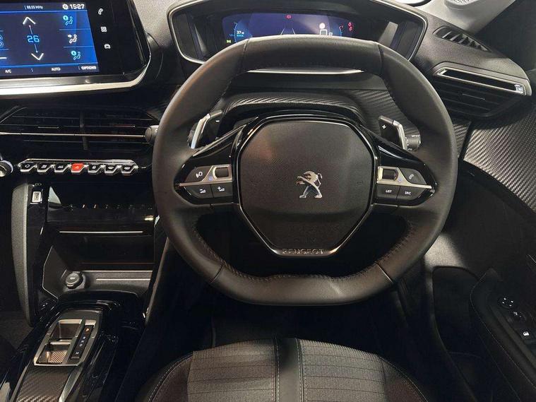 Bluetooth telephone facility, Driver attention warning, e-Toggle driving selector, Emergency call service, Exterior temperature indicator with ice warning, Mirror screen with mirror link, apple carplay and android auto, Multi function trip computer, PEUGEOT i-Cockpit with compact steering wheel, PEUGEOT i-Cockpit with configurable 3D headup instrument panel, Push button start, Smart phone docking station, Speed limit recognition and recommendation, Start/stop system, Visio Park 1 with 180 degree Colour reversing camera, 2 front USB socket with USB-C, 2x USB sockets in rear, 6 speakers radio with mp3 compatible, DAB Digital radio, Voice recognition for radio, navigation and telephony features, 2 X Rear number plate lights, Automatic hazard light activation upon heavy brake application, Automatic lights, Automatic windscreen wipers, Body coloured exterior door handles, Dark tinted rear side and tailgate windows, Eco LED headlights, Electric front windows + one touch + anti-pinch, Electric rear windows with one touch/anti-pinch, Electrically adjustable, heated and power folding door mirrors, Electrochrome rear view mirror, Extended diamond black rear spoiler, Follow me home headlights, Gloss black finish on B pillar, Gloss black rear cluster connecting strip, Gloss black window surround, Headlights left on audible warning, LED daytime running lights with 3 claw headlight with distinctive tooth design, LED side indicator lights integrated into door mirrors, LED third brake light, Model designation badges front and rear, Nera black door mirror shells, Radiator grille chrome chequered, Rear bumper with gloss black finish, Rear full LED 3D peugeot signature claw effect lights with daylight function, Rear lower bumper diffuser effect trim in gloss black, Rear reversing lights, Rear side wing doors, Rear windscreen wiper triggered automatically in reverse gear, Roof mounted aerial, Roof spoiler, Tailgate with heated rear windscreen and wiper blade, Twin chrome exhaust tailpipes, Variable front intermittent wipers, 1/3 to 2/3 split folding rear seats, 12V socket, 3 seat bench in 2nd row, Automatic air conditioning, Automatic gear lever in full grain leather and satin chrome, Black rods on rear headrests, Black wheel nut covers, Driver and front passenger comfort seats, Driver and front passenger seat manual adjustment in longitudinal and back rest angle, Driver seat mechanical height adjustment, Electric power steering with reach and rake adjustable steering column, Front centre armrest with storage compartment, Front interior light with 2 reading spotlights, High centre console with 2 cup holders, Leather steering wheel, Map pockets on the backs of the front seats, Paddle shifts, Piano keys gloss black plated toggle switches to access main functions of the vehicle, Rear centre headrest, Roof lining - light grey, Seatbelt unfastened on the move audible and visual alert for front and rear seats, Single front passenger seat, Tri material cloth/leather upholstery, 2x Isofix child seat fitting on outer rear seats, 3 rear 3 point seatbelts, ABS (Anti-lock Braking System) with EBD (Electronic Brakeforce Distribution) and EBA (Emergency Braking Assistance), Adaptive driver and front passenger airbags with passenger airbag deactivation function, Child locking functionality on rear doors, Driver/front passenger side airbags, Electric parking brake, ESP with Hill Assist, Front and rear curtain airbags, Front and rear disc brakes, Front optimised safety headrests and 3 x rear retractable headrests with height adjustable, Front three point retractable seatbelts with force limiters, Pedestrians active safety brake, Tyre pressure sensor, Acoustic vehicle alert system (AVAS), Automatic door locking when moving off, Deadlock, Electronic code immobiliser, Remote central locking, Thatcham cat. 1 alarm with anti lift sensor, Carbon effect Dashboard, front and rear door panel finish, 16" Soho diamond cut alloy wheels, Tyre puncture repair kit,