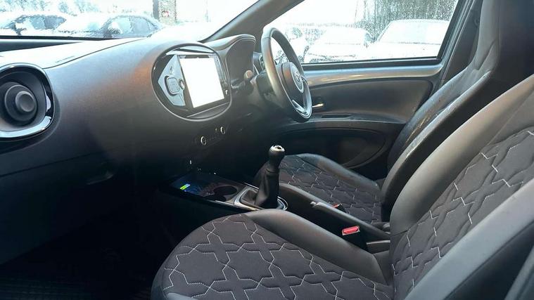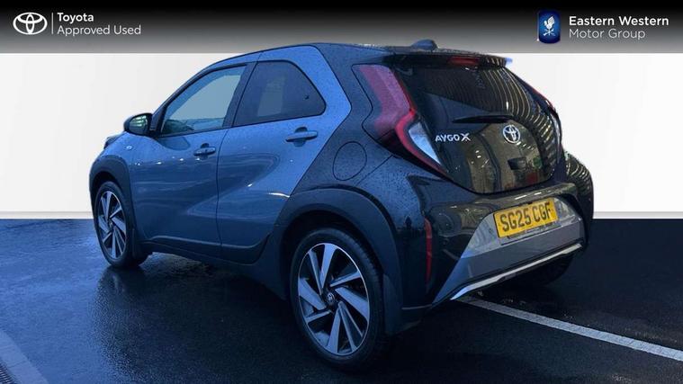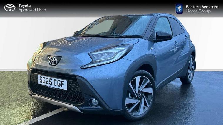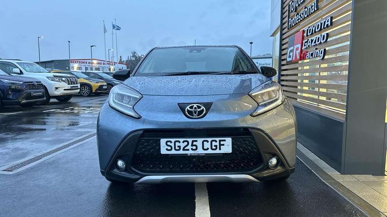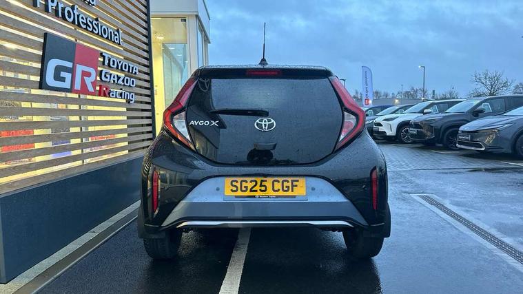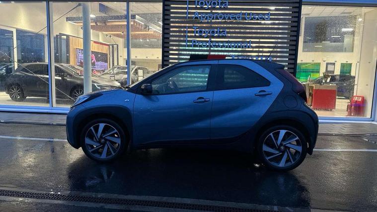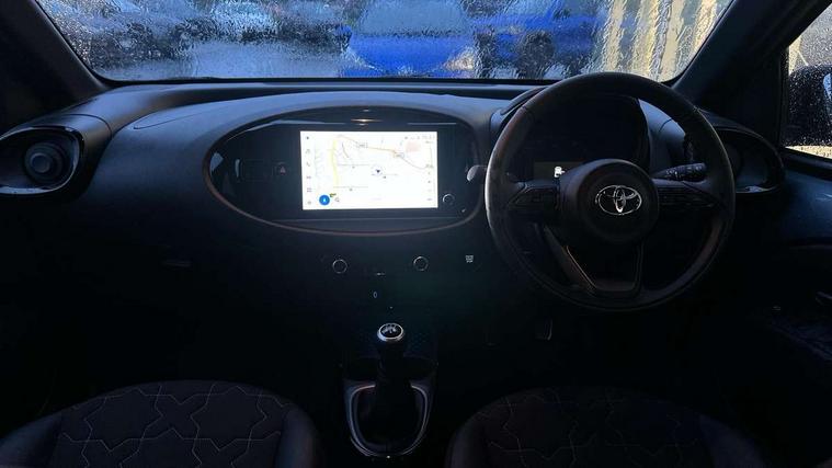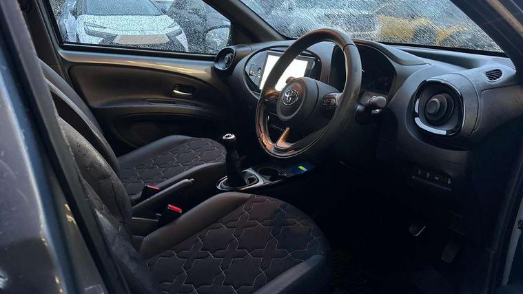 4.2" TFT colour screen, Adjustable speed limiter, Analogue speedometer, Bluetooth connectivity, Digital tachograph, Driver attention alert system, eCall emergency call system, Electric power steering, Front and rear parking sensors with auto brake, Intersection turn assist, Key reminder warning, Noise reduction kit, Pre collision system with emergency steering assist, Remote boot door release on key, Reversing camera with static guide lines, Smart entry and push button start, Smart phone integration with Apple car play/Android Auto, Speed limit display, Start and stop, Wireless charger, Vehicle Stability Control (VSC), 10.5" HD multimedia display touch screen with Toyota smart connect, 4 speakers, DAB digital audio broadcast, USB connector, Auto headlights, Auto wipers, Automatic headlights cut-off, Automatic high beam On/Off switch, Bicycle towing hook, Black contrast roof, Black fog light surrounds, Black side protection mouldings, Black wheel arch mouldings, Body colour door handles, Body coloured front bumper, Boot door scuff plate, Eclipse black rear bumper, Electric heated door mirrors, Follow me home headlights, Front and rear underruns in silver, Front fog lights, Front power windows, Gloss black door mirrors, Gloss black upper front grille, Headlight cut-off reminder, LED daytime running lights guide, LED front light guide, LED High mounted stop lamp, LED projector headlights, Manual day/night rear view mirror, Manual headlight levelling, Pagoda roof, Power adjustable door mirrors, Power back door, Privacy glass, Rain sensor, Rear combination lights LED bulb type, Rear side wing doors, Rear windscreen defogger, Rear windscreen wiper, Remote hazard lights system, Short antenna, Variable intermittent windscreen wipers, 12v power outlet - front, 2 seat bench in 2nd row, 3 spoke leather steering wheel, 50/50 split folding rear seat, Adhesive roof headlining, Adjustable speed limiter switch on steering wheel, Audio and telephone switches on steering wheel, Auto air conditioning, Black roof lining, Body colour satin anodised insert on steering wheel, Boot light, Centre room light, Chrome interior door handles, Chrome surround on air conditioning buttons, Clean air filter, Console box storage, Floor mats, Front and rear cup holders, Front head rest deco art, Front head restraints, Height adjustable driver seat, Intelligent adaptive cruise control switch on steering wheel, ISOFIX child restraint system on rear seats, Lane departure alert switch on steering wheel, Leather gearshift knob, Light blue ambient lighting in centre console, Manual tilt steering wheel, Manually reclining and sliding driver seat, Manually reclining and sliding front passenger seat, Multimedia switches on steering wheel, Partial synthetic leather upholstery, Pollen filter, Rear door pockets, Rear head restraints, Satin silver insert on gear shift knob, Single compartment glovebox with lights, Single front passenger seat, Soft tonneau cover, Sun visors with mirror on driver and passenger side, Voice recognition switch on steering wheel, Toyota safety sense pack - Aygo X, Anti lock braking system + Electronic brake force distribution, Child safety door lock, Emergency brake light signal (EBS), Hill start assist control (HAC), Passenger airbag on/off switch, Seat belt reminder for front and rear seats, Supplement restraints system (SRS) - 6 airbags, Traction control, Tyre pressure warning system, Immobiliser, Remote power door locks, Black wheel centre caps, Tyre repair kit,