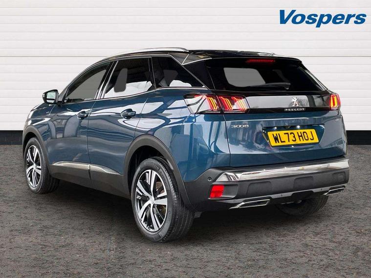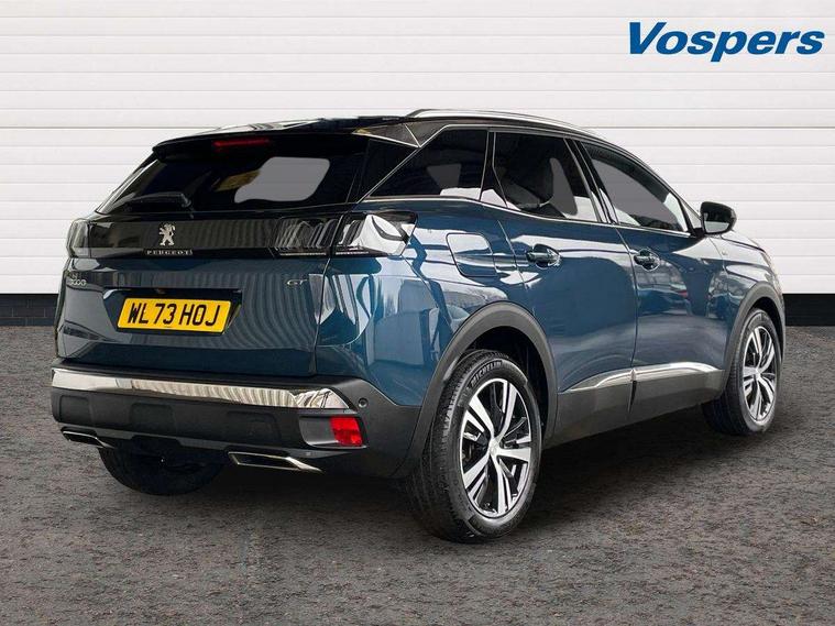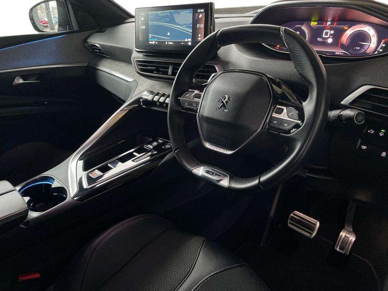 3D connected navigation with 10" HD touchscreen + voice recognition system, Blind spot detection system, Bluetooth telephone facility, Drive modes select (Eco, normal and sport), Driver Attention Alert level 3, Driving Time Warning (DAA1), Emergency services call system, Extended traffic sign recognition, Exterior temperature indicator with ice warning, Lane departure warning system, Lane Keeping Assistance (LKA) with road edge detection, Mirror screen with Apple CarPlay and Android auto, Multi function trip computer, PEUGEOT i-Cockpit with compact sports steering wheel, PEUGEOT i-Cockpit with configurable 12.3" Head-up digital instrument panel, PEUGEOT SOS and assistance, Rear parking sensor, Rear passenger USB charging sockets (x2) (type A), Speed limit recognition and recommendation, Dynamic stability control and electronic anti-skid system, DAB Digital radio, USB socket in front centre console, 2 X Rear number plate lights, Auto self levelling headlights, Automatic hazard light activation upon heavy brake application, Automatic triggered rear windscreen wiper in reverse gear, Black with chrome detailed front wing trim, Body colour door handles, Body colour rear roof spoiler with stainless steel edging trim, Body protectors (wheel arches + protection at bottom of doors) in black, Dark tinted rear side windows + tailgate window, Diamond Black door mirror shells, Electric heated folding door mirrors, Front windscreen wiper with magic wash cleaning system, Full LED headlights with fog mode, Gloss black B and C pillar and aerodynamic deflector trim, Gloss black front bumper air scoops, Gloss black rear cluster connecting strip, Gloss black windscreen trim, GT emblems on tailgate, Headlights left on audible warning, Heated rear windscreen with integrated antenna, High beam assist, LED daytime running lights in fang style, LED front indicator, LED side indicator lights integrated into door mirrors, LED third brake light, One touch electric front/rear windows with pinch protection, Rear LED Peugeot signature 'Claw Effect' lights with clear lens and scrolling LED direction indicators, Rear side wing doors, Twin exhaust effect trim, 1/3 to 2/3 split folding rear seats, 12V Sockets in dashboard, rear cabin and load area, 2 cupholders in front centre console, 2 x Rear reading spotlights, 2x Rear coat hooks, 3x Isofix child seat fittings in the front passenger and outer rear seats, 4 Grab handles retractable and damped, Aikinite stitching in armrest, gear lever and dashboard facia, Aluminium pedals, Blue ambient lighting for connecting zone, Blue ambient lighting to front door panels, central cup holders, Blue ambient lighting to headup instrument panel, Centre front armrest with butterfly wing opening and illuminated storage compartment, Driver seat manual adjustment (longitudinal and back rest angle), Dual zone automatic climate control, e-Toggle compact gear selector, Electric power steering with reach and rake adjustable steering column, Flocked front door pocket interior with blue ambient lighting, Flocked glovebox interior, Foldable front passenger seat with picnic table, Footwell illumination, Front interior light with 2 reading spotlights and rear interior light with timer, Front seat back map pockets, Gear shift indicator, Illuminated glove box, central storage area and load area, Illuminated vanity mirrors, Individual left and right controls in boot for seat folding, LED interior lighting in storage spaces and load area, LED roof interior lighting, Mistral floor mats with Aikinite contrast stitching, Mistral full grain perforated leather steering wheel with aikinite stitch detail and satin chrome 'GT' emblem, Rear armrest with ski flap and two cup holders, Rear bench seat with central armrest and ski hatch, Rear centre console ventilation system, Roof lining - Mistral black, Satin chrome dashboard trim, Satin chrome digital instrument panel, Satin chrome front door panel recess trim, Satin chrome interior door handles, Satin chrome scorpion's tail and toggle switch trim, Seatbelt not fastened audible and visual alert for front seats, Seatbelt unfastened on the move audible and visual alert for front and rear seats, Two position boot floor, Drive assist plus pack with front parking sensors - 3008, Visibility pack - 3008 GT, 3x Rear three-point retractable seatbelts with force limiters in the outer rear seats, ABS (Anti-lock Braking System) with EBD (Electronic Brakeforce Distribution) and EBA (Emergency Braking Assistance), Adaptive driver and front passenger airbags with passenger airbag deactivation function, Driver and front passenger side airbags, Electric child locking functionality on rear windows and doors, Electric parking brake, Front and rear curtain airbags, Front optimised safety headrests and 3 x rear retractable headrests with height adjustable, Front three point retractable seatbelts height adjustable with pre tensioners and force limiters, Front ventilated disc brakes and rear disc brakes, Hill start assist, Two tone horn, Automatic door locking when moving off, Electronic immobiliser, key operated exterior door lock from the left hand door, Perimetric and volumetric alarm with lift and tilt sensor, Peugeot Open and Go System, Remote control central locking with two plip keys, Michelin e-primacy 225/55 R18 102V class A+ tyres, Tyre repair and inflation kit,