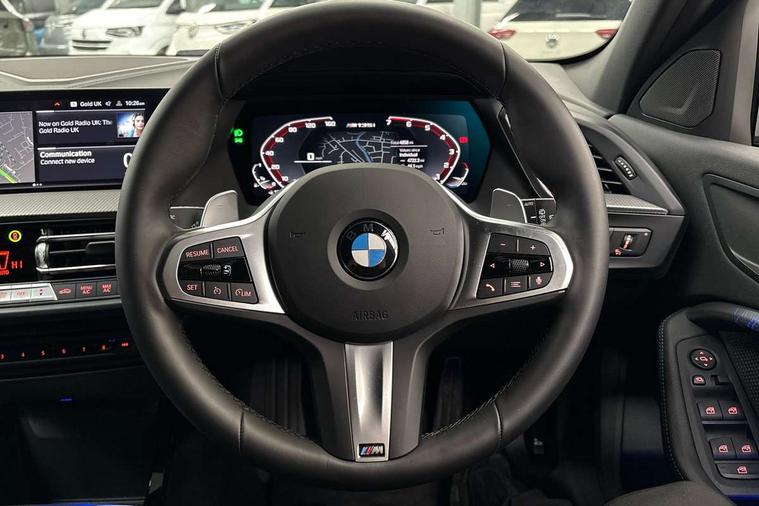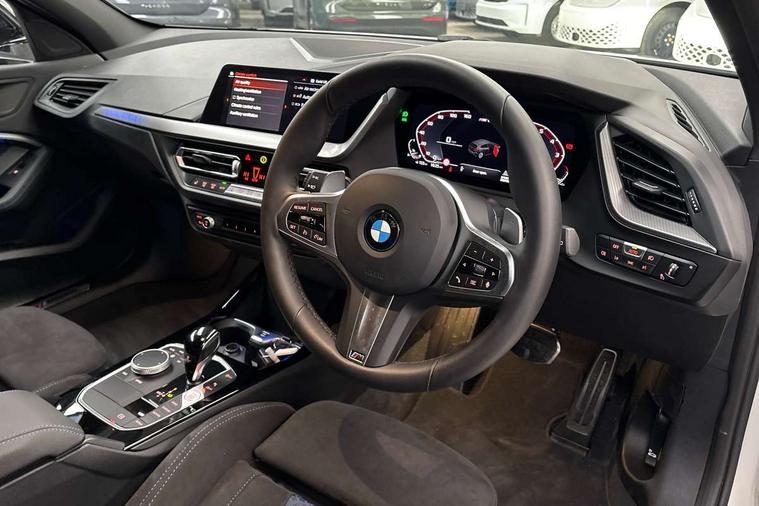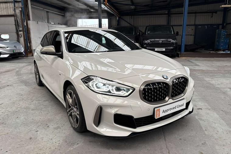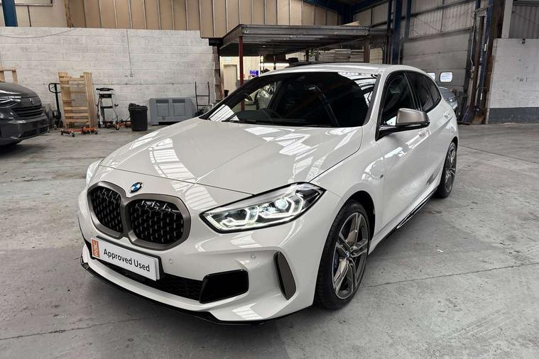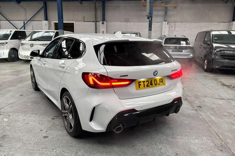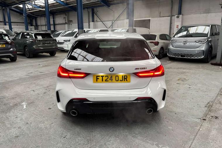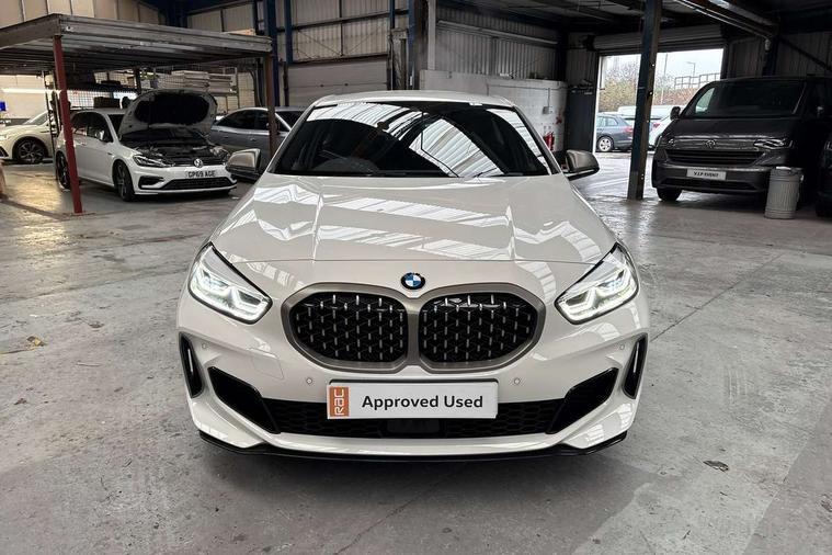 Active guard plus, Attentiveness assist, BMW ConnectedDrive online services, BMW Teleservices, Check Control warning system for monitoring of lights and door/luggage compartment open warning, Cruise control with speed limiter, Eco pro mode, Electric power steering, Electro hydraulically controlled multi-plate clutch transfers drive to rear axle and with power take-off device located on the front differential., Energy efficient operating strategy, Front axle single joint with specific axle kinematics to minimise drive influences on steering + provide increased rigidity agile driving behaviour, Gearshift time display in manual mode, Integrated owners handbook, Lane departure warning system, M Sports steering with M135i xDrive specific settings, Oil sensor for level and grade, On board computer, Optimum shift indicator, Personal Profile, Pull away assistant, Rigidly mounted rear subframe - Multi link construction with separate spring / damper configuration and excellent driving characteristics, Speed limit Info including no-overtaking indicator, Sporty fast gear shifting in sport mode, Aluminium lightweight construction, Anti roll bar front and rear, Balancer shaft, Double VANOS, Drive Performance Control, Eight speed sport automatic transmission with gearshift paddle switches, Electronic differential lock, Electronic selector lever, Engine cover with M performance designation, High precision injection, Larger fuel tank capacity (50 litres), Launch control, M135i specific heavily de-throttled engine intake air guide, M135i specific high-performance cooling package, M135i specific larger turbocharger with integrated divert-air valve, Petrol Particulate Filter, Twin tube gas filled shock absorbers with degressive characteristic curve, VALVETRONIC engine management, Variable, stepless and infinitely adjustable distribution of drive torque between the front and rear axles, xDrive intelligent all wheel drive with M135i specific reinforced components, DAB Digital radio, Auto dimming rear view mirror, Automatic headlight beam throw control, Automatic windscreen wipers and automatic headlight, Body colour door handles, Body colour roof trims, Cerium grey exterior mirror caps, Direction indicator side lights in exterior mirrors, Electrically adjustable exterior mirror with mirror adjustment switch on drivers armrest and aspheric on driver side, convex on passenger side, Exhaust tailpipe, Cerium Grey with bevelled finish - twin, round 100mm, left and right split, Fading support, Folding side mirrors with auto dimming/folding wing mirrors with auto dimming, Follow me home headlights, Front and rear bumper system with replaceable deformation elements, Front and rear electric windows with open and close fingertip control, anti trap facility and comfort closing, Front door sill finishers with M135i designation, Green tinted heat protection glazing, High gloss shadowline window frame, Recess cover mirror frames and B/C pillar embelisher trim, High level third brake light, Integrated front windscreen with washer jets, Kidney grille frame in Cerium Grey with Mesh design, LED daytime running lights, LED eyebrow turn indicators, Lightweight engineering, M logo designation side in cerium grey, M Performance exhaust system with valve control and minimised exhaust back pressure, M Performance specific setup, M Sport spoiler, Matt black air guide grilles, Matt black wheel arch trim, Model designation on electric bootlid includes xDrive designation for M135i xDrive, Nearside reverse light in rear light cluster, Preparation for high beam assistant, Rear fog lights, Rear side wing doors, Rear window wiper, Reinforced crank drive, new pistons and adapted con rods, Shark fin antenna, Trailer stabilisation logic, Visible VIN plate, Welcome lighting, 12V power socket in front centre console with blanking plug, 3 rear seat head restraints, 3 seat bench in 2nd row, 3 spoke sports leather steering wheel with black leather and stitching, pearl chrome decorative finish, specific M Badge, Anthracite headlining, Black boot net with lashing eyes, Cargo function on 2nd seat row, Child seat ISOFIX attachment for two outer rear seats and front passenger seat with anchorage points, Conditioned based service, Driver and front passenger backrest net on rear, Driver and front passenger seat heating, Driver side folding compartment in instrument panel, Folding rear clothes hook, Four grab handles integrated in roof lining, Front and rear door pockets with bottle holders, Front and rear side armrest integrated into door trim, Front armrest, Front M sports seats, Glove compartment, Height adjustable front head restraints, Luggage compartment for bag hooks on left and right, foldable luggage compartment liner and four lashing eyelets, Manual adjust steering wheel, Multi-function controls for steering wheel, Single front passenger seat, Storage compartment in centre console, Storage compartment in luggage compartment, Stowage of the parcel shelf in luggage compartment trim, Sun visors with vanity mirrors and insert tab, Two front centre console cupholders, Two zone automatic air conditioning, Type C two USB ports in rear centre console, Velour floor mats, Additional interior lighting pack - 1 Series M135i, BMW live cockpit professional pack- 1 Series, Connected pack professional - 1 Series, Interior lights pack - 1 Series, M Sport exterior styling aerodynamics pack - 1 Series 135i, 2 tone horn, 3 point seatbelts on all seats, front pyrotechnic belt tensioners, stopper and belt force limiters, rear coded belt buckles, Airbags - Front driver/passenger, front and rear curtain head protection, front side, manual deactivation of front passenger airbag, Anti lock braking system (ABS) with brake assist, BMW emergency call, Brake drying, Braking readiness, Child proof locking system in rear door, City braking function, Comfort modes, Cornering brake control, Crash sensor activating of airbags, Unlocking doors, hazard warning lights, interior light
