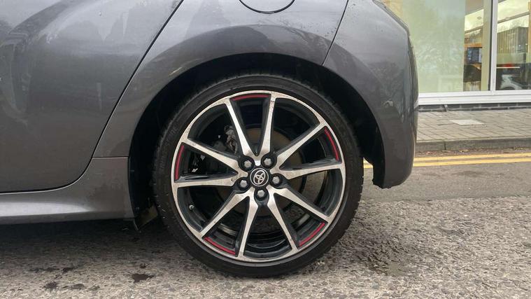 Adaptive cruise control, Adjustable speed limit with speed warning, Bluetooth connectivity, Colour binocular inspired displays with digital speedometer, E-call, Electric power steering, Hybrid energy display, Multi information display switches on steering wheel, Reversing camera, Smartphone integration with Apple CarPlay and Android auto, Tailgate, Voice recognition, Vehicle Stability Control (VSC), 6 speakers, 8" Multimedia display touch screen, Toyota Touch 2 with DAB, USB connection, Acoustic windscreen glass, Auto windscreen wipers, Automatic headlights, Body coloured door mirrors, Dark chrome lower front grille, Electric adjustable heated door mirrors, Follow me home headlights, Front auto power windows with anti jam protection, Full LED rear lights, LED daytime running lights, LED front fog lights, LED front light guide, LED Headlights, LED High mounted stop lamp, LED Indicators, LED rear light guide, Manual headlight levelling, Painted chequered front grille with hot stamp in mesh design, Rain sensor, Rear auto power windows with anti jam protection, Rear privacy glass, Rear side wing doors, Rear spoiler, Rear wiper, Shark fin antenna, Turning signal integrated indicators in door mirrors, Variable front intermittent wipers, 3 adjustable rear headrests, 3 seat bench in 2nd row, 3 spoke leather steering wheel, 60/40 split folding rear seat, Active headrests, Adjustable boot height, Black roof lining, Coat hooks in rear grab handles, Cup holders (2 front & door), Data Communication Module (DCM) connected services, Dual zone automatic air conditioning, Fabric upholstery with red stitching, Front armrest, Front sport seats, Glovebox, Height adjustable driver's seat, Height adjustable passenger seat, Isofix seat fixing, Leather gearshift, Map pockets on the backs of the front seats, Pollen filter, Shopping bag hooks, Single front passenger seat, Tilt/telescopic steering column, 3 point seatbelts on all rear seats, ABS+EBD+Brake assist, Electronic parking brake, Emergency brake light system (EBS), Front passenger airbag on/off switch, Front seatbelt reminder, Hill start assist control (HAC), Rear child proof door locks, Rear seat belt reminder, Supplemental Restraint System (SRS) 8 airbags: Driver & passenger's airbags, dual side curtain airbags, side impact airbags, front centre airbag, Toyota Safety Sense 2, Precollison + Night time Pedestrian & Cyclist Detection, Lane Trace Assist, Auto High Beam, Intelligent ACC & Road Sign Assist, Tyre pressure warning system, 2x Master key, Alarm/immobiliser, Keyless smart entry with push button start, Remote AC via MyT, Remote locking via MyT, Remote powered central double locking doors, GR Sport interior styling with accents and exterior styling, Piano black interior trim, Soft touch instrument panel, 18" machined face alloy wheels with GR Sport red deco lines, Space saver spare wheel,
