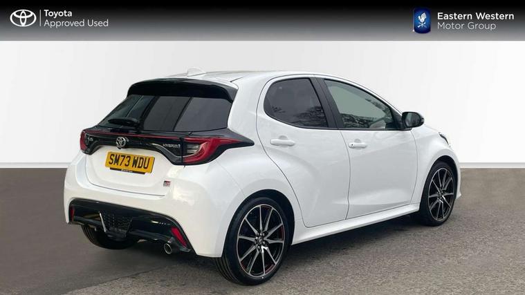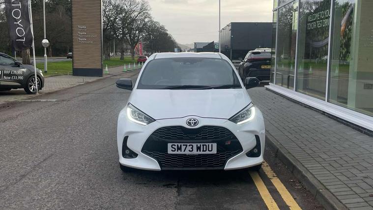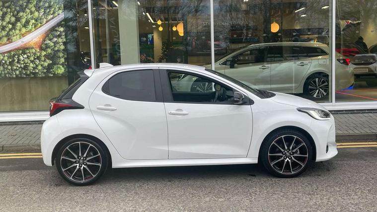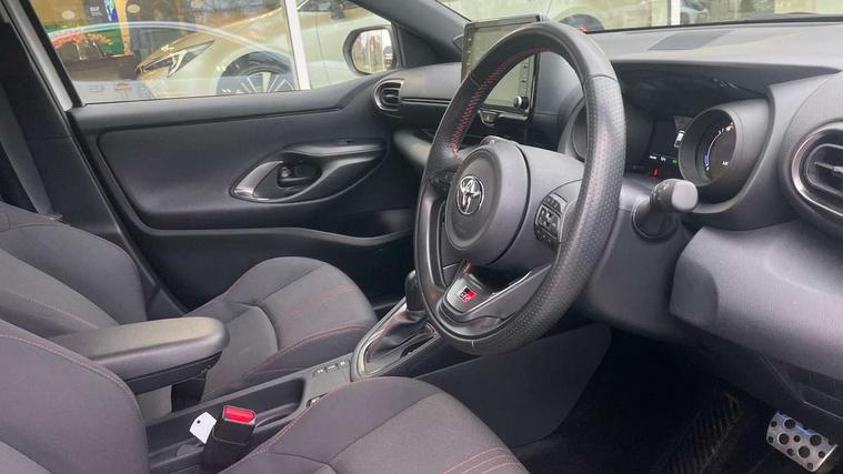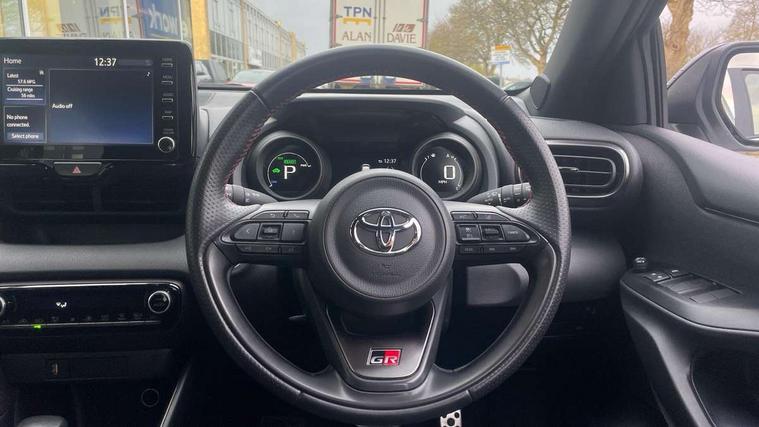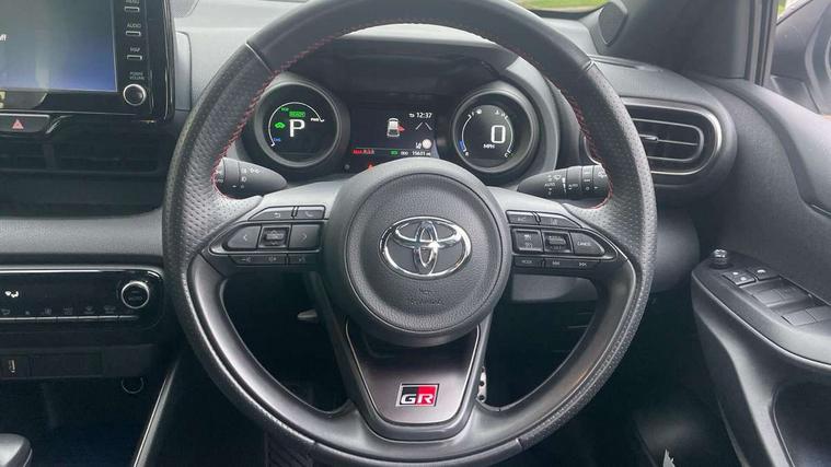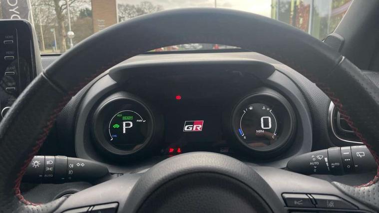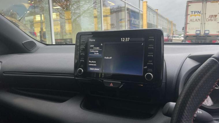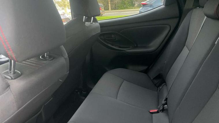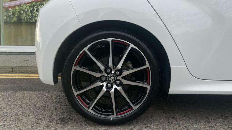 Adaptive cruise control, Adjustable speed limit with speed warning, Bluetooth connectivity, Colour binocular inspired displays with digital speedometer, E-call, Electric power steering, Hybrid energy display, Multi information display switches on steering wheel, Reversing camera, Smartphone integration with Apple CarPlay and Android auto, Tailgate, Voice recognition, Vehicle Stability Control (VSC), 6 speakers, 8" Multimedia display touch screen, Toyota Touch 2 with DAB, USB connection, Acoustic windscreen glass, Auto windscreen wipers, Automatic headlights, Body coloured door mirrors, Dark chrome lower front grille, Electric adjustable heated door mirrors, Follow me home headlights, Front auto power windows with anti jam protection, Full LED rear lights, LED daytime running lights, LED front fog lights, LED front light guide, LED Headlights, LED High mounted stop lamp, LED Indicators, LED rear light guide, Manual headlight levelling, Painted chequered front grille with hot stamp in mesh design, Rain sensor, Rear auto power windows with anti jam protection, Rear privacy glass, Rear side wing doors, Rear spoiler, Rear wiper, Shark fin antenna, Turning signal integrated indicators in door mirrors, Variable front intermittent wipers, 3 adjustable rear headrests, 3 seat bench in 2nd row, 3 spoke leather steering wheel, 60/40 split folding rear seat, Active headrests, Adjustable boot height, Black roof lining, Coat hooks in rear grab handles, Cup holders (2 front & door), Data Communication Module (DCM) connected services, Dual zone automatic air conditioning, Fabric upholstery with red stitching, Front armrest, Front sport seats, Glovebox, Height adjustable driver's seat, Height adjustable passenger seat, Isofix seat fixing, Leather gearshift, Map pockets on the backs of the front seats, Pollen filter, Shopping bag hooks, Single front passenger seat, Tilt/telescopic steering column, 3 point seatbelts on all rear seats, ABS+EBD+Brake assist, Electronic parking brake, Emergency brake light system (EBS), Front passenger airbag on/off switch, Front seatbelt reminder, Hill start assist control (HAC), Rear child proof door locks, Rear seat belt reminder, Supplemental Restraint System (SRS) 8 airbags: Driver & passenger's airbags, dual side curtain airbags, side impact airbags, front centre airbag, Toyota Safety Sense 2, Precollison + Night time Pedestrian & Cyclist Detection, Lane Trace Assist, Auto High Beam, Intelligent ACC & Road Sign Assist, Tyre pressure warning system, 2x Master key, Alarm/immobiliser, Keyless smart entry with push button start, Remote AC via MyT, Remote locking via MyT, Remote powered central double locking doors, GR Sport interior styling with accents and exterior styling, Piano black interior trim, Soft touch instrument panel, 18" machined face alloy wheels with GR Sport red deco lines, Space saver spare wheel,