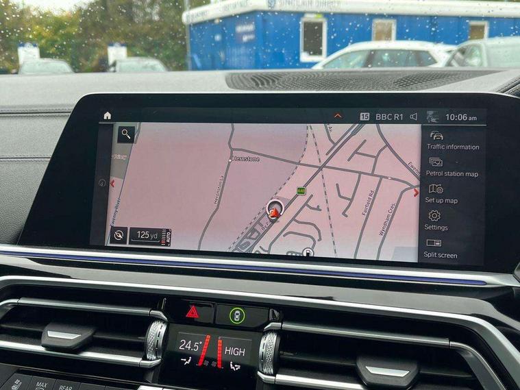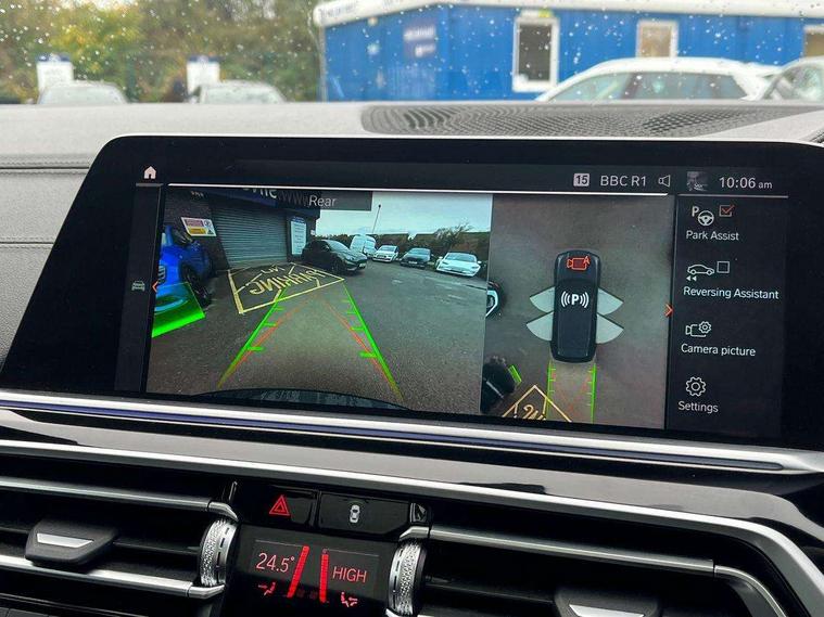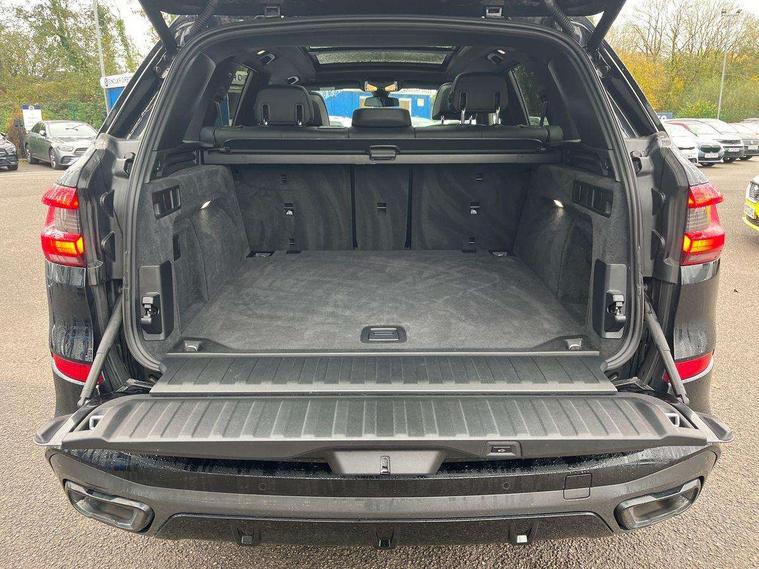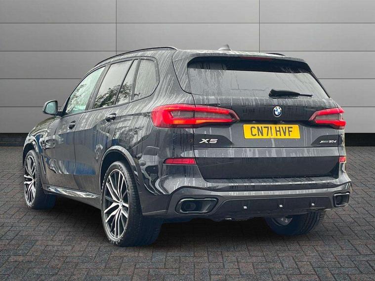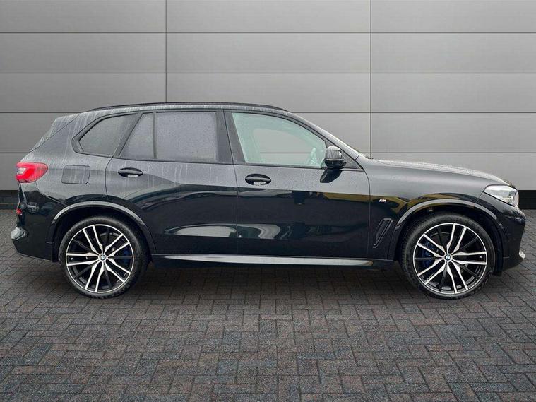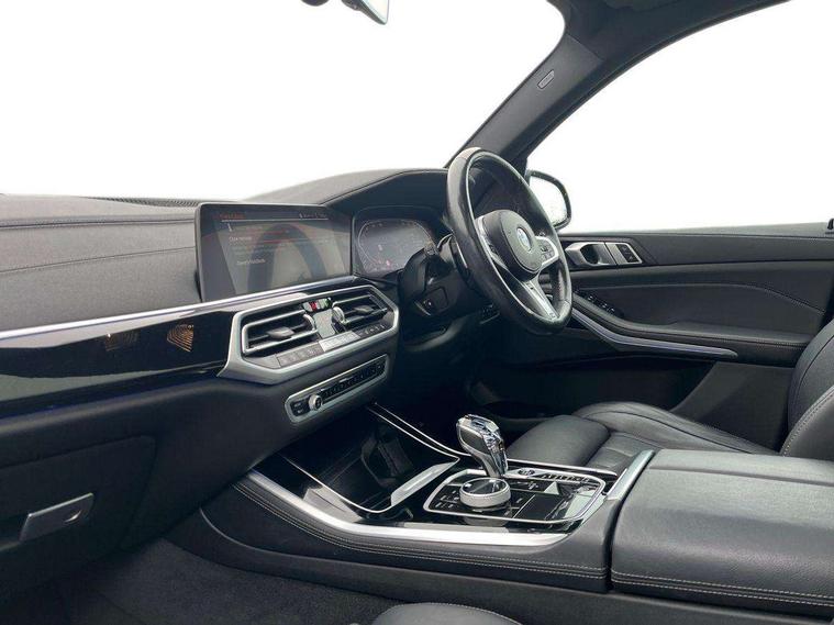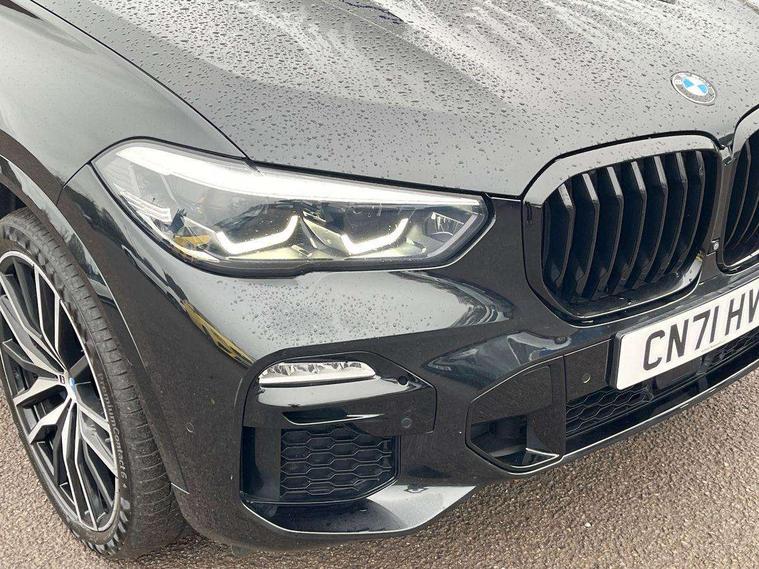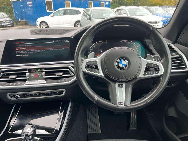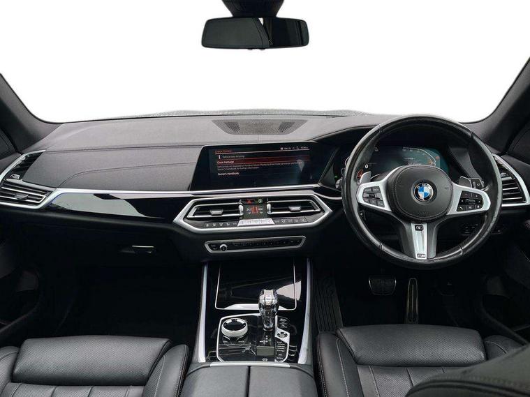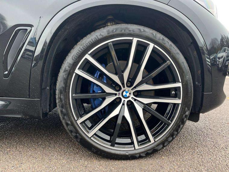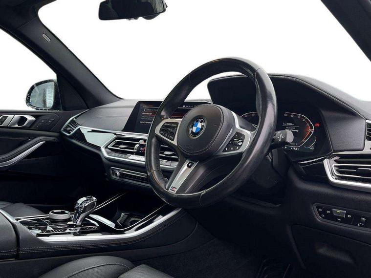 20GB hard disc drive (HDD) memory, Active guard plus, Attentiveness assist, Automatic tailgate with top hinged section open and manual bottom hinged section, BMW ConnectedDrive online services, BMW digital live cockpit professional - 12.3" digital instrument panel and 12.3" CID, with touch/voice command, BMW legal emergency call, BMW Teleservices, Brake force display, Brake pad wear indicator warning light, Cruise control with brake assist, Front/rear park distance control, Galvanised plastic keyfob, iDrive touch controller with shortcut buttons, Infinity symbol with line graphic on reset of average consumption, Lights on warning, Oil sensor for level and grade, On board computer inc. average speed, fuel consumption, liquid crystal Info display, journey computer, outside temperature display, personal profile, Service interval indicator, Speed limit info display, Speed limiting function, 48V Mild hybrid technology, Adaptive 2-axle air suspension, Diesel particulate filter, Double wishbone front axle, Drive performance control with ECO PRO comfort + sport mode, Eight speed steptronic sport automatic transmission and gearshift paddles on the steering wheel, Safety battery terminal clamp, Variable vane geometry, DAB Tuner enables digital radio reception, Favourite buttons, USB connection, USB type A 1.5A in cupholder, USB Type C 3A in centre armrest, Active Air Stream kidney grille with high-gloss chrome, Adaptive air flap control bar in high-gloss black, Automatically dimming rear view mirror, BMW Individual high gloss black shadow line roof rails, Body colour bumpers, Body colour door handles, Dynamic brake lights with LED technology, Exhaust tailpipes - single, left and right with Chrome finisher, Follow me home headlight function, Front and rear electric windows with open and close fingertip control, anti trap facility and comfort closing, Heated windscreen washer jets, High beam assistant, High gloss black outer and central air intakes on front bumper with pearlescent chrome finish, High gloss black Side elements, LED daytime running lights, LED rear lights, M aerodynamic body styling, M designation on left and right front side panels, Pearlescent chrome front grille bars, Rain sensor with automatic headlight activation and windscreen wiper control, Satin aluminium side window graphic, Third brake light in rear spoiler, Variable intermittent rear wash/wipe, Welcome light carpet, X5 on left tailgate, xDrive designation on right tailgate, 12V - Power sockets with 2x centre console and 1x luggage compartment, 40:20:40 split folding rear seats, Ambient interior lighting with 6 pre-designed selectable lights including dynamic function, Centre and rear interior light, Child seat ISOFIX attachment with rear outer seats includes top tether, Compartment in front of cupholder, Electric front seat adjustment with driver and front passenger memory function, Electrical steering column with adjustable height and length with activation and control on the steering column, Foldable rear centre armrest with 2 cupholders and storage compartment, Front and rear cupholders x 2, Front and rear door pockets, Front and rear door sill inlays with illuminated BMW M designation, Front and rear side armrest integrated into door trim, Front footwell lights, Front reading lights, Light inside glove compartment, Lockable glove compartment, Luggage compartment floor panel with integral storage tray, Luggage compartment lighting, M leather steering wheel, M specific key, M specific steering wheel, M specific velour floor mats, Make-up mirror lights, Multifunction controls for leather steering wheel, Multifunctional hooks, Rear head restraints, Seat back with flap pocket, Securing rings in luggage compartment, Storage bins on all doors, Storage tray and compartment with cover in centre console, Sunvisors with illuminated vanity mirrors, Toolkit located in luggage compartment, Connected Package Professional - X5, Expanded exterior mirror pack - X5/X5 M, Non-smokers pack - X5, Airbags - driver/front passenger, rear and side, first and second row seats head airbags, front passenger seat airbag deactivation + knee airbag, Anti-lock braking system (ABS), Automatic Stability Control (ASC), Brake drying, Brake energy regeneration, Brake fade compensation, Braking pre-tensioning, Cornering brake control (CBC), Crash sensor activating central locking release, hazard warning lights, fuel cut off, interior lighting + activation of safety battery terminal clamp, Deformation zones - front and rear with door reinforcements and bumpers up to 2.5 mph, DSC - Dynamic Stability Control, Dynamic brake control, Dynamic Traction Control - DTC, Electromechanical parking brake with automatic drive away release and auto hold function, Electronic brake force distribution, Front and rear seatbelts with seatbelt stopper, seatbelt tensioner for front and outer rear seats and belt force limiter, Front head restraints with anti-whiplash, Height adjustable front seatbelts, Hill start assistant, Integrated brake system, M Sport braking system in blue high gloss + blue painted brake calipers with M designation, Mechanical child proof lock on rear doors, Passive protection for pedestrians, Seat occupancy detection for driver and passenger side, Side impact protection, Three 3 point inertia reel seatbelts, Two tone horn, Tyre pressure monitoring system, Ventilated front and rear disc brakes, Warning triangle and first aid kit, Closing system with central locking, Driver and front passenger door centre lock switch, Locking wheel bolts, Thatcham 1 alarm system with remote control and engine immobiliser, Start/stop toggle diamond shaped trim finisher in pearl chrome,