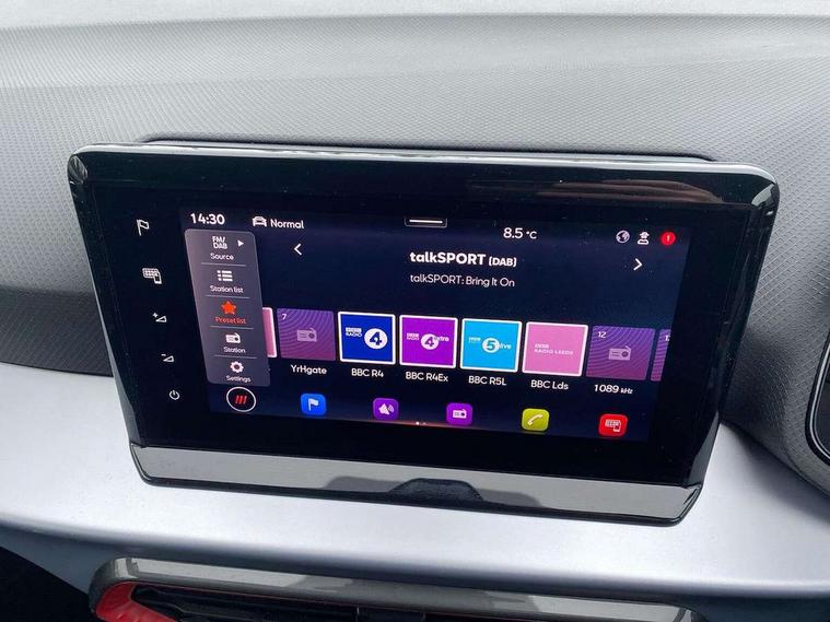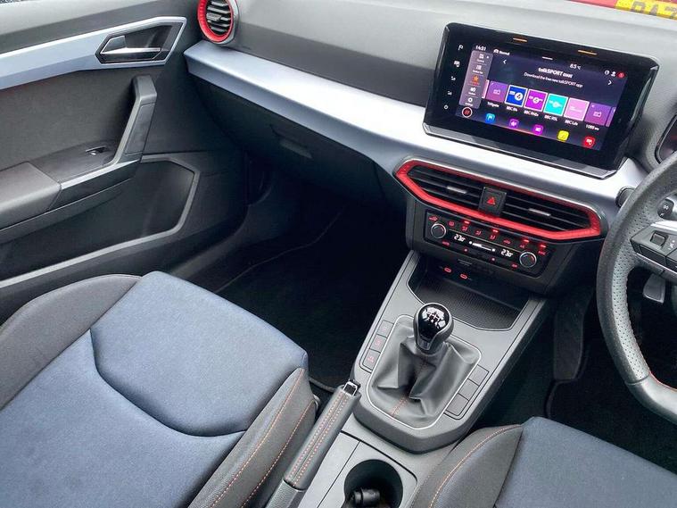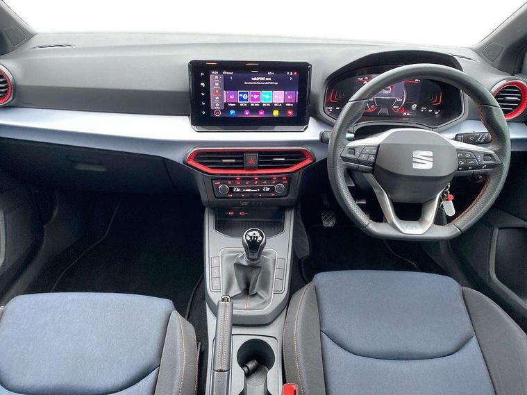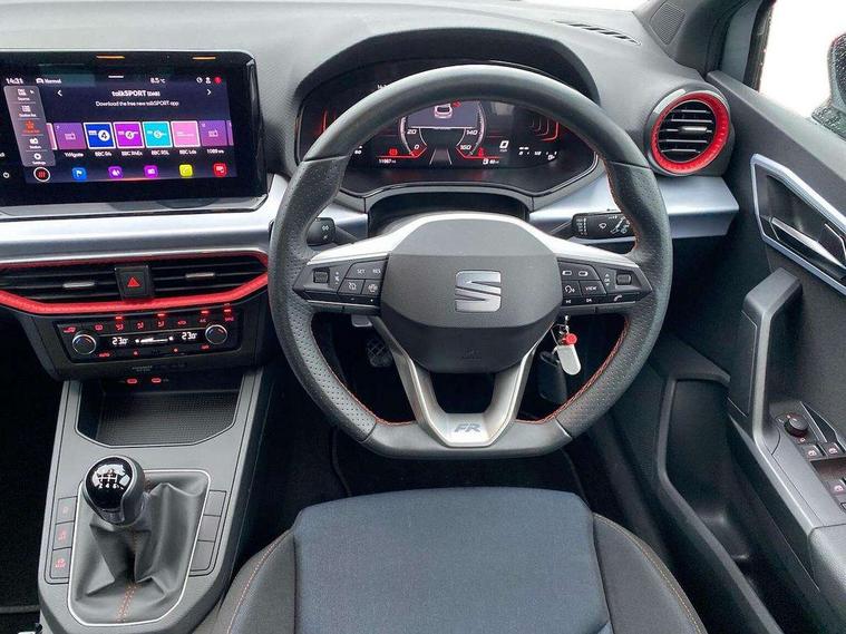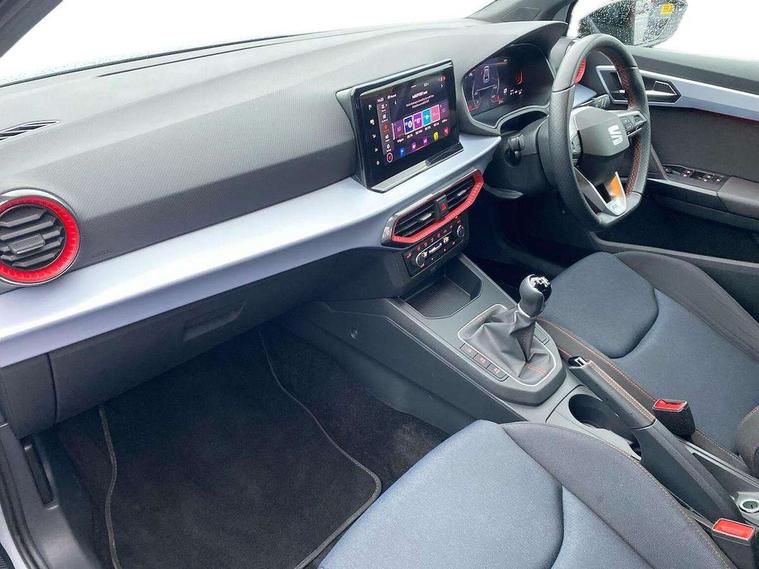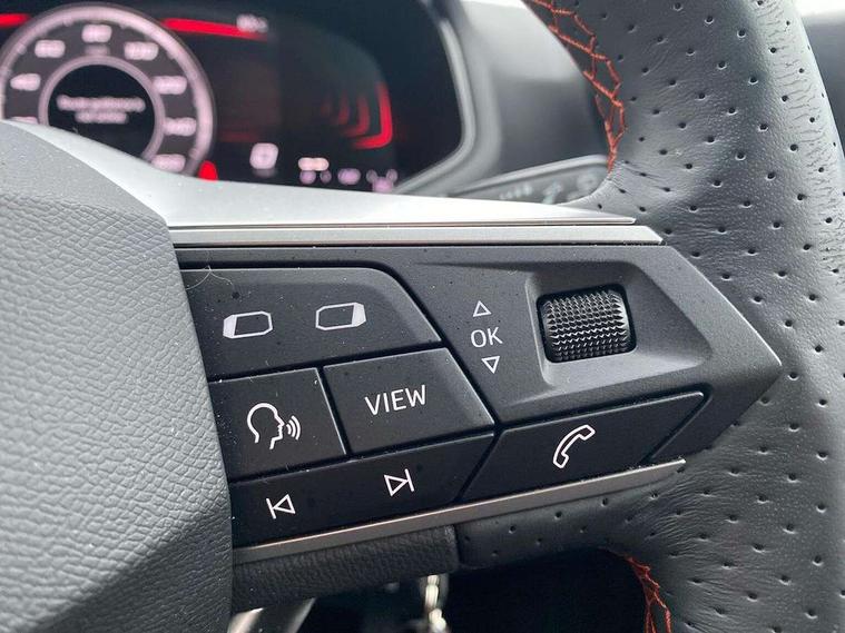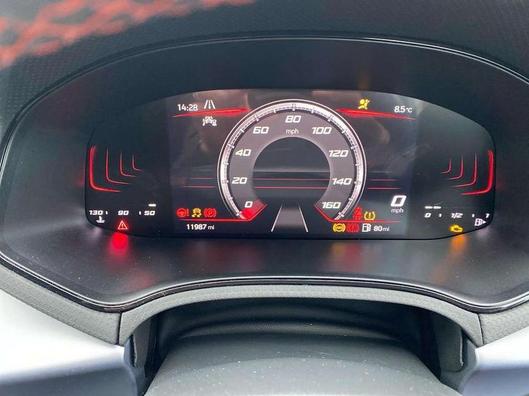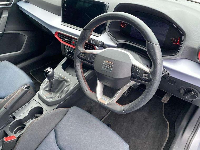 'Lights On' Reminder warning buzzer, 8" Digital cockpit, 9.2" touchscreen navigation system with type C USB socket, Voice control and DAB/AM/FM radio, Auto start and stop system, Bluetooth audio streaming with handsfree system, Digital clock, E-call, Full link smartphone integration with mirror link, wireless apple carplay, Google android auto + USB Type C cable for apple and android devices, Lane assist, Low fuel warning light, Outside temperature gauge, Power Steering, Seat connect with safety, service, remote and online, SEAT drive profiles and ECO function, SEAT logo boot release, Speed limiter, Trip computer, Sports suspension, Auxiliary input socket, Radio/MP3 player, SD card slot, Steering wheel mounted controls, Anti theft roof antenna, Auto dimming rear view mirror, Automatic rain sensing wipers, Black door mirrors, Body colour bumpers, Body colour door handles, Brilliant black window surrounds, Dark tinted rear windows, Electric adjustable/heated/folding door mirrors, Electric front windows, Electric headlight adjustment, Electric rear windows, Front/rear fog lights, FULL LED automatic headlights with dynamic headlight range control, coming and leaving home, LED daytime running lights, LED tail lights, Rear roof spoiler with FR twin exhausts, Rear side wing doors, Rear wiper, Third brake light, 3 seat bench in 2nd row, 60/40 split folding rear seat, Ambient interior lighting, Chrome detailing and black headlining, Cloth upholstery, Dual zone climate control with combination filter, Front courtesy lights, Front cupholders x 2, Front reading lights, Gear shift indicator, Glovebox, Height adjustable front and rear headrests (five), Height adjustable front seats, Height/reach adjust steering wheel, Illuminated air vent surrounds, Illuminated boot, Instrument lighting with brightness control, Isofix, Leather multifunction flat bottomed sports steering wheel, Passenger sunvisor, Single front passenger seat, Sports seats, Sunvisors with mirror and driver side card holder, 3 point seatbelts on all 3 rear seats, ABS, Active front headrests, Child locks on rear doors, Electronic stability control, Energy recovery system, Front assist forward collision warning and autonomous emergency braking, Front driver and passenger side airbags with curtain airbag and front passenger airbag deactivation, Hill hold control, Multi-Collision braking, Seat belt reminder for front and rear seats, Tiredness recognition system, Tyre pressure monitoring system, Electronic engine immobiliser, Locking wheel bolts, Perimeter alarm and interior monitoring with backup horn and tow away protection, Remote central locking + deadlocks, 17" Alloy wheels in Brilliant silver,