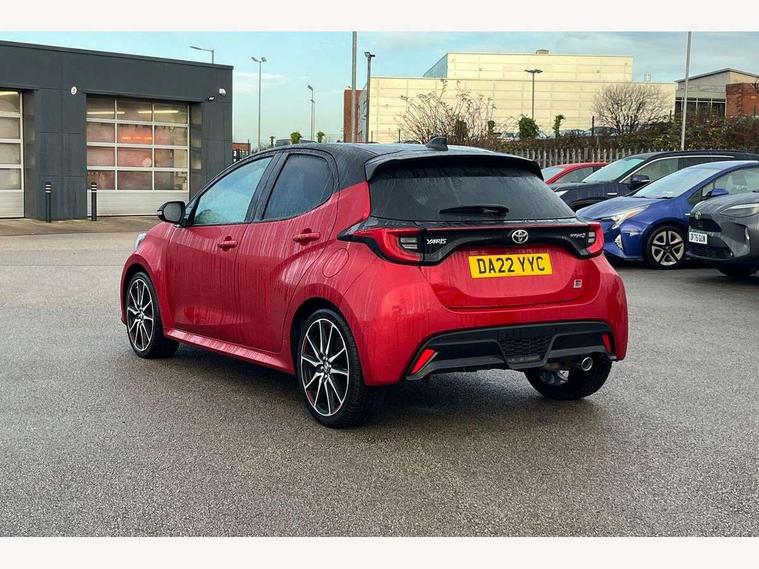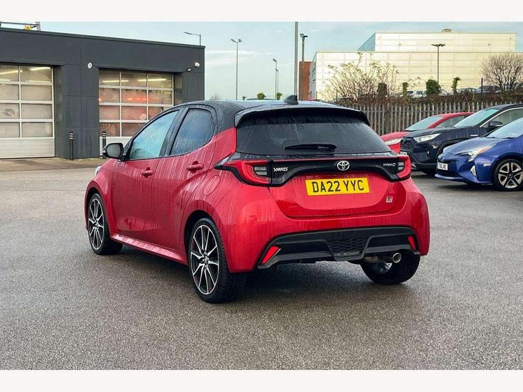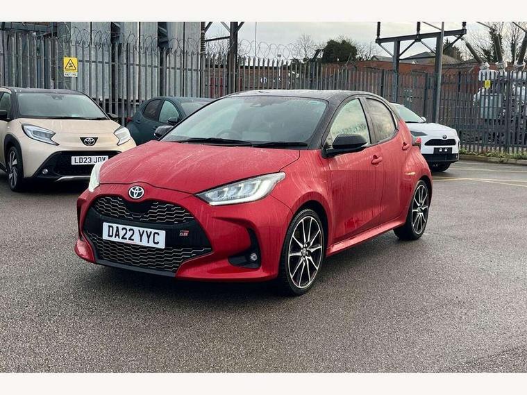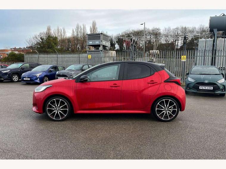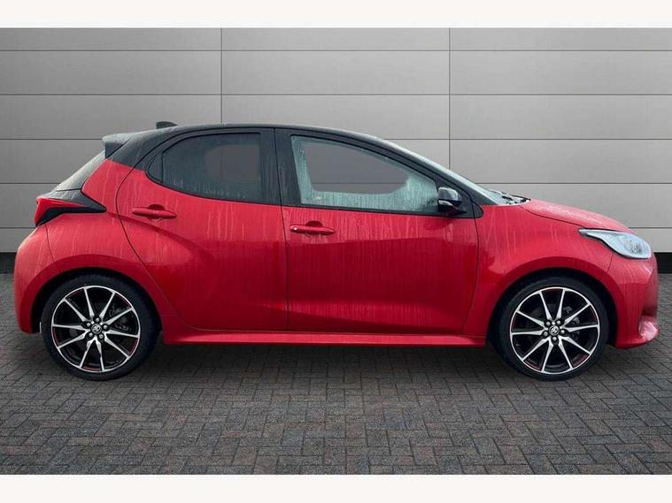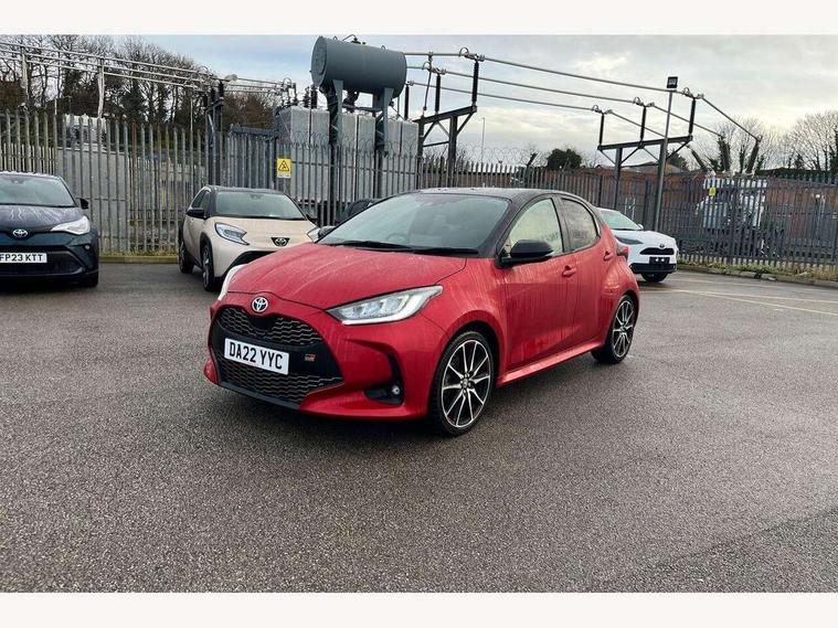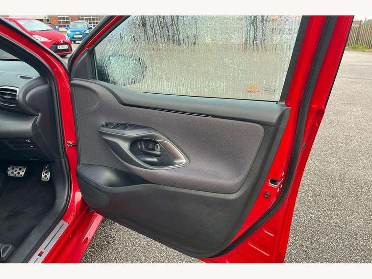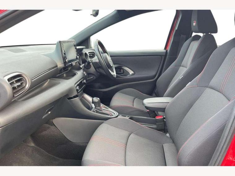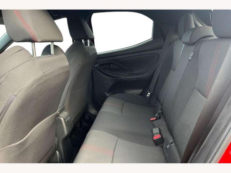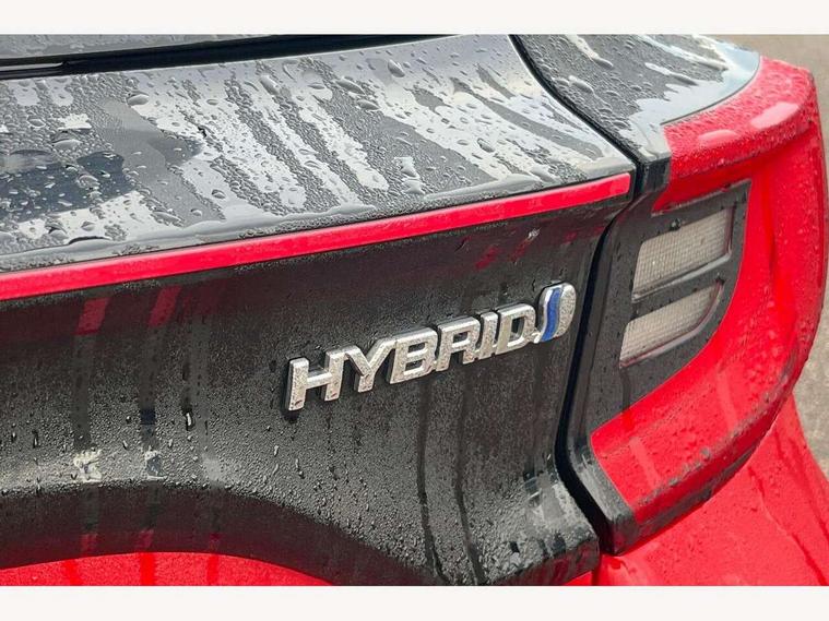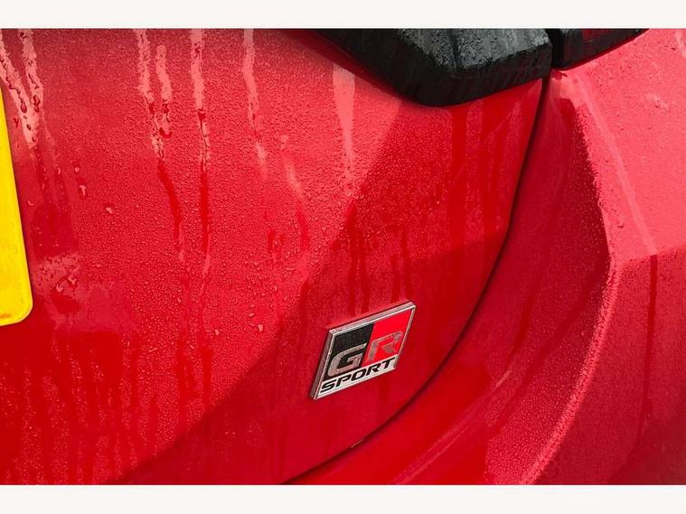 Adaptive cruise control, Adjustable speed limit with speed warning, Bluetooth connectivity, Colour binocular inspired displays with digital speedometer, E-call, Electric power steering, Hybrid energy display, Multi information display switches on steering wheel, Reversing camera, Smartphone integration with Apple CarPlay and Android auto, Voice recognition, Vehicle Stability Control (VSC), 6 speakers, 8" Multimedia display touch screen, Toyota Touch 2 with DAB, USB connection, Acoustic windscreen glass, Auto windscreen wipers, Automatic headlights, Body coloured door mirrors, Dark chrome lower front grille, Electric adjustable heated door mirrors, Follow me home headlights, Front auto power windows with anti jam protection, Full LED rear lights, LED daytime running lights, LED front fog lights, LED front light guide, LED Headlights, LED High mounted stop lamp, LED Indicators, LED rear light guide, Manual headlight levelling, Painted chequered front grille with hot stamp in mesh design, Rain sensor, Rear auto power windows with anti jam protection, Rear privacy glass, Rear side wing doors, Rear spoiler, Rear wiper, Shark fin antenna, Turning signal integrated indicators in door mirrors, 3 adjustable rear headrests, 3 spoke leather steering wheel, 60/40 split folding rear seat, Active headrests, Adjustable boot height, Black roof lining, Coat hooks in rear grab handles, Cup holders (2 front & door), Data Communication Module (DCM) connected services, Dual zone automatic air conditioning, Fabric upholstery with red stitching, Front armrest, Front sport seats, Glovebox, Height adjustable driver's seat, Height adjustable passenger seat, Isofix seat fixing, Leather gearshift, Map pockets on the backs of the front seats, Pollen filter, Shopping bag hooks, Single front passenger seat, Tilt/telescopic steering column, 3 point seatbelts on all rear seats, ABS+EBD+Brake assist, Electronic parking brake, Emergency brake light system (EBS), Front passenger airbag on/off switch, Front seatbelt reminder, Hill start assist control (HAC), Rear child proof door locks, Rear seat belt reminder, Supplemental Restraint System (SRS) 8 airbags: Driver & passenger's airbags, dual side curtain airbags, side impact airbags, front centre airbag, Toyota Safety Sense 2, Precollison + Night time Pedestrian & Cyclist Detection, Lane Trace Assist, Auto High Beam, Intelligent ACC & Road Sign Assist, Tyre pressure warning system, 2x Master key, Alarm/immobiliser, Keyless smart entry with push button start, Remote AC via MyT, Remote locking via MyT, Remote powered central double locking doors, GR Sport interior styling with accents and exterior styling, Piano black interior trim, Soft touch instrument panel, Space saver spare wheel,