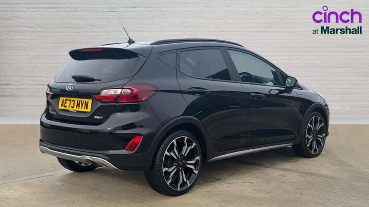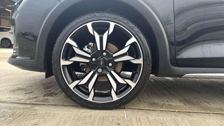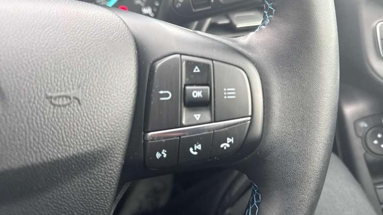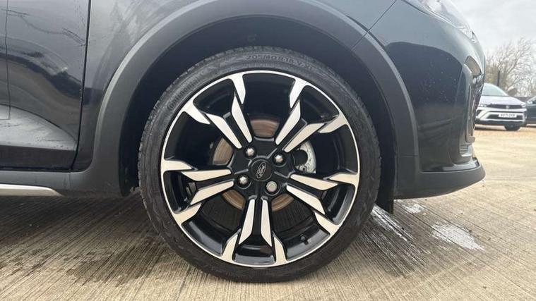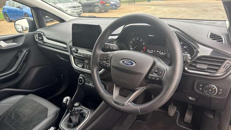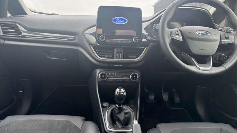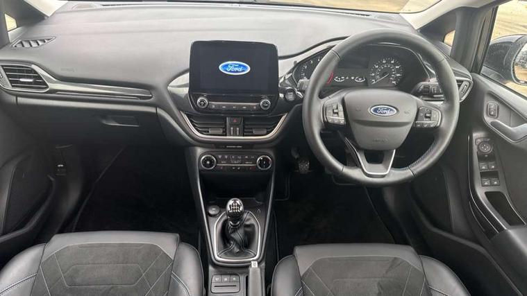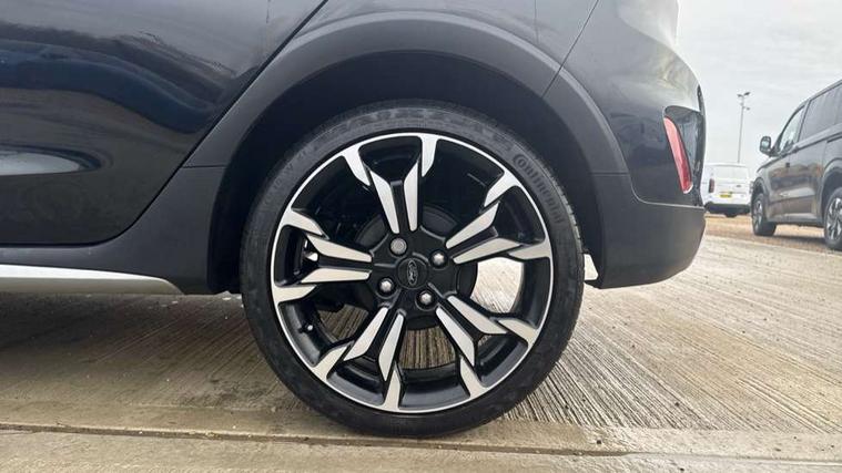4.2" TFT instrument cluster screen, Bluetooth system, Electric power steering, Extra selectable drive modes ( Trail, Slippery), Ford easy fuel, Rear parking distance sensors, Selectable drive modes (Normal, Sport, Track), Traffic sign recognition, Trip computer, Rough road suspension with increased ride height adjust, 2 USB ports, Auxiliary input socket, B&O Premium audio system with 8" touchscreen, 10 speakers, 360 degree sound system, Ford SYNC 3 navigation system and Ford pass connect, DAB Digital radio, Steering wheel mounted controls, Auto high beam, Body colour bumpers, Body colour door handles, Body colour rear spoiler, Chrome beltline trim, Cornering front fog lights, Electric front windows/one touch facility, Electric rear windows, LED Night signature to rear lights, Mesh design front grille with chrome surround, Power foldable door mirrors with puddle lights, Quickclear heated windscreen, Rain sensing wipers and auto dimming rear view mirror, Rear privacy glass, Rear wiper, Rugged body styling kit with active front wing badges, 3 spoke leather trimmed steering wheel with audio control, 60/40 split folding rear seat, Adjustable head restraints, Boot carpet, Centre console with opening armrest, 2x cupholders, 12v and USB, Chrome inner door handles, Drivers and Passenger lumbar support, EATC - Electronic Auto Temperature control, Footwell illumination, Front floor mats in velour, Front map reading lights, Front seat and rear pockets, Height adjustable passenger seat, Illuminated glovebox, Leather gaiter, LED ambient lighting, Load area light, Manual 4-way driver seat adjust, Overhead console with sunglasses holder, Pollen filter, Rake/reach adjustable steering wheel, Sensico partial premium upholstery, Sensico wrapped steering wheel, NCAP Pack - Fiesta, 3 point seatbelts on all rear seats, ABS+EBA, Curtain airbags, Driver and passenger airbags, Drivers knee airbag, Electronic stability control with hill start assist, Front passenger airbag deactivation, Front side airbags, Seatbelt warning, Two tone horn, Tyre pressure monitoring system, Ford keyfree system with Keyless entry and keyless start, MyKey system, Remote central locking & engine immobiliser, Thatcham Cat.1 alarm, 18" 5 spoke alloy wheels with shadow black machined finish,