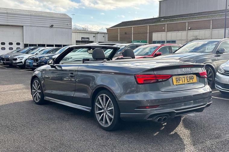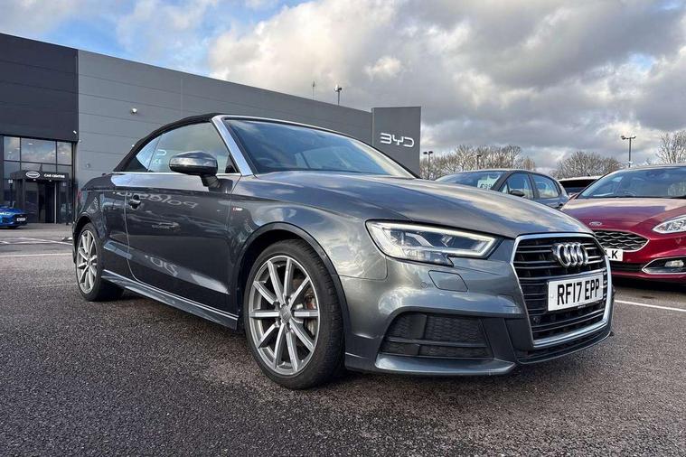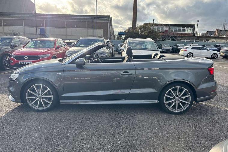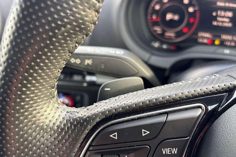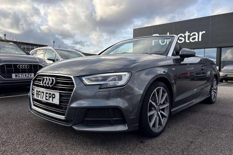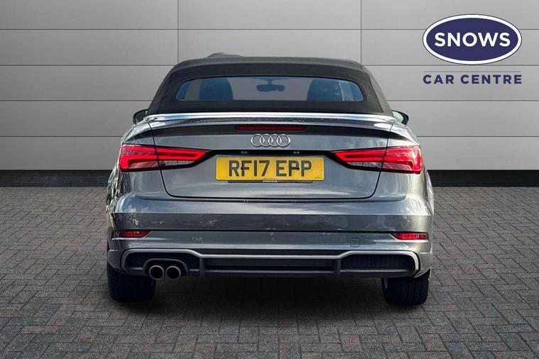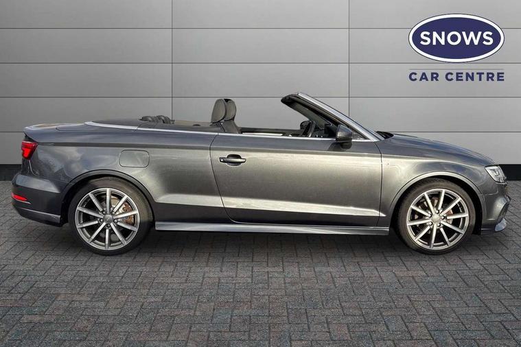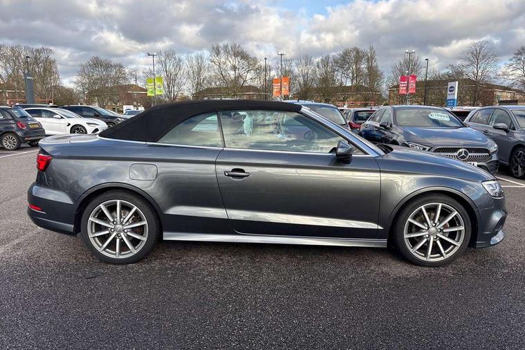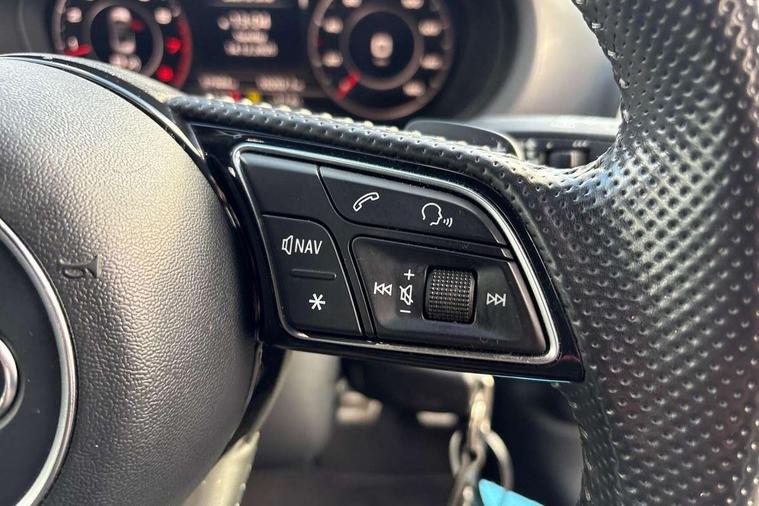 Audi connect, Audi drive select, Audi smartphone interface, Bluetooth interface, Colour driver's information system display, Service interval indicator, 2 USB ports, Audi music interface, DAB Digital radio, Aluminium side window trim, Automatic lights and wipers, Body colour bumpers, Body colour door mirrors with integral indicators, Chrome exhaust tailpipes, Electric operated/heated door mirrors, Front and rear electric windows, Fully automatic acoustic hood, Heated front windscreen, Heated rear window, Heated windscreen washer jets, LED daytime running lights, S Line body styling, 2 height adjustable rear headrests, 3 spoke flat bottom multi-function leather steering wheel including paddle shift, 4 lashing points to secure luggage, 50/50 split folding rear seat, Adjustable front armrest, Driver/passenger sunvisors, Dual zone electronic climate control, Front/rear floor mats, Height adjustable front seats, Height/reach adjustable steering column, Illuminated door sills, Illuminated glovebox, ISOFIX child seat preparation+airbag deactivation, Jack and tool kit, Perforated leather gearknob, Stainless steel pedals, Storage compartment in centre console, Storage compartments in doors, LED interior light pack - A3/RS3, Light and rain sensor pack - A3 Cabriolet, Storage pack - A3 Cabriolet/Saloon, 3 point seatbelts on all seats, ABS/EBD, Active bonnet, Active front headrests, ASR, Automatic roll over protection, Driver and passenger side airbags, Driver/Front Passenger airbags, Drivers knee airbag, EDL, Electromechanical parking brake, ESC - Electronic Stability Control + traction control, Front passenger airbag deactivation, Seatbelt warning, Tyre pressure monitor, Warning triangle and first aid kit, Anti theft alarm, Anti-theft wheel bolts, Immobiliser, Remote control central locking, Aluminium air vent surrounds, Aluminium trim elements, Space saver spare wheel,