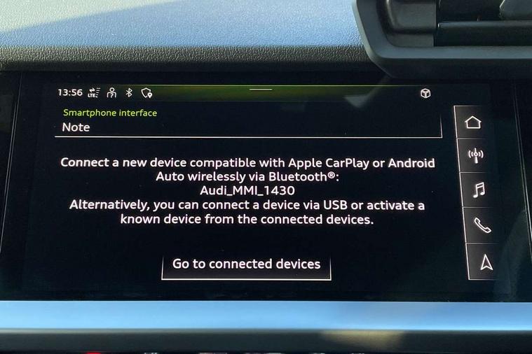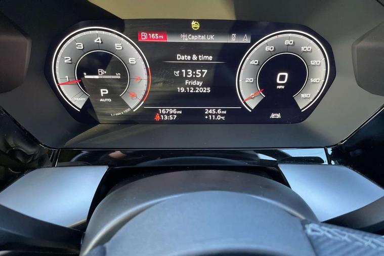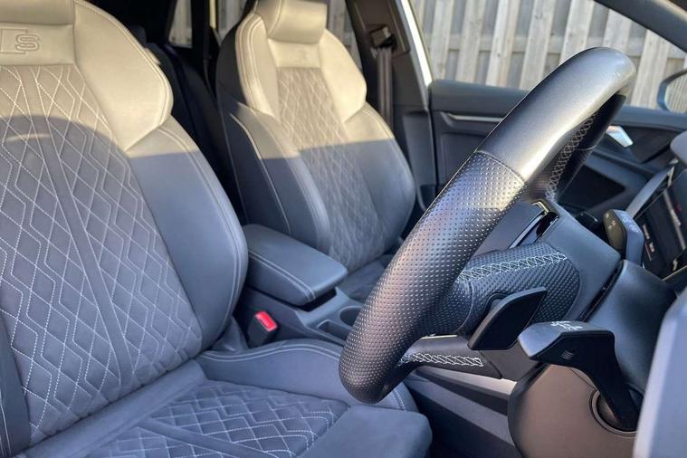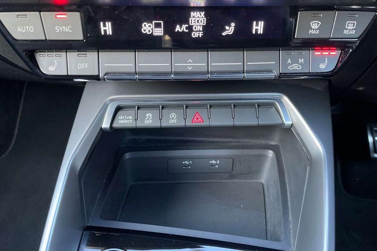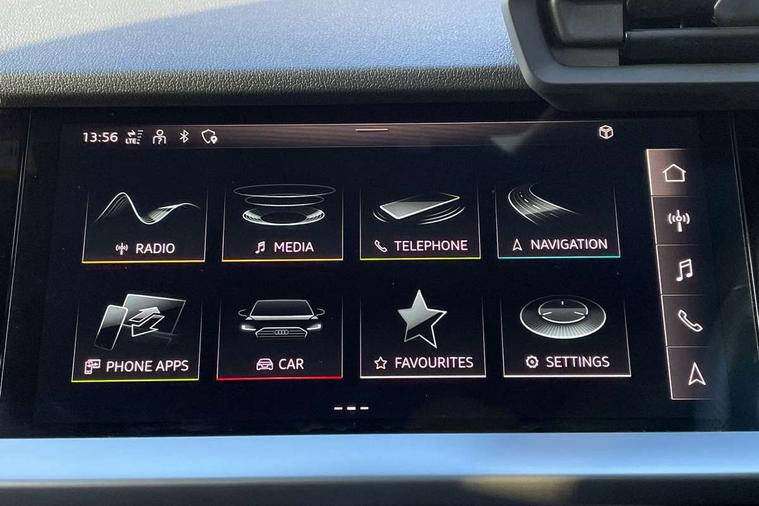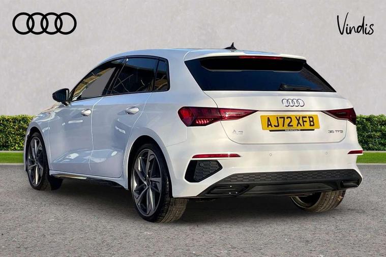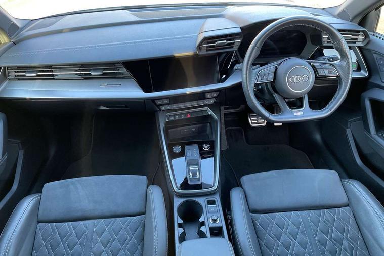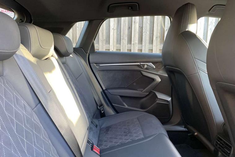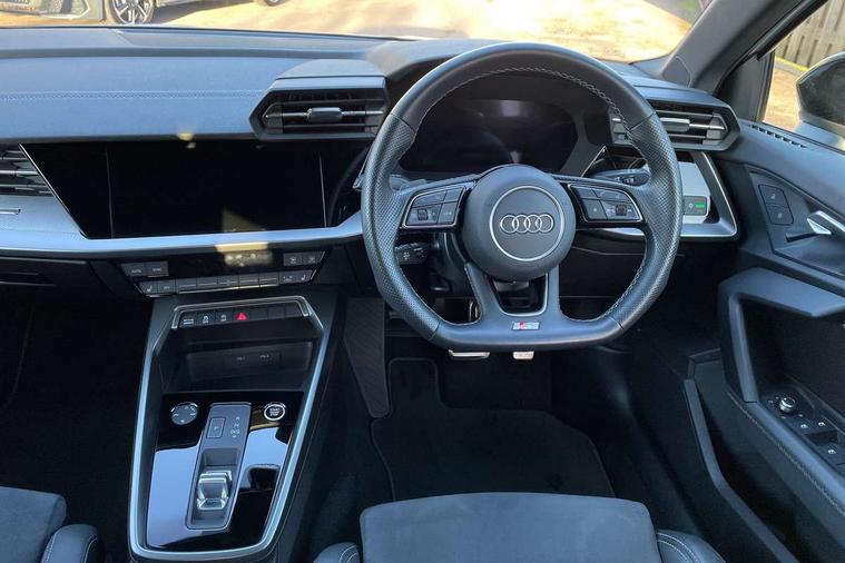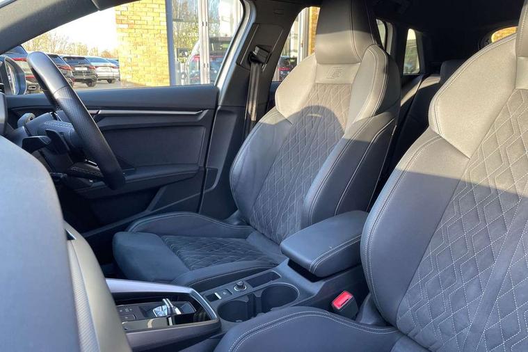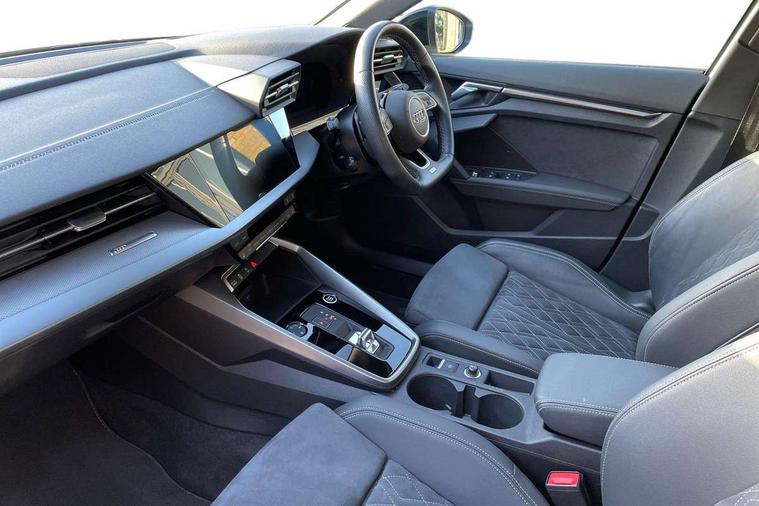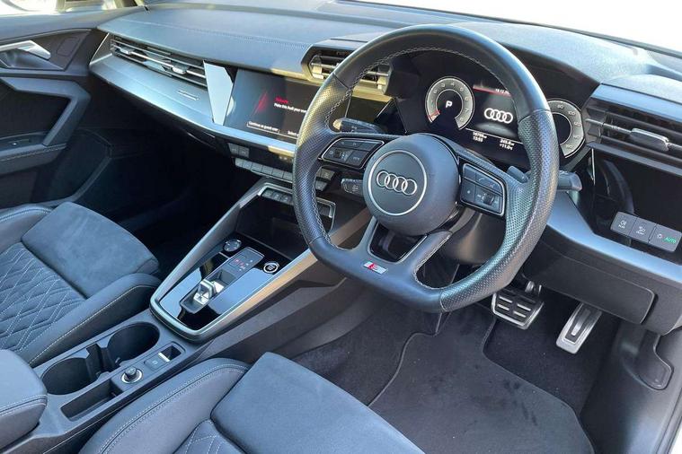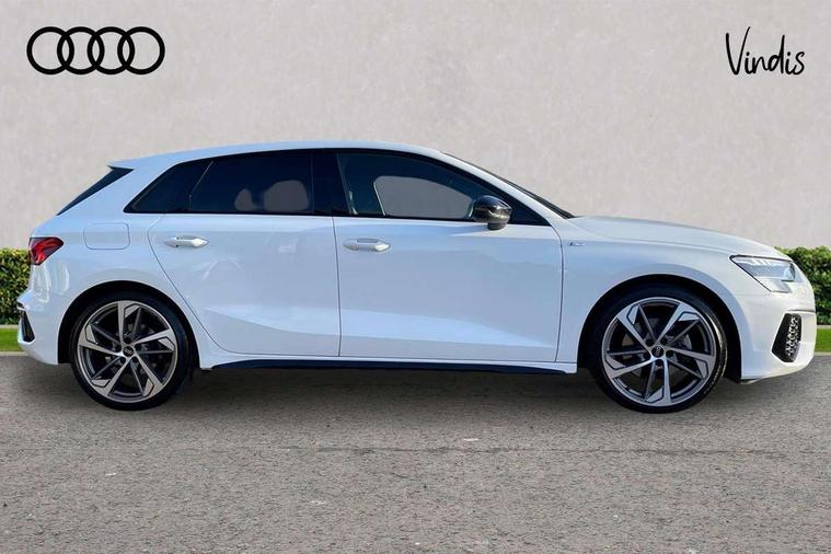 Audi drive select (Auto, Comfort, Dynamic, Efficiency and Individual), Audi smartphone interface, Audi virtual cockpit plus - 12.3" full HD resolution dynamic digital instrument cluster, Automatic start/stop system with recuperation, Bluetooth interface, Collision avoidance assistant, e-Call (emergency call), Electromechanical power speed sensitive steering, Lane departure warning system, MMI Navigation Plus with high resolution 10.1" colour touch screen display, Service indicator, Trip computer, Voice control system with natural language interaction, Sports suspension, 2xUSB-C connection with data and charging functions, 6 passive loudspeakers, DAB Digital radio, 3rd brake light, Acoustic glass windscreen, Audi matrix LED headlights, LED rear lights, dynamic front and rear indicators and headlight cleaning system, Auto dimming frameless rear view mirror, Body colour front spoiler blade, Electrically adj heated/folding + automatically dimming exterior mirrors + automatic kerb side function for passenger side exterior mirror, Front electric windows, Illuminated aluminium inserts front door sills with S logo, Integrated LED indicators in door mirrors, LED daytime running lights, Light and rain sensors, Privacy glass - dark tinted rear window, rear door and side windows, Rear diffuser in grained matt black, Rear electric windows, Rear side air outlets in grained matt black, Rear side wing doors, Rear wiper, S roof spoiler, 12V socket and storage compartment in front centre console, 3 seat bench in 2nd row, 4 way electrically adjustable lumbar support for driver and front passenger, 40/20/40 split folding rear seat bench with cupholder, Black cloth headlining, Dual zone electronic climate control, Electrically adjustable front seats for driver's side, Front and rear headrests, Front/rear floor mats, Heated front seats, Height and reach adjustable steering wheel, Illuminated vanity mirror, Interior lighting - glove compartment light and right hand side, Luggage compartment floor covering, Seat side bolsters, Single front passenger seat, Stainless steel pedals and front footrest in black, Aluminium interior elements pack - A3 Sportback, Black styling pack - A3 Sportback, Dinamica microfibre/mono.pur 550 artificial leather pack - A3 Sportback, Extended ambient lighting pack - A3 Sportback, LED interior lighting pack - A3 Sportback, 3x3 point rear seat belts, Audi pre sense front, Driver and front passenger airbag with passenger airbag deactivation, Electronic Stabilisation Control (ESC) including ABS, ASR and EDL, First aid kit with warning triangle and 2 safety vests, Front side airbags with head airbags and interaction airbag, Pre-sense front with pedestrian and cyclist detection, Seatbelt monitoring, Tyre pressure loss indicator, Anti theft alarm, Anti-theft wheel bolts, Electronically operated child lock, Immobiliser, Remote control central locking, Accent surfaces in the dashboard and centre console in platinum grey silk effect paint finish, Dark spectrum aluminium inlays, 19" 5 arm trapezoid design alloy wheels in titanium matt grey with diamond cut finish,