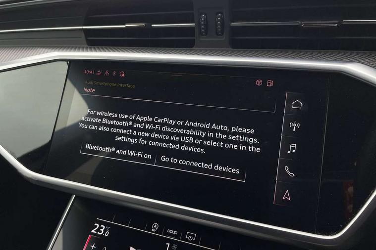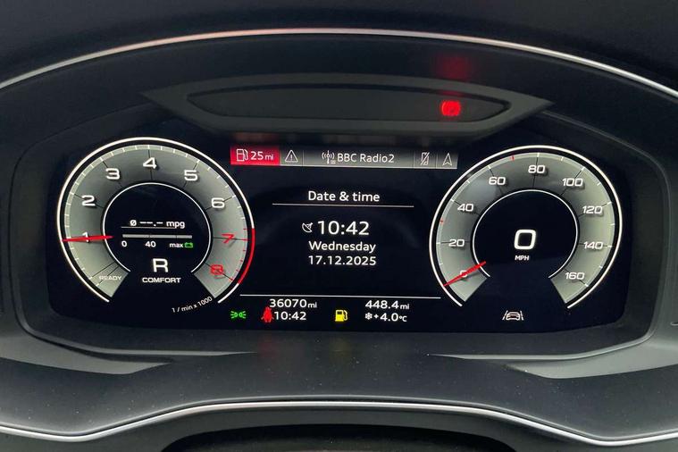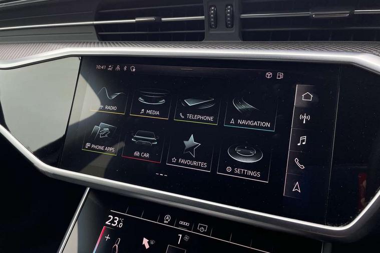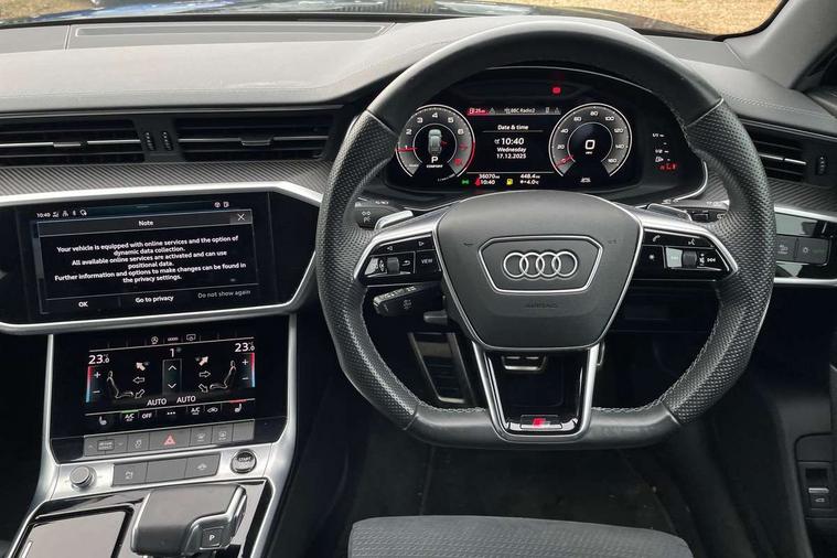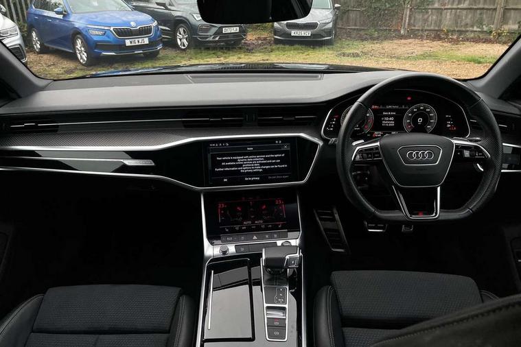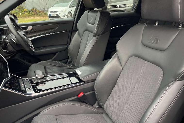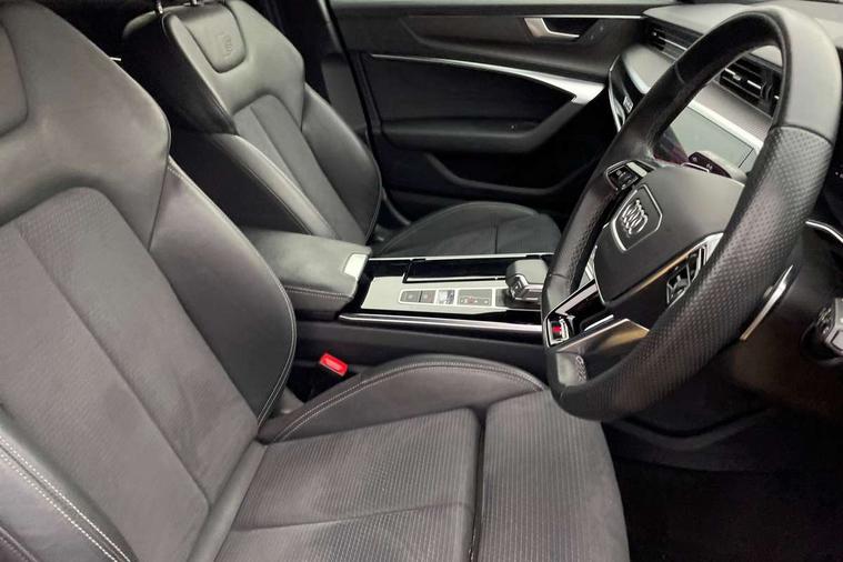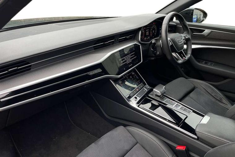 7" high resolution colour driver information display system, Audi connect safety and service (e-call), Audi drive select, Audi parking system plus - acoustic and visual park assist system for front and rear, Audi smartphone interface, Automatic start/stop system with coasting functionality, Bluetooth interface, Lane departure warning system, MMI navigation with MMI touch + twin touch screens 8.8" and 8.6" with haptic and acoustic feedback, Power operated tailgate, Progressive steering, Rear view camera, Service interval indicator, Voice control system, 12V Mild hybrid, Quattro on demand, Sports suspension, Audi music interface, Audi sound system, Auxiliary input socket, DAB Digital radio, USB connection, Black roof rails, Electric front/rear windows, Frameless auto dimming interior rear view mirror, Gloss black exterior mirror housings, Gloss black highlights on the exterior area of the Audi Single frame, Gloss black highlights on the front and rear bumpers, Gloss black highlights on the radiator grille, Gloss black highlights on the side windows trim strips, Headlight washers, Heat insulating glass in side and rear windows, Heat insulating glass in windshield, LED rear lights, LED signature front daytime running light, Matrix LED headlights with dynamic rear indicators, Matt black rear diffuser with diffuser strip and tailpipes in chrome, Matt black side air intake grille with inlay in matt aluminium, Privacy glass, Rain and light sensors, Rear roof spoiler, Signature rear LED light design, 2 zone deluxe electronic climate control, 4 way electric lumbar support for driver and front passenger, 40/20/40 split folding 3 rear seat bench in 3 parts with rear centre armrest, Black cloth headlining, Electrically adjustable front seats with driver memory, Front centre armrest, Front head restraints, Front/rear floor mats, Heated front seats, Height/reach adjust steering wheel, Illuminated door sill trims with S logo, Illuminated sun visors with vanity mirrors, ISOFIX child seat mounting and Top Tether with front passenger airbag deactivation, Leather gear knob, Luggage compartment system, Rear headrests, Stainless steel pedals and foot rest, Tool kit and car jack, LED Interior Ambient Lighting Pack - A6, Non smoking pack - A6, 3 point seatbelts on all seats, Airbags - Front side, front and rear including head, Audi pre-sense front, Black seatbelts, EBD - Electronic brakeforce distribution, Electromechanical parking brake, Electronic Stability Control (ESC) including ABS, ASR and EDL, Extended pedestrian protection measures, Seatbelt monitoring, Tyre pressure warning light, Warning triangle and first aid kit, Anti theft alarm with tow away protection, Anti-theft wheel bolts and wheel loosening detection, Immobiliser, Keyless Go, Remote central locking, Matt brushed aluminium dark inlays, 20" 5 V spoke star design Audi sport cast aluminium alloy wheels in matt titanium look,