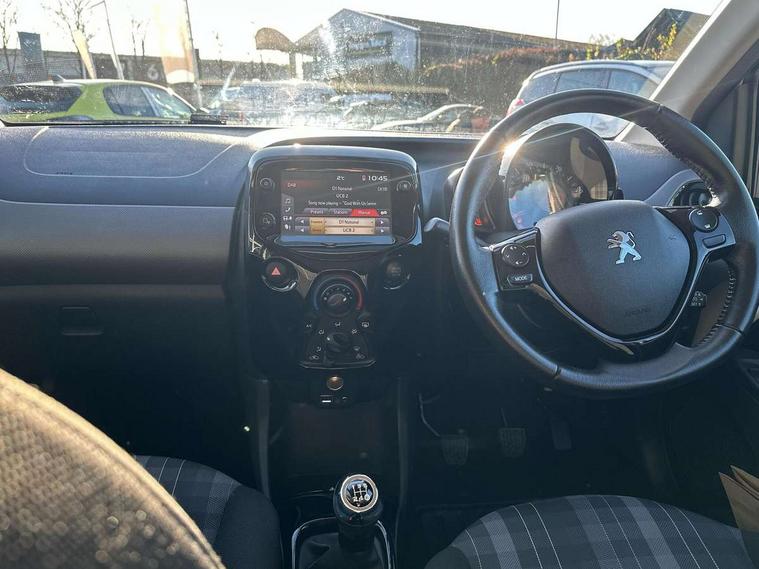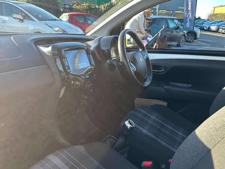 7" Capacitive colour touchscreen, Bluetooth system, Colour Reversing camera, Electrically assisted power steering, Rev counter, Service indicator, Speed limiter, Start/stop system, Trip computer, 2 speakers + 2 tweeters, 3.5mm jack for external audio device, DAB Digital radio, Steering wheel mounted remote controls, USB socket, Automatic headlights, Body colour bumpers, Colour coded door handles, Electric front windows, Electric operated/heated door mirrors, LED daytime running lights, Pop-out opening rear side windows, Raven Black roof, Rear wash/wipe, Static fog lights, Tinted rear and side windows, 2 rear head restraints, 50/50 split folding rear seat, Auxilliary 12V power socket, Carpet mats, Charcoal grey with gloss black centre console ambiance with charcoal grey dash insert with gloss black detailing around air vents, Driver seat height adjust, Front head restraints, Height adjustable steering wheel, Leather gear knob, Leather trimmed steering wheel, Manual air conditioning, Rear seat 3 point ISOFIX location mounts x 2, Square Jusa cloth upholstery, 2 x 3-point rear seat belts, ABS+Electronic Brake force Distribution, Driver and Passenger airbag with Passenger airbag deactivation switch, ESP with Hill Assist, Front and rear curtain airbags, Front side airbags, Rear door child safety locks, Tyre pressure sensor, Peugeot open and go system with keyless entry/stop start button, Remote control central locking, Seatbelt alarm (Driver & Passenger), Thatcham Cat 2 engine immobiliser, 15" Thorren alloy wheels, Space saver spare wheel,