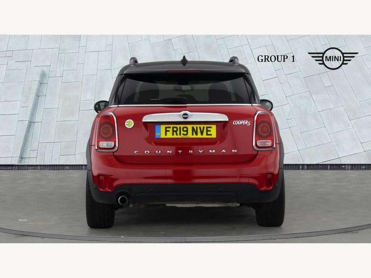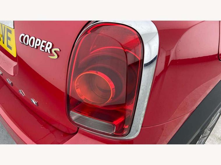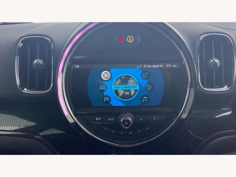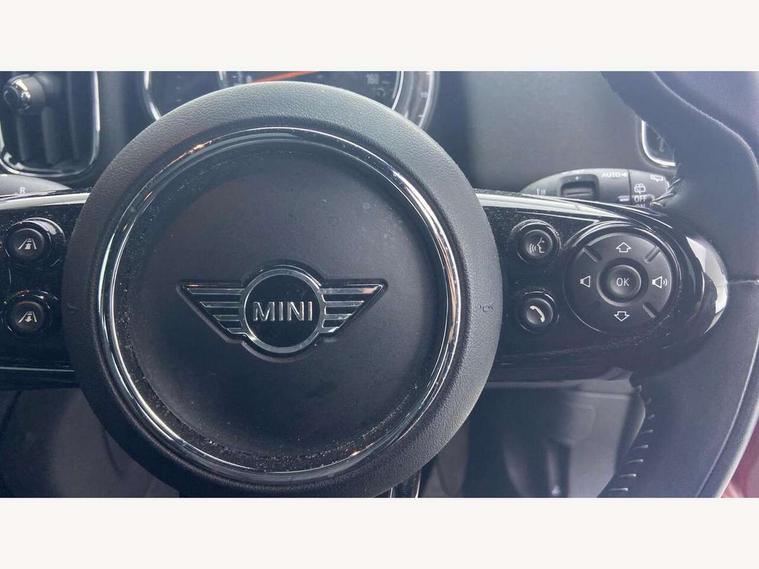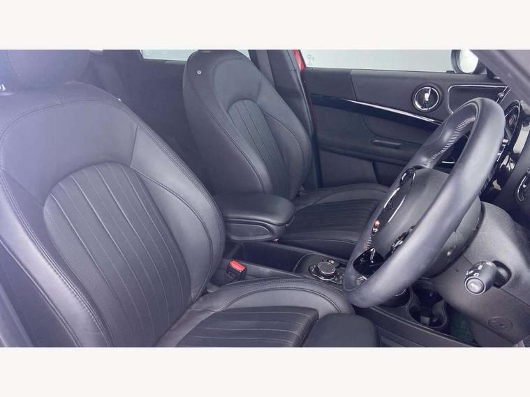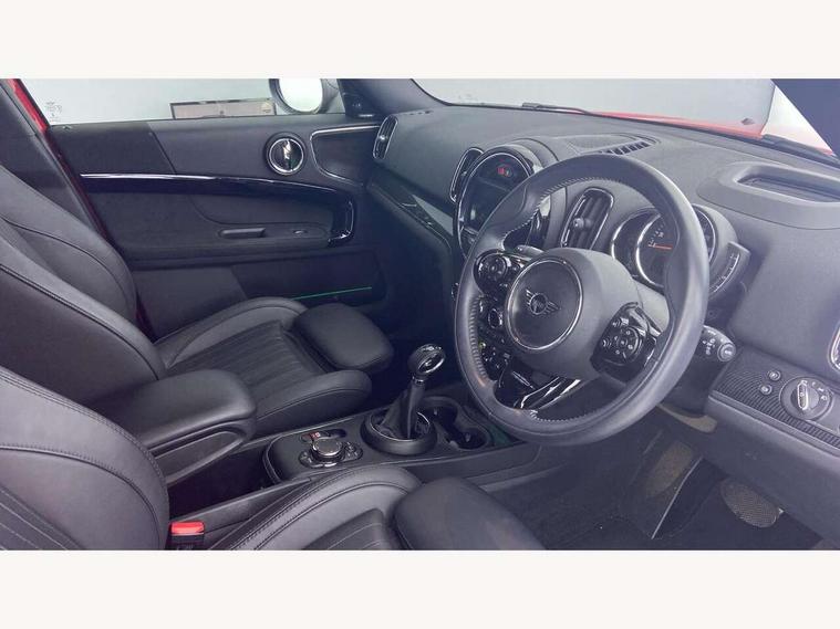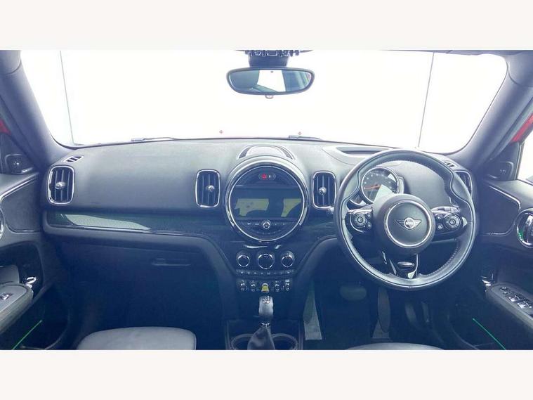 Active Guard incl speed limiting and lane departure functions with auto steering, and front collision warning with brake intervention, Automatic start/stop function with brake energy recuperation, eDrive button, Electro-mechanical speed dependant steering assistance, Instrument cluster, Mini E-call, MINI TeleServices, On board computer, Rear parking distance control, Automatic transmission, Charging flap on front left lower A-panel, Double Vanos system, Fully variable valve control, High precision injection, Performance Control, FM tuner and DAB digital radio, Bonnet scoop, Chrome border honeycomb structure radiator grille with S badge, Chrome fuel filler cap, Chrome line exterior, Day time driving lights, Dynamic brake lights, Electric windows, Heated rear window, Heated windscreen washer jets, Metal door sill strips with Cooper S imprint, Model logo, Model logo on Tailgate, Rain sensor with auto headlights, Rear fog lights, Rear window wiper, Side scuttle panel with integrated indicator, Split rear doors, Sun/heat protection glass, Twin exhaust tailpipe, White indicator lenses, 12V Accessory socket in centre console, 360L luggage compartment capacity, 4 lashing eyes in luggage compartment, 40:20:40 split folding rear seats, Charging cable, Chrome interior highlights, Cupholders, English handbook, Front headrests, Glove compartment, Height and length steering column adjustment, Isofix rear child seat preparation, Leather gearshift lever and handbrake gaiters, LED reading lights, vanity mirror lights, front foot well light and spotlight on front seats, Manual air conditioning, Mechanical seat adjustment, driver seat height adjust, forward/back and front seats backrest, MINI Yours fine walk nappa leather steering wheel with contrast stitching in silver and MINI Yours badge, Multifunction steering wheel, Passenger seat height adjuster, Rear headrests, Storage compartments in doors, Sunvisors with vanity mirrors, Excitement pack - Countryman, Navigation pack - Countryman, 2 tone horn, 3 point seatbelts on all seats, 6 Airbags - front, side, head and seat belt tensioners, Anti-lock braking system (ABS), DSC - Dynamic Stability Control, Electronic handbrake, Front and rear disc brakes, Hill start assist, Tyre pressure monitoring system, Alarm system with tilt sensor, monitoring doors, bonnet interior and tailgate, Auto drive away locking, Deadlocking function, Electronic vehicle immobiliser, Locking wheel bolts, Start/stop toggle with keyless go, Chrome line interior, Tool kit,