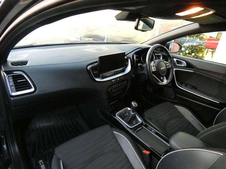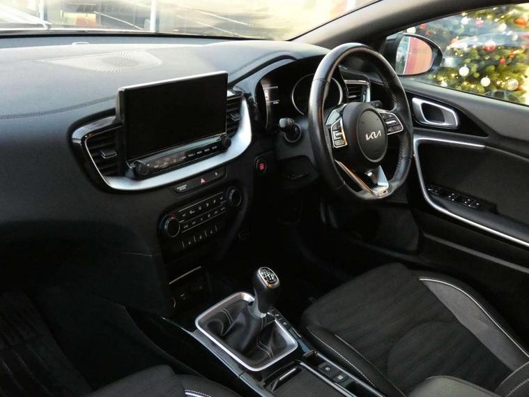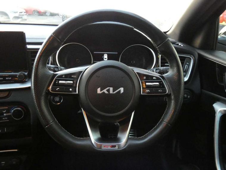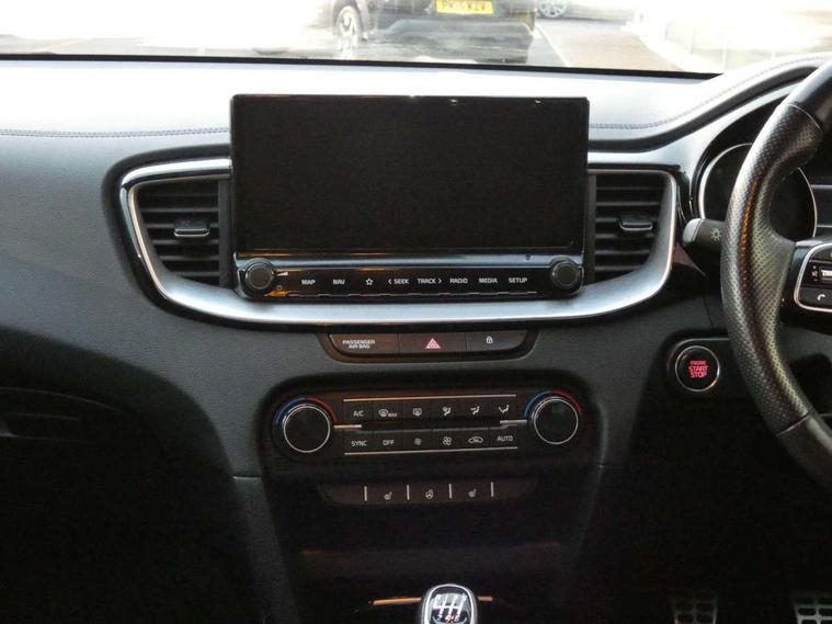 10.25" touchscreen satellite navigation including telematics, 4.2" supervision colour cluster display, Apple car play/Android Auto, Bluetooth with Voice Recognition & Music Streaming, Cruise control + speed limiter, Driver attention warning, Emergency call service, Emergency stop signalling system, Forward Collision-Avoidance Assist (FCA) - City/Pedestrian/Cyclist, Kia connected services featuring TomTom live, Lane keep assist, Motor driven power steering, Rear parking sensor, Reversing camera with dynamic guide lines, Trip computer, Intelligent Stop and Go, 6 speaker audio system, DAB Radio with MP3, Illuminated USB & aux ports, Steering wheel mounted controls, USB & AUX Ports for Connection of a Media Device, USB Fast Charger in Front Centre Console, 3rd brake light, Air intake with black accent lower lip, All-round Electric Windows with Front Auto Up & Down Function, Auto dimming rear view mirror, Automatic defog system, Automatic headlights, Body colour bumpers, Body colour exterior door handles, Body coloured rear roof spoiler with high gloss black trim, Chrome window surround, Electric adjustable/heated/folding door mirrors with LED Indicators, Exterior front door handle illumination, Front fog lights, Front wiper de-icer, Headlamp levelling, Heated rear window with timer, High beam assistant, High Gloss Black and Satin Chrome Radiator Grille, High gloss black door mirrors, High gloss black side sill mouldings, LED daytime running lights, LED full width tail lights, LED rear fog light, LED rear lights, Privacy glass in rear windows and tailgate, Projection headlights, Puddle lights, Rain sensing front wipers, Rear side wing doors, Rear wash/wipe, Wide view drivers door mirror, Windscreen Washer Level Warning, 2 x 12V Power sockets (Front centre console), 3 seat bench in 2nd row, 3 x passenger assist grips, 60/40 split folding rear seat, All-round height adjustable headrests, Aluminium pedals, Black headlining, Centre console storage and sliding armrest, Cloth/faux leather upholstery, Cupholders in rear armrest, Dash illumination dimmer switch, Driver & Front Passenger Sunvisors with Vanity Mirror Illumination & Ticket Holder, Driver + front passenger electric lumbar support, Driver's seat height adjuster, Dual zone automatic air conditioning, Front and rear door storage, Front map light with sunglasses case, Front Passenger Seat Height Adjuster, Front seat and rear pockets, Gear shift indicator, Heated front seats, Heated steering wheel, Illuminated ignition key hole, Interior door lock/unlock function, ISOFIX Child seat top tethers and anchor fixings, Leather D-Cut steering wheel with grey stitching, Leather gearshift, Load area cover, Luggage area light, Luggage area parcel shelf, Luggage hooks, Premium centre console with sliding cupholder cover, Rear Air Ventilation, Rear centre armrest, Rear coat hooks, Satin chrome interior door handles, Single front passenger seat, Tilt/telescopic adjustable steering wheel, ABS with Electronic Brakeforce Distribution (EBD) and Brake Assist System (BAS), All round 3-point seatbelts, Dual front side airbags, Dual horn, Electric parking brake, Electronic stability control (ESC) and vehicle stability management (VSM), Front passenger airbag deactivation, Height adjustable front seatbelts, Hill start assist control (HAC), Impact sensing auto door unlocking, Rear door child safety locks, Seatbelt reminder warning, Traction control, Twin curtain airbags, Twin front airbags, Tyre pressure monitoring system, Alarm system, Engine Immobiliser & Deadlocks, Engine Start/Stop Button with Smart Entry System, Locking wheel nuts, Speed sensitive auto door locking, Black high gloss front console tray garnish & door trim, Satin Chrome Fascia Trim, 17" GT-Line alloy wheels, Tyre mobility system,