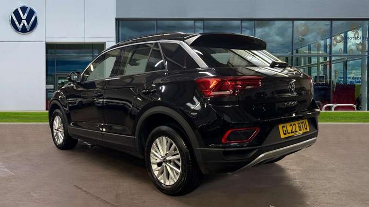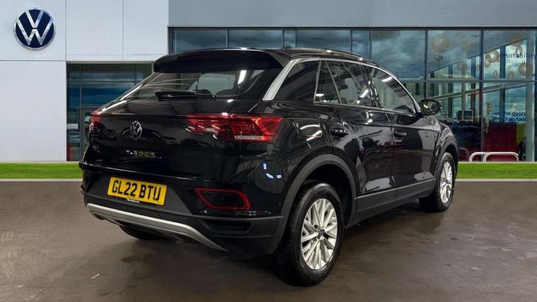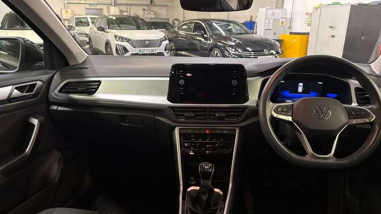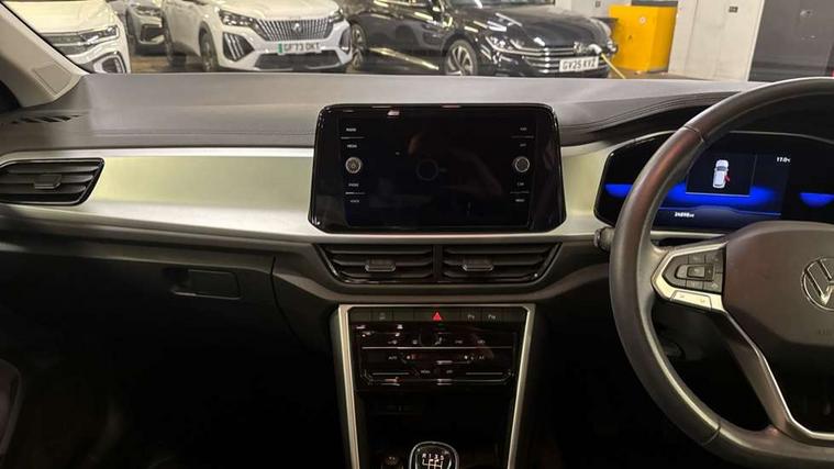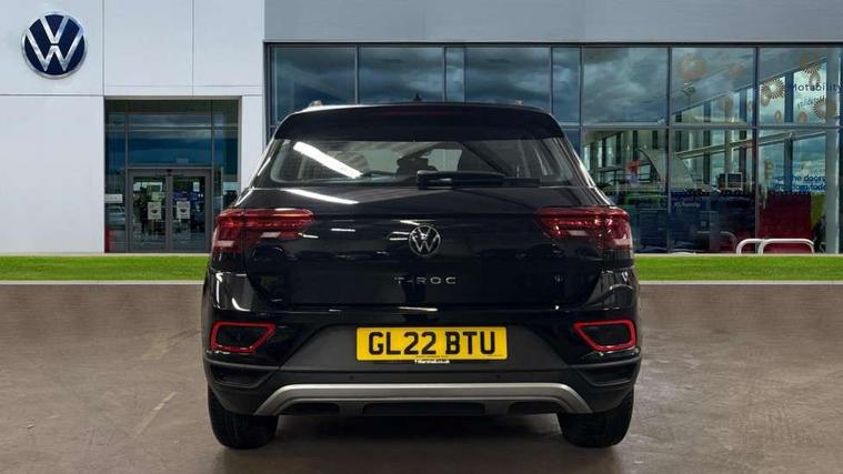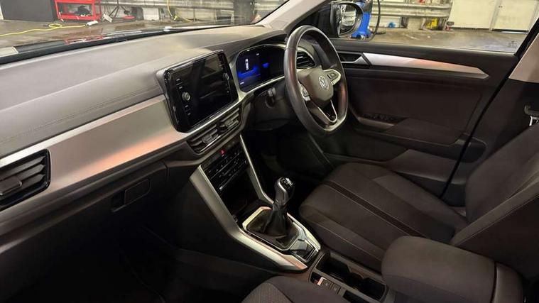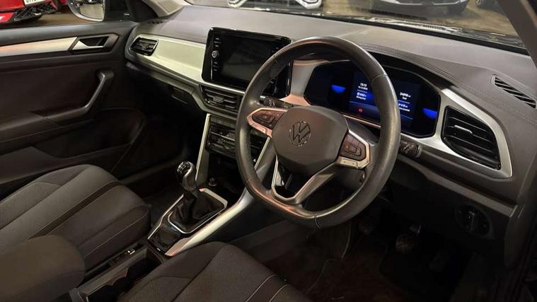 Bluetooth mobile phone interface, Driver alert system with fatigue detection, Driver tips and journey analysis, Emergency call service, Lane keeping system Lane Assist, Modified key software - reduce switch off time for key status change to Long no motion, Online services, Park assist including front and rear parking sensors, Power assisted speed sensitive steering, Service interval indicator, Tailgate/trunk lid release from outside, Think blue trainer driver tips and journey analysis, Warning sound and light for front seatbelts unfastened, Wireless app connect, Battery regeneration during braking, Front shock absorption, Rear shock absorption chassis with increased ride height, Start/stop function with battery regeneration, DAB Digital radio, Diversity antenna for FM reception, Front and rear 6 speakers, Music playback - MP3, WMA and AAC files, Premium USB cable in choice of either Apple or Android smartphone compatibility, SD card slot, Simultaneous pairing of 2 compatible mobile devices, Title and cover art display, We Connect and We Connect Plus functionality, 3rd brake light, Auto dimming interior rear view mirror, Automatic hazard lights activation under emergency braking, Automatic headlight control with LED separate daytime running lights with coming/leaving home function, Black roof rails, Body coloured bumpers and radiator grille with chrome trim and front fog lamps with chrome bezel, Body coloured exterior mirror housings and door handles, Extended roof spoiler, Exterior mirrors aspherical on driver side, convex on front passenger side, External USB type C socket and charging sockets, Front windscreen wiper with intermittent wipe and 4 position delay, Heated rear window, LED Headlights, LED rear combination lamps, LED rear number plate lights, LED tail lamp rear comination lamps, Power windows with comfort operation and circuit breaker, Rain sensor, Rear exhaust tailpipe, Rear fog light on one side and reversing lights on both sides, Rear side wing doors, Rear wash/wipe with intermittent wipe setting, Remote electrically foldable door mirrors, puddle lights and reverse activated passenger's door mirror, 12V power socket in centre console, 3 rear head restraints, 3 seat bench in 2nd row, 4 load lashing points in luggage compartment, Air care climatronic air conditoning system with active combination filter and 2-zone temperature control, Ambient lighting with mirror logo projection, Cloth upholstery, Door and side trim panel in cloth, Drawer under drivers seat, Driver/front passenger seat height adjustment, Front centre armrest, Front comfort sports seats, Front cupholders x 2, Front reading light, Instrument lighting, white adjustable panel illumination, Interior light delay, Isofix child seat preparation, Leather gearshift handle, Load-through provision with cup holder when folded down ('Unsplit rear seat bench, split folding backrest, with centre armrest), Luggage compartment lighting, Lumbar support for driver's and front passengers seat, Non-folding front passenger seat backrest, Single front passenger seat, Storage compartment in left and right luggage area, Storage compartment in rear doors, Storage compartments in driver and front passenger doors, Sunvisors with illuminated vanity mirrors, Variable boot floor, height adjustable and removable, Driver assistance pack without proactive passenger protection - T-Roc, 3 point height adj front seatbelts + pretensioners, 3 point seatbelts in outer rear with ECE label, ABS, Child locks on rear doors, Driver and front passenger airbag with front passenger airbag deactivation, Driver and front passenger safety-optimised head restraints, Drivers seatbelt reminder, Electronic parking brake, Electronic Stability Control (ESC) inc EDL (Electronic Differential Lock) and ASR (Traction Control), Front and rear passengers curtain airbag system including front side airbags, Front assist with city emergency braking and pedestrian monitoring, Front disc brakes, Front seat side impact airbags, Hill start assist, Predictive pedestrian protection, Rear disc brakes, Single tone horn, Tyre pressure loss indicator, Volkswagen roadside assistance, Alarm with interior protection, Anti-theft alarm system with interior monitoring, backup horn, and towing protection, Remote central locking with SAFELOCK, radio remote control with 2 remote control folding keys, Pewter matt decorative inserts for intrument panel, centre console and door panels at the front, Trims for alloy wheels,