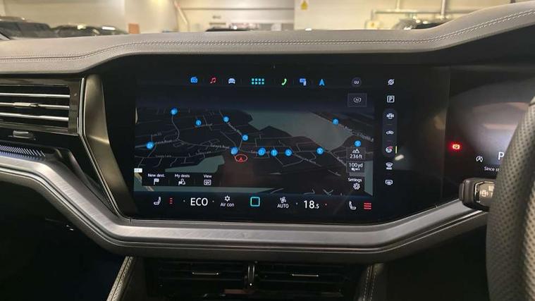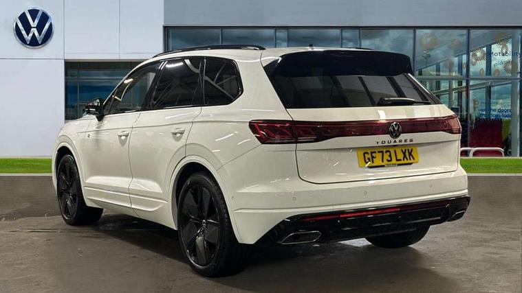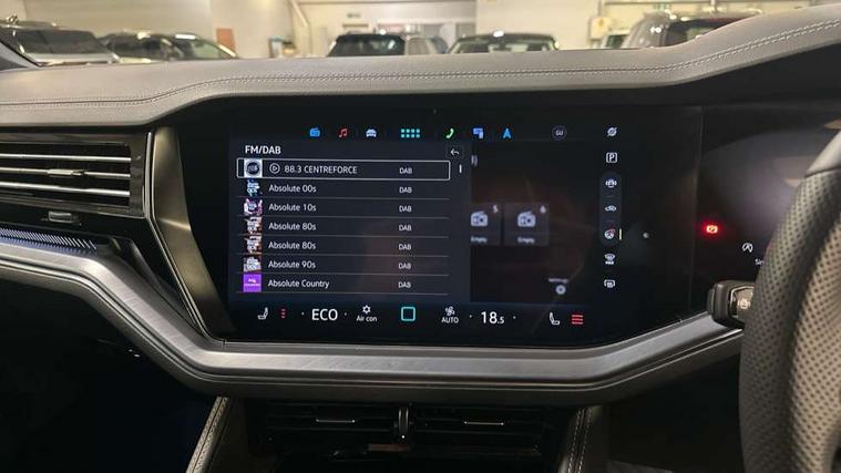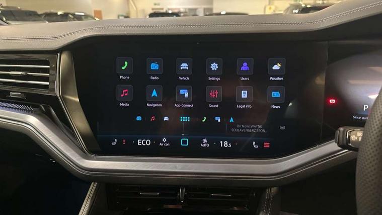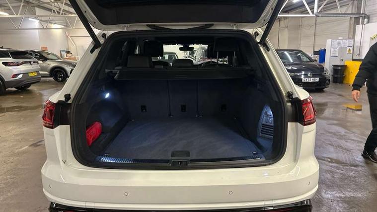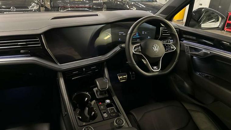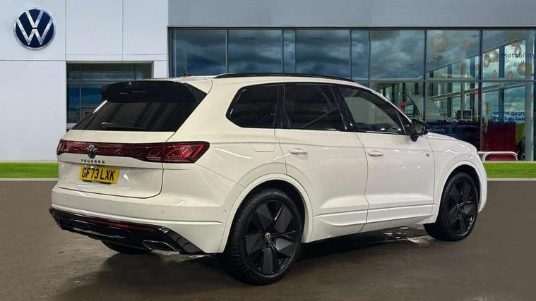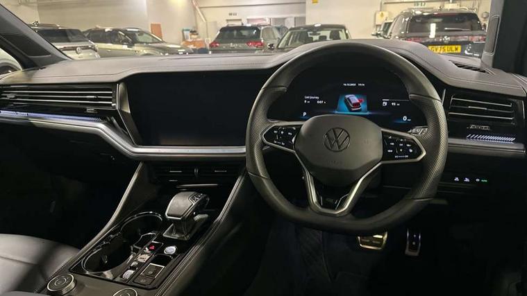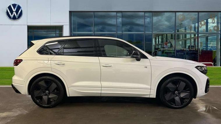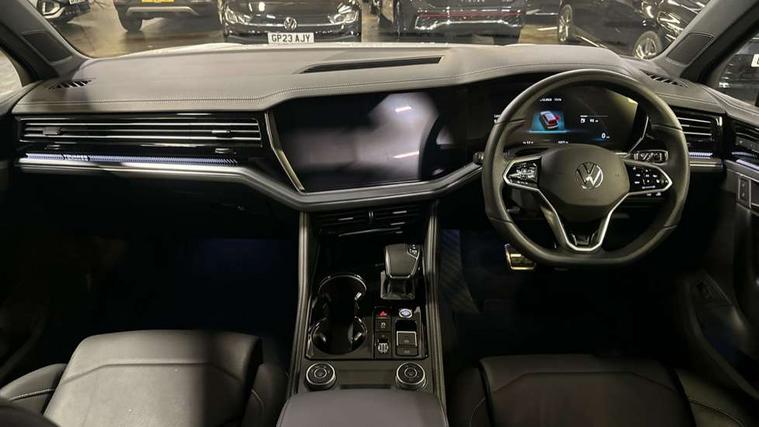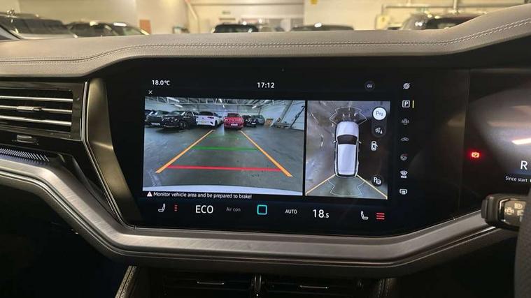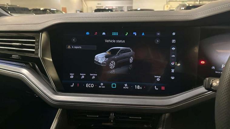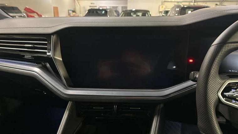 15" Screen Top infotainment system Premium (MIB3), Adaptive cruise control, Advanced driver attention and drowsiness monitor, Driver profile selection, Dynamic road sign display, E-Sim card for online connectivity, eCall emergency system, Innovision cockpit, Intelligent park assist, Mobile phone interface with inductive charging, Multi-colour Active Info display, Park Assist - Sensor controlled steering aid to assist parallel or bay parking, PAS, Warning signal and warning light for front and rear seatbelts not fastened, Wireless app connect, Adaptive chassis control, Air suspension, DAB Digital radio, Diversity antenna for AM/ FM reception, We Connect and We Connect Plus functionality, Automatic coming/leaving home lighting function, Automatic headlights, Black door mirrors, Black style comfort bumpers, Dynamic headlight range control with dynamic cornering light, Electric front tilt/slide panoramic sunroof and fixed rear sunroof, Electrically power adjustable, heated, folding, auto dimming, front passenger exterior door mirror lowering function, External USB type C socket and charging sockets, Gloss black roof rails, HD LED Matrix beam plus digital headlight projection with variable light distribution, Headlight washers, Heat insulating darkened glass in side and rear windows, Heated windscreen washer jets, Highway light, LED 3rd brake light, LED daytime running lights, LED rear combination lamp with variable lighting functions and special styling, Poor weather light, Rear exhaust tailpipe, Rear fog light with back up light on both sides, Rear light bar and illuminated logo, Rear side wing doors, Rear wiper, Stainless steel door sill protection, 12V socket in centre console, 3 rear headrests, 3 seat bench in 2nd row, 4 zone climate control, Airbag label on sun visor and B-pillar, Brushed stainless steel pedals, Double sun visors with illuminated vanity mirrors, Front + rear carpet mats, Front centre armrest, Leather wrapped multifunction sports steering wheel, heated, with touch control and shift paddles, Mechanical rear seat release, Power adjustable lumbar support in front, Power seats in front, right side with memory features and seat cushion depth adjustment, Rear seat backrest and split folding with center armrest, Single front passenger seat, Extra acoustics pack - Touareg, Memory pack plus - Touareg, 3 point seatbelts, outer rear with ECE lable, ABS, Child locks on rear doors, Curtain airbags, Driver and front passenger safety-optimised head restraints, Driver/Front Passenger airbags, Extended pedestrian protection measures, Front assist, Front seat side impact airbags, Generative braking with start and stop system, Height adjustable 3 point front seatbelts with pre tensioners, Passenger airbag deactivate switch, Three 3 point rear seatbelts, Two tone horn, Tyre pressure loss indicator, Warning triangle and first aid kit, Alarm system with interior protection, Easy open and close sensor controlled luggage compartment opening and closing with remote unlocking, Keyless Access Keyless locking and starting system with SAFELOCK, Aluminium decorative inserts, Black decorative trims, Gloss black decorative inserts in centre console, Tool kit,