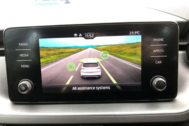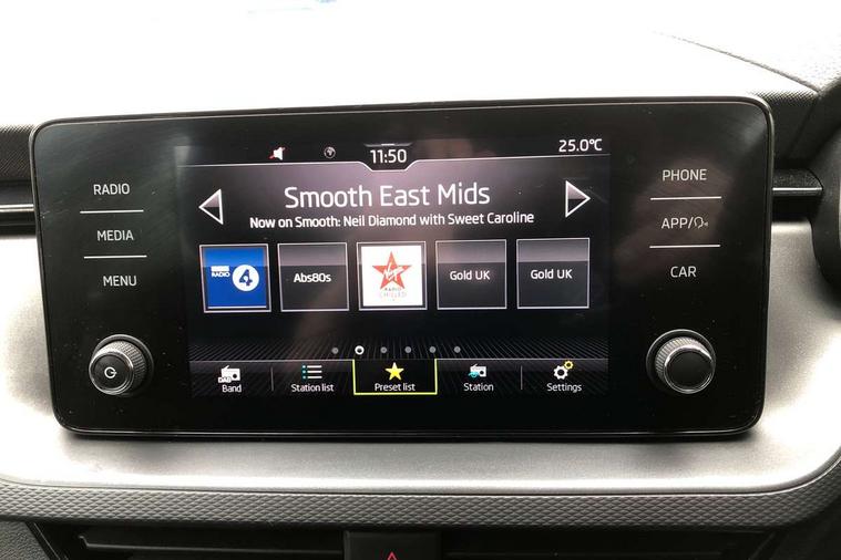 Bluetooth system, E-call, Front assist system, PAS, Service indicator, Speed limiter, Wireless Smartlink for Apple CarPlay (wired for Android Auto), 8 Speakers, Auxiliary input socket, DAB Digital radio, Body colour bumpers, Body colour door mirrors and handles, Chrome grille surround, Dimming rear view mirror with black surround, Electrically adjustable and heated door mirrors, Front and rear electric windows, Headlight range control, Heated rear window, LED rear lights - low functionality, LED third brake light, Light sensors, Rain sensor, Rear fog lights, Rear side wing doors, Rear wiper, 12V Accessory socket in centre console, 3 seat bench in 2nd row, Chrome inner door handles, Cloth upholstery, Front head restraints, Glove compartment with illumination, Ice scraper, Isofix child seat fittings on outer rear seats, ISOFIX on front passenger seat, Manual lumbar support for front seats, Rake/reach adjustable steering wheel, Reading lights, Single front passenger seat, Sun visors with illumination on front passenger, Textile floor mats, Third rear headrest, Top tether for front passenger seat, Umbrella in driver's door, 3x3 point rear seatbelts, Airbags - driver and front passenger, ESP, Front passenger airbag deactivation switch, Front side airbags with curtain airbags, Hill hold control, Manual parking brake, Manual rear child locks, One tone horn, Rear disc brakes, Seatbelt reminder for driver an co-driver, Traction control, Tyre pressure monitor, Anti-theft alarm system with interior monitoring, backup horn, towing protection and remote central locking with SAFE system, Anti-theft wheel bolts, Electronic engine immobilizer,