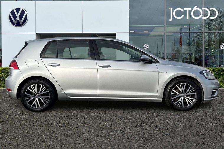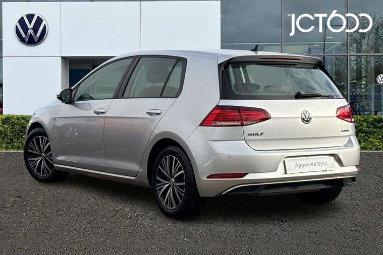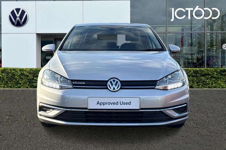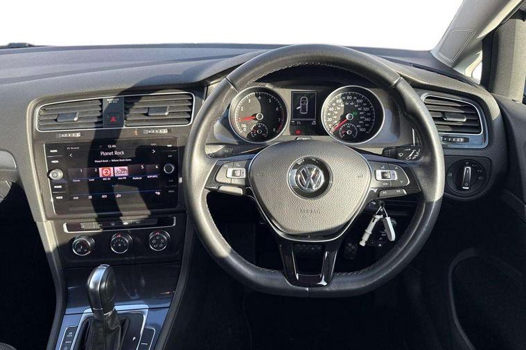 'Lights On' Reminder warning buzzer, 8" colour touch screen, ACC - Adaptive cruise control with front assist, forward collision warning, distance monitoring, city emergency brake and speed limiter, App-Connect, Bluetooth telephone and audio connection for compatible devices, Brake pad wear indicator warning light, Drive mode selector, Driver alert system, Driver profile selection, Front assist, radar sensor controlled distance monitor, city emergency braking + predictive pedestrian protection, Front assistant collision mitigation, Instrument cluster in white, Multifunction computer with visual gear change recommendation for fuel consumption, Power assisted speed sensitive electro-mechanical steering, Speedo, rev counter, electronic odometer, trip, service interval display, exterior temperature and fuel gauge, Stop/start system, Ultrasonic front and rear optical and audible parking sensors, Warning buzzer and light for front seatbelts unfastened, Battery regeneration during braking, XDS electronic differential lock, 8 Speakers, Composition media system, DAB Digital radio receiver, MP3/WMA compatability, SMS Functionality, USB and SD card connectivity, Aerodynamic black radiator grille with chrome trimmed insert, Automatic coming/leaving home lighting function, Automatic dimming rear view mirror/rain sensor, Black rear diffuser, Body colour bumpers, Body colour door handles, Body colour door mirrors with integrated indicators, Electric front windows, Electric rear windows, Electrically adjustable and heated door mirrors, Glavanised body, Heated rear windscreen, High level 3rd brake light incorporating LED Technology, Range adjustable headlights via infotainment system with LED daytime running lights, Rear number plate lights incorporating LED technology, Rear window aerial, Rear window wash/wipe with intermittent wipe, Reflectors in all doors, Remote electrically foldable door mirrors, door mirror puddle lights and reverse activated kerb-view adjustment on passengers door mirror, Tailgate with integrated rear roof spoiler, Windscreen wipers/ intermittent wipe + 4 position delay, 12V socket in luggage compartment, 3 rear headrests, 4 load lashing points in luggage compartment, 60/40 split folding rear seat backrest, Bag hook in luggage compartment x 2, Cooled glovebox, Dust/pollen filter, Front and rear reading lights incorporating LED technology, Front centre armrest with storage compartment and two rear air vents, Front seat back storage pockets, Grab handles front x 2, rear x 2 with integrated coat hooks, Height and reach adjustable steering wheel, Illuminated vanity mirrors, Instrument lighting white adjustable panel illumination, Interior light delay, Isofix preparation for 2 rear child seats, Load through provision with rear centre armrest and cupholders x2, Luggage compartment light, Multifunction leather steering wheel with leather trimmed gear knob, Overhead storage box, Pearl grey headlining, Storage box in luggage compartment, Storage compartment in roof console with cover, Storage compartments in front doors, Storage compartments in rear doors, Stowable luggage compartment cover, Sun visors, Three spoke multi-function leather trimmed steering wheel and gearknob, Variable boot floor, height adjustable and removable, Mirror pack - Golf, 3 rear three point seatbelts, Airbags - Driver's and front passenger's, curtain airbag, Driver's knee, front side impact and passenger's airbag deactivation switch, Anti-lock Braking System (ABS) with Hydraulic Brake Assist (HBA), Automatic post collision braking system, Child locks on rear doors, Driver/Passenger optimised head restraints, Electronic parking brake with auto hold, Electronic stability control (ESC) including Electronic differential lock (EDL) and ASR (Traction control) with deactivation via infotainment system, Pre crash preventive occupant protection, Three point height adjustable front seatbelts with tensioners, Tyre pressure loss indicator, Alarm with interior protection, Electronic engine immobiliser, Remote central locking with 2 remote folding keys, Brushed dark silver decorative inserts in dash and door panels, Chrome plated air vent surround, Chrome-plated light switch surround, Polar night black centre console, Steel space saver spare wheel,