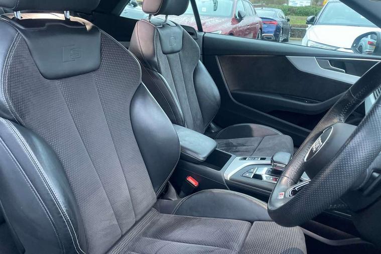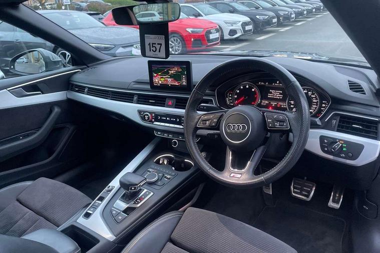 7" Colour driver information system, Audi connect, Audi drive select, Audi parking system plus with front and rear sensors, Audi smartphone interface, Automatic start-stop system with coasting functionality and efficiency programme, Bluetooth interface, Electric boot release, Electro-mechanical power steering, MMI Navigation, Seat belt microphone, Service interval indicator, Voice control system, 2 x USB charging port with aux input socket, CD player, DAB Digital radio, Two SDXC card slots, Air inlet in matt aluminium with horizontal inlay, Aluminium roof frame and window trim, Auto dimming rear view mirror, Black grained rear grille, Body colour bumpers, Body coloured door mirrors, Chrome plated exhaust pipe, Electric adjustable heated door mirrors, Electric front windows, Front fog lights, Fully automatic acoustic hood, High beam assistant, High gloss black B pillar trims and triangular rear door trim, Honeycomb side air inlet in titan black, Rain and light sensors, Rear diffuser in Twilight grey matt with honeycomb grille, S line badges on front wings, S Line body styling, S Line front and rear bumpers, S Line side skirts in black, S line sill plates, Twilight grey matt radiator grille in matt aluminium inlay, Windscreen with acoustic glazing, 50/50 split folding 2 seater rear bench seat, Adjustable steering column, Black headlining, Black perforated leather gearknob, Centre console with cupholders, Contrast stitching on seats, steering wheel and gear lever gaiter, Deluxe 3 zone electronic climate control, Front centre armrest, Front head restraints, Front/rear floor mats, Gearshift paddles, Illuminated door sill trim with S logo, ISOFIX child seat mounting and top tether, Jack and tool kit, Luggage compartment mat, Rear headrests, S embossed logo on front sport seats, Stainless steel pedals and foot rest, Non Smokers pack, 4 airbags in front, Electromechanical parking brake, Electronic Stabilisation Control (ESC) including ABS, ASR and EDL, Front passenger airbag deactivation, Height adjustable front seatbelts, Hill hold function, Multi-Collision braking, Pop-up bonnet for pedestrian protection, Pre sense city, Seatbelt monitoring, Tyre pressure warning, Variable restraint system, Warning triangle and first aid kit, Anti theft alarm system, Anti theft wheel bolts, Immobiliser, Keyless Go, Remote central locking, Tyre repair kit,