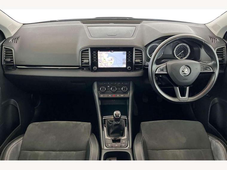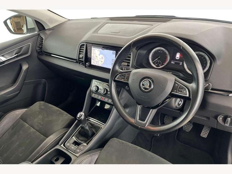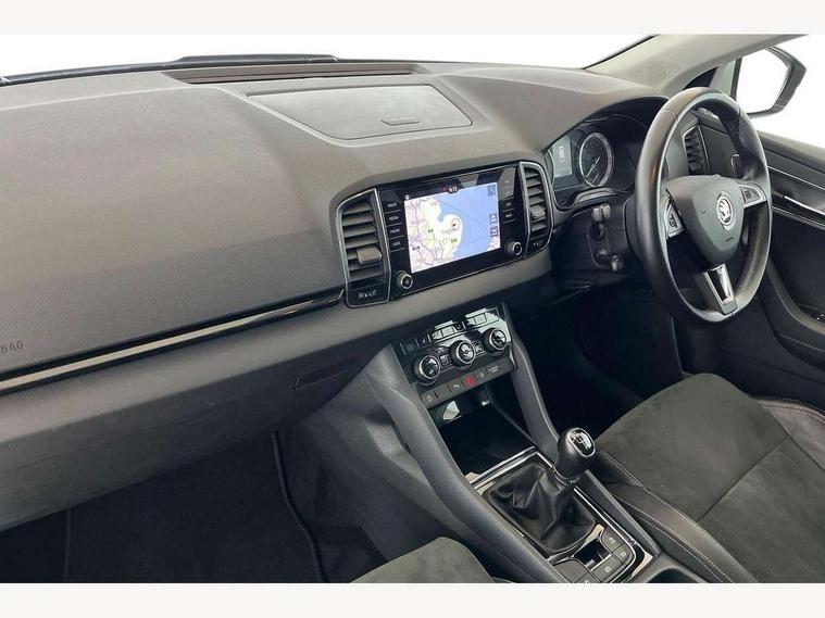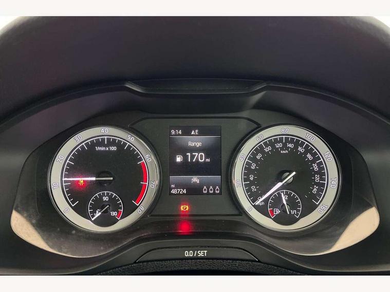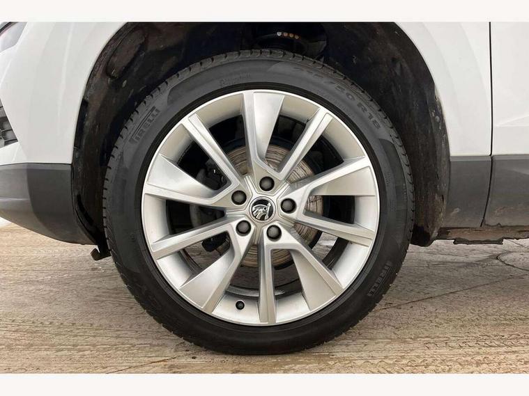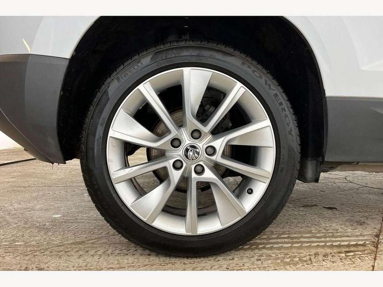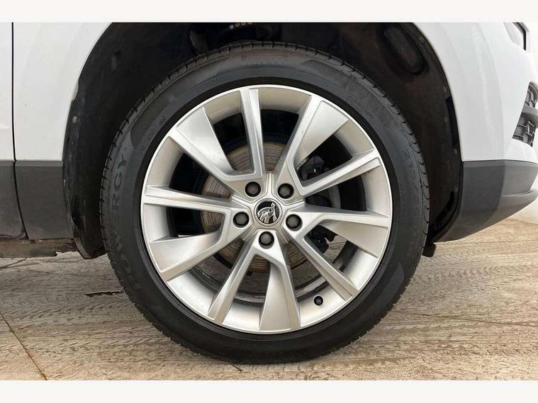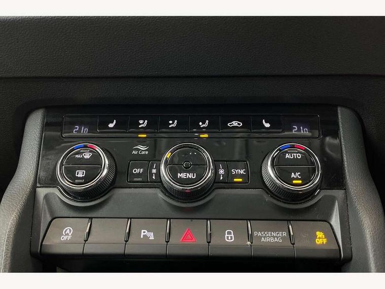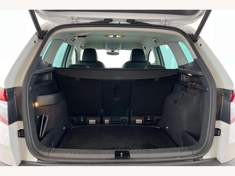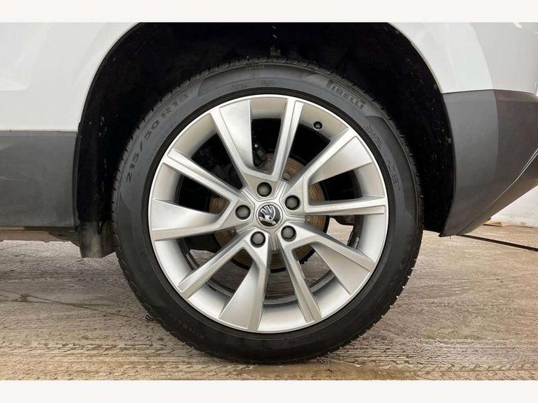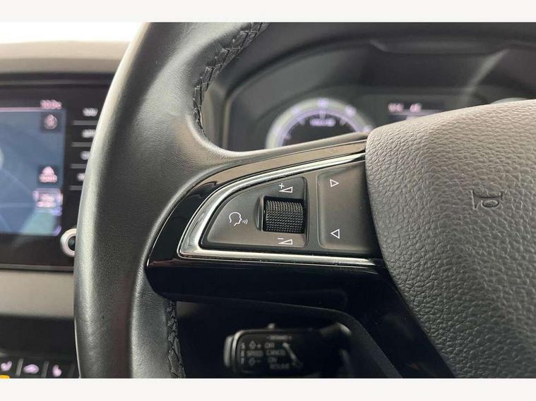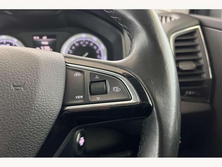 Drive mode selector, Driver alert system, Driver fatigue sensor, Driver profile selection, Multifunction colour trip computer, Outside temperature gauge, Rear view camera, Service interval indicator, Start/stop system with regenerative braking, DAB radio with Bluetooth, SD card slot, USB connection, Acoustic glass, Aero front windscreen wipers with intermittent function, Automatic headlight control system, Black electric window control buttons, Body colour door mirrors and handles, Body coloured bumpers, Electric front and rear windows with child proof lock, Full LED headlights + adaptive front light system + LED daytime running lights and front cornering fog lights, Headlight washers, Heated rear windscreen, LED rear lights with high functionality, Light assistant (coming/leaving home/tunnel light), Privacy glass, Safety reflectors on front doors, Third brake light, 1.5 litre bottle holders in driver and front passenger door panels, 12V socket in boot, 12v socket in front centre armrest with storage compartment and rear air vents, 2 Folding hooks and nets in boot, 2 Front readings lights for driver and passenger, 3 rear height adjustable headrests, 4 foldable roof handles with rear coat hooks, 4 lashing points on luggage floor, Backrest release, Cargo elements in boot, Chrome inner door handles, Dual zone climate control, Folding tables on the front seat backrests, Front head restraints, Front seat and rear pockets, Height adjustable front three point seats belts with tensioners, Height adjustable passenger seat, Height/reach adjust steering wheel, Ice scraper, Illuminated and cooled glovebox, Illuminated luggage compartment, Isofix child seat preparation outer rear, Net programme in boot, Pen holder, Pollen filter, Rear boot cover, Rear reading lights, Rear seats fixed folding and divided 60:40, Removable LED torch in the boot, Retractable parcel shelf attachable to tailgate, Safety vest holder, Storage box in upper central dashboard closed, Storage compartment below the passenger seat, Sunvisors with illuminated vanity mirrors, Textile floor mats, Umbrella under passenger seat, VarioFlex seats with retractable parcel shelf, Chrome roof rails + chrome pack - Kodiaq, Airbags - Front side, head, knee and curtain, Automatic door unlocking in case of crash, Automatic fuel cut off in case of crash, Driver airbag, Electronic parking brake with auto hold function, Emergency rear braking signal, ESC including ABS, MSR, ASR, EDS, HBA, DSR, RBS, MKB and traction control, Front assist radar scanning of the space in front of the car with automatic braking, Hill hold control, Passenger airbag with switch-off function, Pedestrian monitor, Seatbelt reminder signalisation and pretensioner for all seats, Three point seatbelts rear, Two tone horn, Tyre pressure display, Tyre pressure monitor, Alarm with interior monitoring, back up horn and tilt sensor with safe function, Electronic engine immobiliser, Keyless entry and keyless start with safe system, Remote central locking with 2 remote folding keys, Chrome framed air vents, Storage on wheel cover,