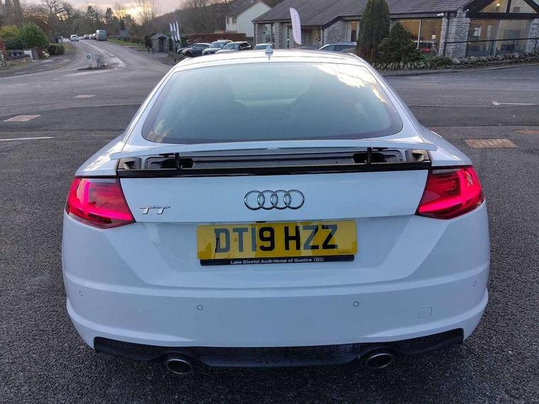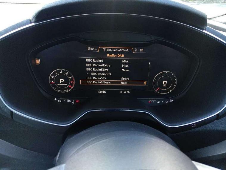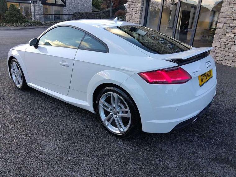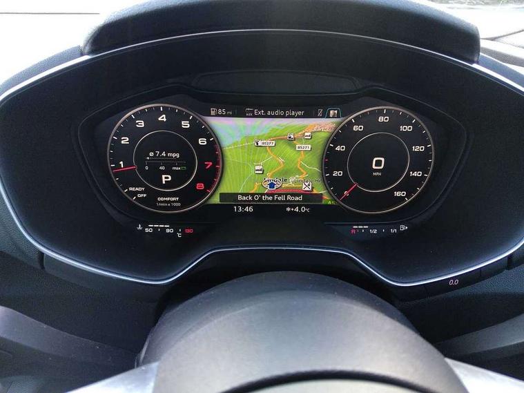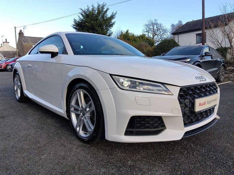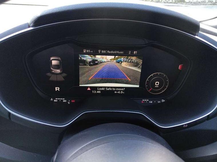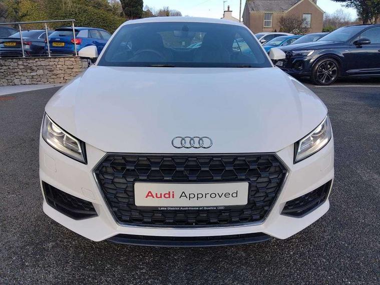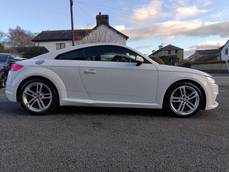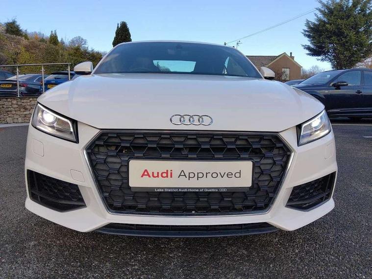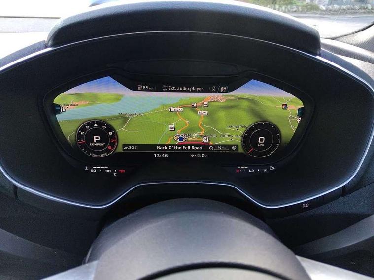 Audi drive select with 4 Pre configured modes, Audi virtual cockpit - 12.3" high-resolution LCD display with fully customisable instrument cluster, Cruise control + speed limiter, MMI touch panel, Mobile phone preparation with bluetooth interface, Progressive power assisted steering, Rear parking sensors, Service interval indicator, Start/Stop system with energy recuperation, TP memo, Sports suspension, 8 speakers, AM/FM radio, Audi music interface, Bluetooth audio streaming, DAB Digital radio, MMI Radio with CD player and SD/XC card slot, Auto dimming rear view mirror, Body colour bumpers, Body colour electrically adjustable and heated door mirrors with built in LED side indicators, Electric folding door mirrors, Electric front windows, Front fog lights, Green tinted heat insulating glass, Light and rain sensors, Retractable rear spoiler, Sunband for windscreen, 12V socket, 3 spoke flat bottomed high multi-function leather sport steering wheel with gearshift paddles, Alcantara/Leather upholstery includes seat centre panels, door trim inserts in black Alcantara with side bolsters, head restraints in black leather, Aluminium door sill trims, Front centre armrest, Heated front seats, Height adjustable driver's seat, Height adjustable front head restraints, Height/reach adjust steering wheel, ISOFIX child seat mounting for front passenger seat with airbag deactivation, Reading lights, Rear top tether child seat ISOFIX attachment, Split folding rear seat, Tool kit, Top tether anchor plate for isofix child seat, Non smoking pack - TT/TT RS, 3 point front seat belts, ABS, ASR traction control, Brake energy regeneration, Curtain airbags, Driver and front passenger airbag with front passenger airbag deactivation, EDL traction control, Electromechanical parking brake, ESP, First aid kit, Front side airbags, Head airbags, Hill hold assist, Seatbelt warning, Tyre pressure warning, Warning triangle, Anti theft alarm, Anti theft wheel bolts, Immobiliser, Keyless Go, Remote central locking, Aluminium design inlays, Tyre repair kit,