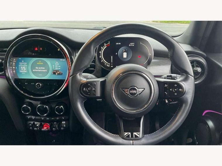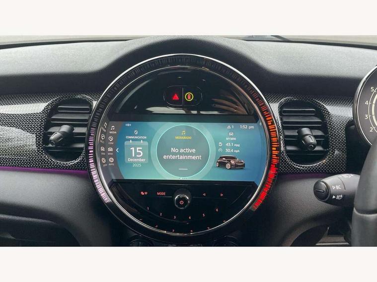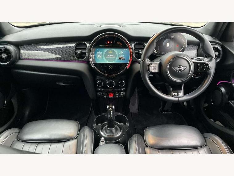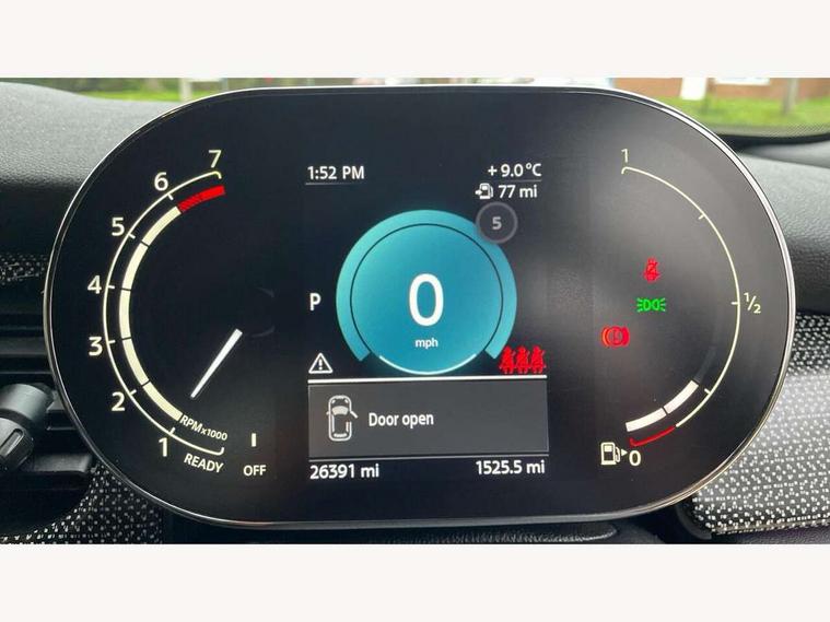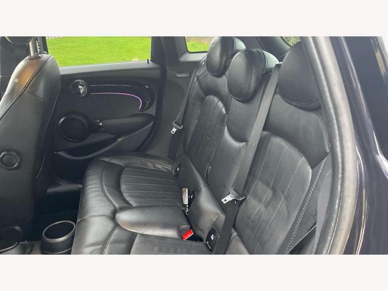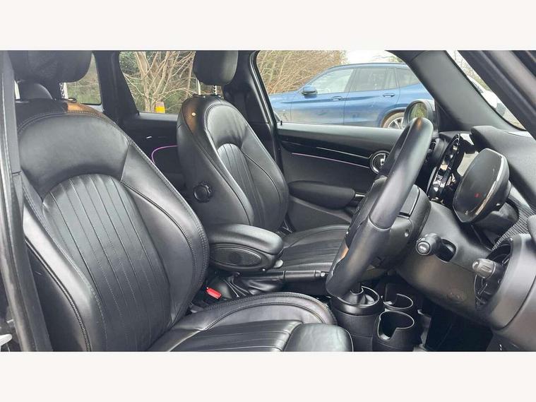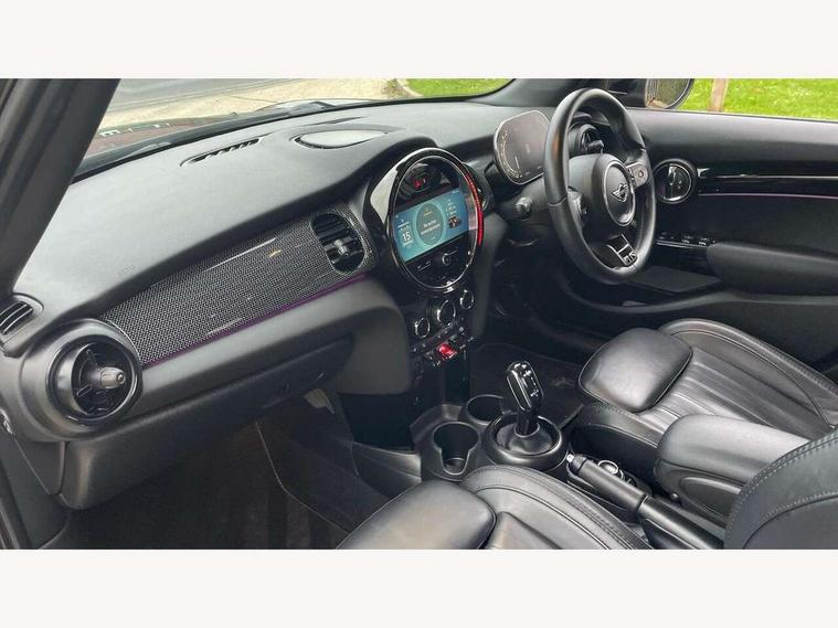 Apple CarPlay, Automatic start/stop function with brake energy recuperation, Compatible mobile phone bluetooth with audio streaming, Electro-mechanical speed dependant steering assistance, Flexible car sharing preparation, MINI Driving Modes - centre toggle switch to control driving setting (sport, mid and green), Mini E-call, MINI TeleServices, On board computer, Rear park distance control, Service interval indicator, Double Vanos system, Fully variable valve control, Gear change indicator display, High precision injection, Performance Control, Steptronic transmission with double clutch, 8.8" touchscreen with LED ring, FM tuner and DAB digital radio, 3rd brake light, Automatic headlight activation switch, Body colour fuel filler cap, Chrome line exterior - radiator grille bars, tailgate handle, lower front grille grating and rear central fog-light, Dynamic brake lights, Electric front+rear windows, Heated rear window, Heated windscreen washer jets, Metal door sill strips with MINI imprint, Model logo Cooper on right of tailgate, Rain sensor window wipers, Rear fog lights, Rear LED lights with union jack design, Rear side wing doors, Rear window wiper, Side scuttle panel with integrated indicator, Sun/heat protection glass, White indicator lenses, 12V Accessory socket in centre console, 3 seat bench in 2nd row, 4 lashing eyes in luggage compartment, 60/40 split folding rear seat, Anthracite headliner including grab handles and clothes hooks, Carbon black colour line - Knee roll and door armrest, Chrome interior highlights, Chrome line interior - air vents, gear lever base, door handles and speakers in doors, Cupholders, Front and rear head restraints, Front and rear isofix with front passenger airbag deactivation, Front and rear velour floor mats, Glove compartment, Height and length steering column adjustment, Interior lighting with 12 different colours across the dashboard, underneath door bezel with illuminated laser-engraved design on central display, Leatherette gearshift lever and handbrake gaiters, LED reading lights, vanity mirror lights, front foot well light and spotlight on front seats, Mechanical seat adjustment - forward/back & backrest for front seats and driver seat height adjust, MINI yours badge on exterior pillar, Multifunction steering wheel, Single front passenger seat, Storage compartments in doors, Sunvisors with vanity mirrors, Walknappa leather steering wheel with grey seam and MINI Yours badge on Piano Black lower steering wheel spoke, 3 point seatbelts on all five seats, 6 Airbags - front, side, head and seat belt tensioners, Anti-lock braking system (ABS), Child locks on rear doors, DSC - Dynamic Stability Control, Front and rear disc brakes, Hill start assist, Single tone fanfare horn, Tyre pressure monitoring system, Alarm system with tilt sensor, monitoring doors, bonnet interior and tailgate, Electronic vehicle immobiliser, Start/stop toggle with keyless go, Tool kit,