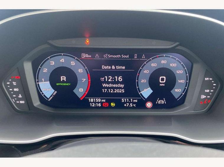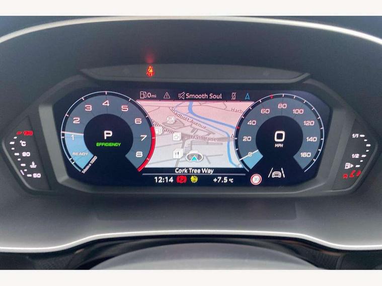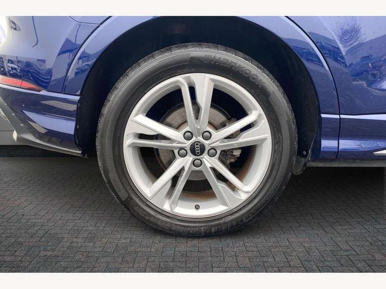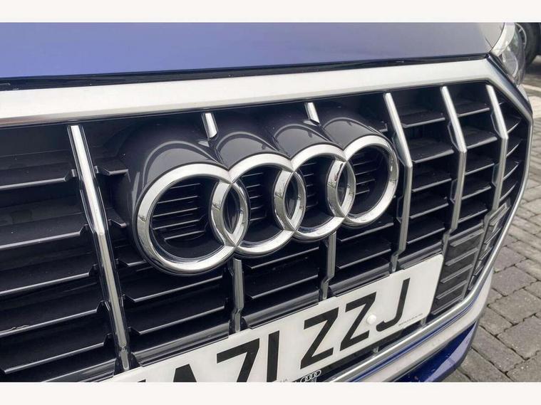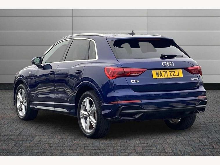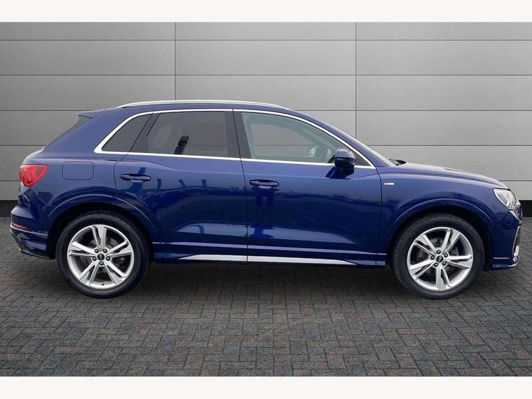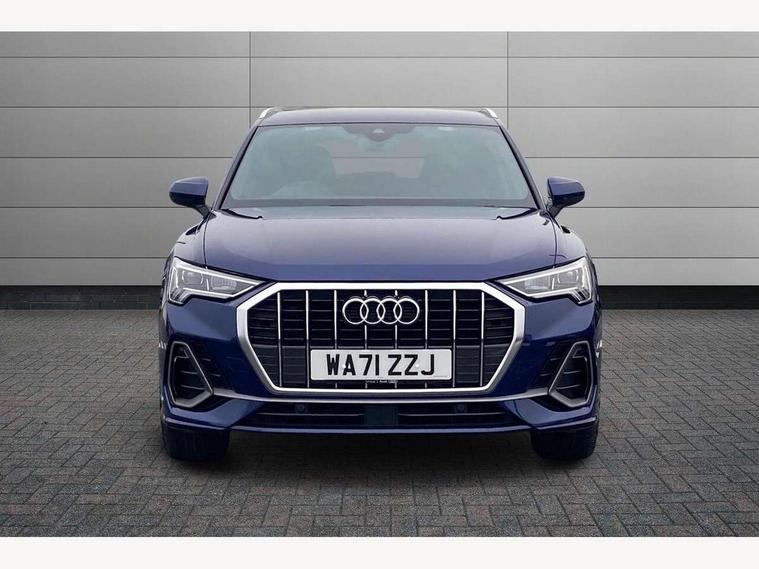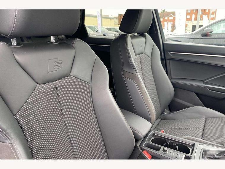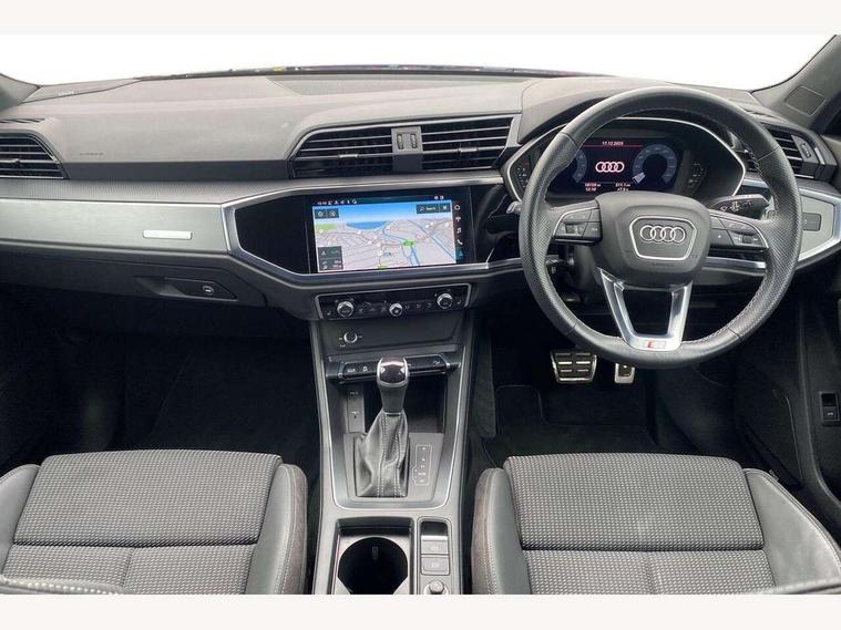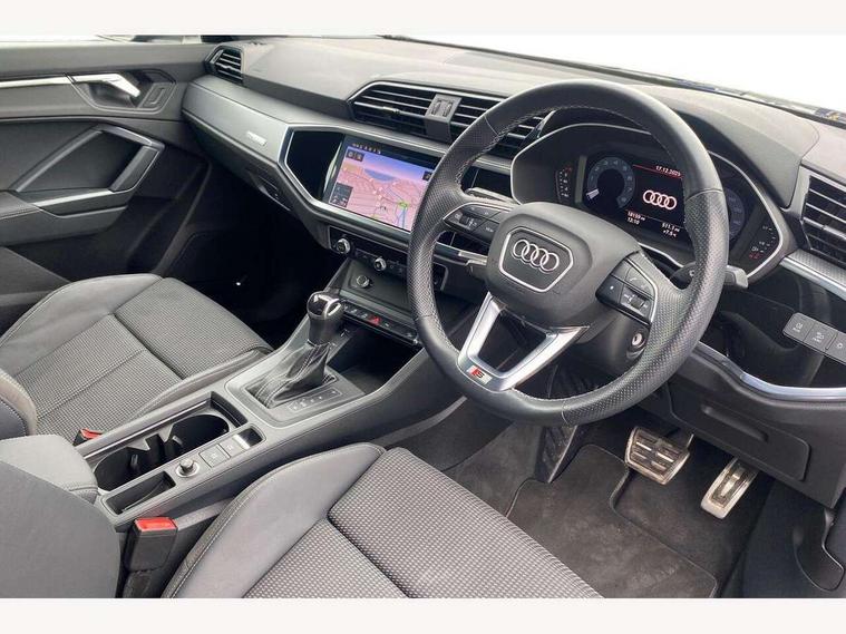 Amazon alexa Integration, Audi connect safety and service (e-call), Audi drive select, Audi lane departure warning, Audi Virtual Cockpit - 10.25" display, Bluetooth interface, Camera based traffic sign recognition, MMI Navigation Plus with high resolution 10.1 inch touchscreen colour display, Power operated tailgate, Progressive steering, Service interval indicator, Smartphone interface includes wireless Apple carplay/Android Auto, Start stop system with recuperation, Voice control system with natural language interaction, 48V Mild hybrid technology, Sports suspension, 2 USB-C ports with charge and data functions, 6 passive loudspeakers, DAB digital radio module, Acoustic windscreen, Aluminium roof rails, Aluminium window trim, Auto dimming frameless rear view mirror, Body coloured bumpers, Electrically folding, adjustable and heated door mirrors with integrated LED side indicators and kerb view function for passenger side, Front and rear electric windows, Front fog lights, Front side air inlets in matt platinum grey, Front spoiler blade in matt platinum grey, Grille vertical bars in aluminium silver/Matt, High gloss black finish B and C pillars, LED headlights with LED daytime running lights and dynamic rear indicator, LED rear lights, Privacy glass dark tinted rear and rear-side windows (from B-pillar backwards), Rain and light sensors, Rear diffuser strip in matt titanium black, S line badges on front wings, S Line front and rear bumpers, Side skirt insert in matt Platinium grey, Silver chrome grille surround, Titanium black radiator grille, 12V socket in rear centre console, 40:20:40 folding with manual adjustment for 60:40 forwards/backwards position and backrest angle, Adjustable rear seat bench/backrest with centre armrest and cupholder, Black cloth headlining, Dual zone electronic climate control, Front and rear black floor mats with contrast stitching in rock grey, Front and rear headrests, Front and rear roof module including reading lights, Front centre armrest, Glove compartment lighting, Height and reach adjustable steering wheel, Illuminated door sill trims with S logo, ISOFIX child seat mounting for front passenger with airbag deactivation and outer rear seat including top tether attachment point for outer rear seats, Luggage compartment light, Manual front seats with height adjustment, Perforated leather gearknob, Stainless steel luggage compartment sill finisher, Stainless steel pedals, Non smoking pack - Q3, 3x3 point rear seatbelts, 6 airbags - Driver, front passenger, curtain and side windows, Audi pre-sense front with pedestrain and cyclist recognition, Electrically operated child locks on rear doors, Electromechanical parking brake, Electronic stabilisation control including ABS, ASR and EDL, Hill descent control, Hill hold assist, Pre sense basic, Seatbelt monitoring, Tyre pressure warning, Warning triangle and first aid kit, Anti theft alarm, Anti theft wheel bolts, Remote central locking, Dark matt brushed aluminium inlay, Detail dashboard around MMI touch colour display in glass look, black with surround in aluminium look, Leatherette door armrest, Tool kit, Tyre repair kit,