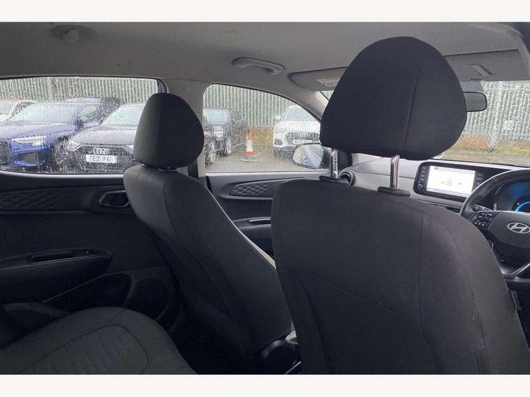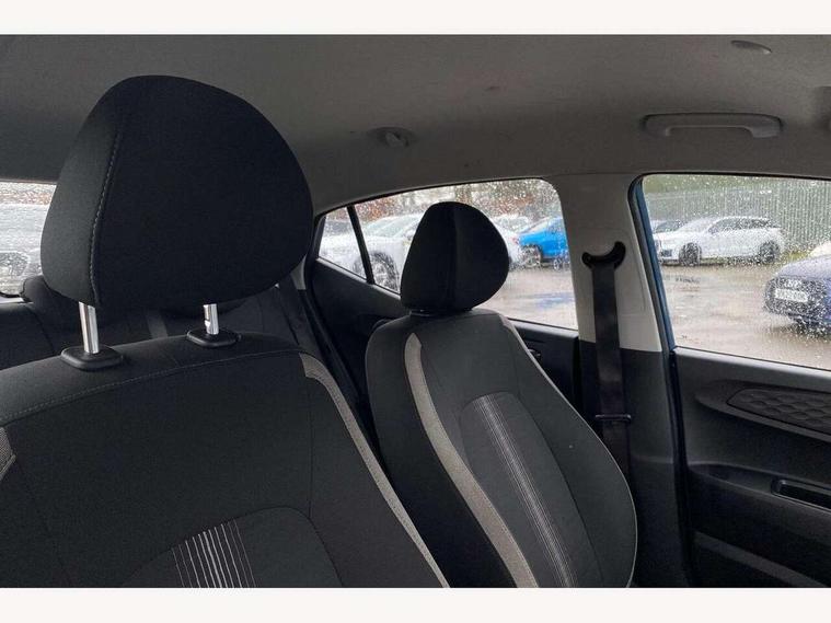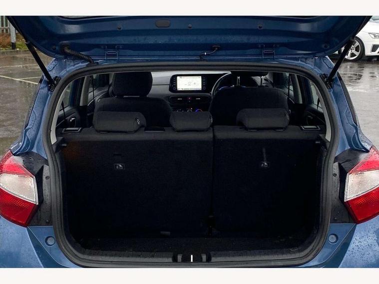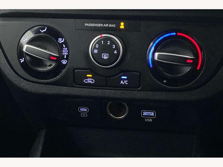 Apple car play/Android Auto, Bluelink mobile remote connectivity, Bluetooth connectivity with voice recognition, Cruise control, Driver attention alert system, eCall emergency call system, Forward Collision-Avoidance Assist (FCA) - Pedestrian/Cyclist, Front USB-C charging and USB-A data, Full-width 4.2" LCD instrument cluster, Intelligent speed limit assist, Lane departure warning system with lane keep assist - LKAS, Lane follow assist, PAS, Rear parking sensors, Rear view camera with guidelines, Roadside assistance, Start/Stop function, Tailgate, Trip computer, 2 front/2 rear speakers, Rear USB-C device charger, Steering wheel audio, phone and cruise controls, 1 speed non intermittent rear windscreen wiper, Black finish on B pillars, Body colour door handles, Body coloured bumpers, Body coloured door mirrors, Electric front windows, Electric rear windows, Electrically adjustable and heated door mirrors, Flat metal emblem, Front grille in matte black, Front intermittent wipers, Halogen daytime running lights, Halogen headlights, Headlights inner with Black Blade design, Heated rear window, High beam assist, Indicator light on door mirrors, Rear roof spoiler with integrated LED brake light, Rear side wing doors, 12v power outlet - front, 3 seat bench in 2nd row, 60/40 split folding flat to floor rear seats, Air conditioning, Auto light control, Bottle holders in front/rear doors + front centre console, Cabin and luggage compartment interior lighting, Cloth upholstery, Driver + passenger vanity mirrors, Driver's seat height adjustment, Driver/passenger sunvisors with ticket holders, Floor mats, Front door pockets, Front Head Restraints - Vertical and Horizontal Adjustment, Glove compartment, Height adjustable steering column, Isofix child seat preparation, Leather multifunction steering wheel, Rear door pockets, Single front passenger seat, Vertical adjustment rear head restraints, 3x3 point rear seatbelts, Airbags - front, front side and curtain airbags, Anti-lock brake system (ABS), Autonomous emergency braking (AEB) with forward collision warning system, Brake assist function, Childproof rear door locks, Electronic stability control, Front and rear seatbelt reminder, Front seatbelt pretensioners, Hill start assist control (HAC), Passenger airbag deactivate switch, Traction control, Tyre pressure monitoring system, Immobiliser, Perimeter alarm, Rear occupant alert, Remote central locking, Second remote key, Speed sensitive auto door locking, 15" Alloy wheels, Tyre repair kit,