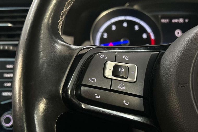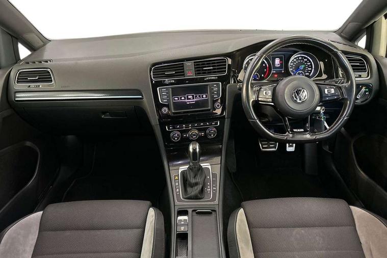 'Lights On' Reminder warning buzzer, ACC - Adaptive cruise control with front assist, forward collision warning, distance monitoring, city emergency brake and speed limiter, Bluetooth Telephone preparation, Brake pad wear indicator warning light, Driver alert system, Driver profile selection, Exterior temperature gauge, Flat tyre indicator, Infotainment system, Instrument cluster in white, Multi function display colour screen, Multifunction computer, Progressive power assisted steering, Rev counter, Trip and service interval display, Ultrasonic front and rear optical and audible parking sensors, Warning buzzer and light for front seatbelts unfastened, Lowered sports suspension, XDS plus electronic differential lock, CD/MP3/WMA, USB and SD card reader, aux-in, Composition media system, DAB Digital radio, MDI with USB/iPod connection cables, Auto dimming rear view mirror, Automatic coming/leaving home lighting function, Automatic headlights, Bi-Xenon headlights and headlight washers with LED daytime running lights, Black rear diffuser, Body colour bumpers, Body colour door handles, Chrome louvres in grille, Dusk sensor + auto driving lights, Electric folding door mirrors with puddle lamps, Electric front windows, Electric rear windows, Electrically adjustable and heated door mirrors, Heated rear windscreen, LED rear lights, Rain sensor, Range adjustable headlights, Rear roof spoiler, Rear windscreen washer and wiper with interval delay, Reverse activated kerb-view adjustment on passenger's door mirror, Twin chrome exhaust tailpipes, Windscreen wipers/ intermittent wipe + 4 position delay, 12V socket in luggage compartment, 3 rear headrests, 3 spoke steering wheel, 60/40 split folding rear seat, Air conditioning - 2 zone electronic climate control, Ambient lighting, Bag hook in luggage compartment, Black headlining, Boot lashing points, Chrome-plated electric mirror adjustment switch surround, Chrome-plated electric window button surround, Courtesy light delay, Cover for storage compartment in centre, Driver/front passenger seat height adjustment, Dust/pollen filter, Foldable front passenger seat backrest, Front + rear carpet mats, Front centre armrest with storage box and rear air vents, Front footwell illumination, Front seat back storage pockets, Gearshift paddles, Grab handles, Height/reach adjust steering wheel, Illuminated door sills, Illuminated vanity mirrors, Isofix preparation for 2 rear child seats, LED reading lights, Load through provision, Lockable, illuminated, cooled glovebox, Luggage compartment cover, Luggage compartment lighting, Multifunction leather steering wheel with leather gear knob/handbrake grip, Passenger underseat drawer, Rear centre armrest with 2 cupholders, Rear cupholder, Stainless steel pedals, Storage box in luggage compartment, Storage compartment in roof console with cover, Storage compartments in doors, Variable boot floor, height adjustable and removable, White adjustable panel illumination, Styling pack - Golf R/R-Line, 3 point height adj front seatbelts + pretensioners, 3 rear 3 point seatbelts, ABS, Automatic post collision braking, Black brake calipers, Child locks on rear doors, Door open warning reflectors, Driver/Front Passenger airbags, Driver/Passenger whiplash optimised head restraints, Drivers knee airbag, Electronic parking brake with auto hold, Electronic tyre pressure monitoring, ESP with EDL + ASR, Front and rear curtain airbags, Front passenger airbag deactivation, Front side airbags, Fuel cut off safety device, Hydraulic Brake Assist (HBA), Pre crash system, Warning triangle and first aid kit holder, Alarm with interior protection, Anti-theft wheel bolts, Electronic engine immobiliser, Remote central locking with 2 remote folding keys, Carbon decorative inserts in dash and door panel, Chrome air vent surrounds, Chrome-plated light switch surround, Gloss black decorative inserts in centre console, Steel space saver spare wheel,