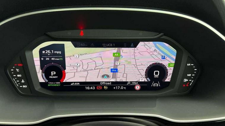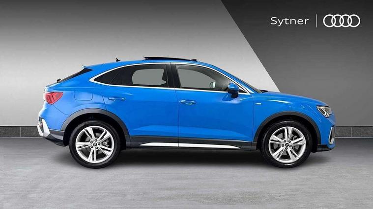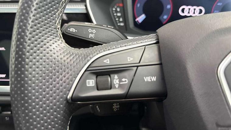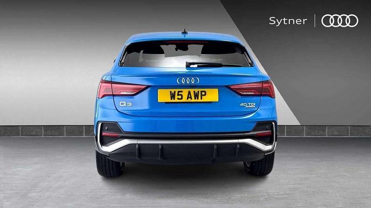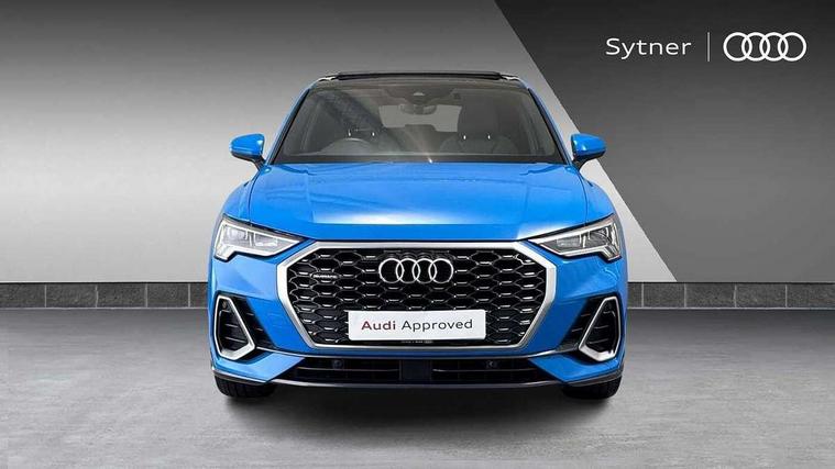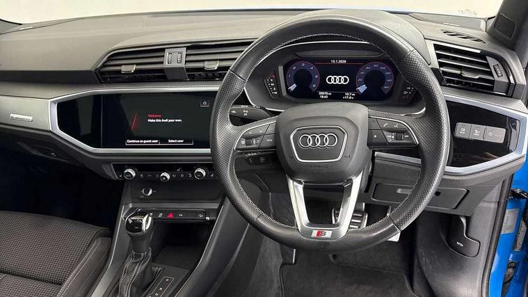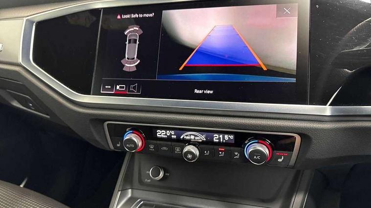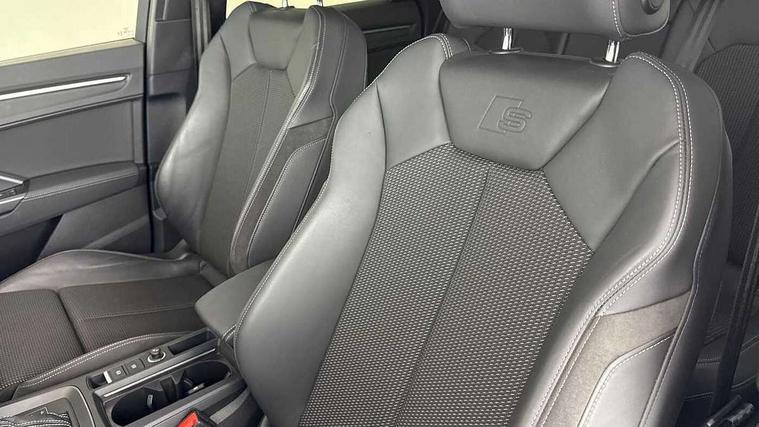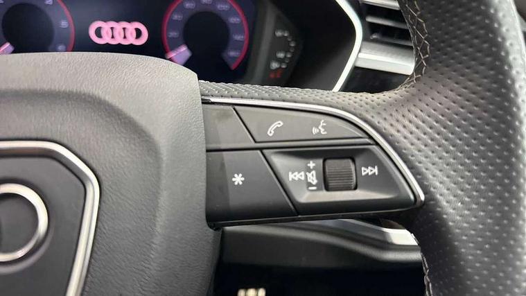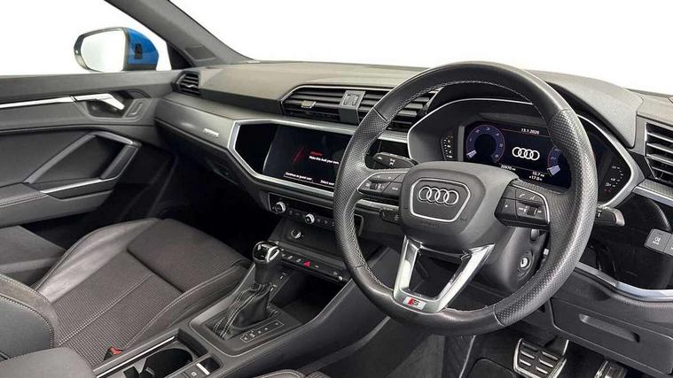 Audi connect safety and service (e-call), Audi drive select, Audi lane departure warning, Audi smartphone interface includes wireless Apple carplay/Android Auto, Audi Virtual Cockpit - 10.25" display, Bluetooth interface, Camera based traffic sign recognition, MMI Navigation Plus with high resolution 10.1 inch touchscreen colour display, Power operated tailgate, Progressive steering, Service interval indicator, Start stop system with recuperation, Voice control system with natural language interaction, Diesel particulate filter, Sports suspension, 2 USB-C ports with charge and data functions, 6 passive loudspeakers, DAB digital radio module, Acoustic windscreen, Aluminium window trim, Auto dimming frameless rear view mirror, Diffuser grille in grained matt black, Diffuser trim in selenite silver, Electrically folding, adjustable and heated door mirrors with integrated LED side indicators and kerb view function for passenger side, Front and rear electric windows, Front fog lights, Front side air inlets in selenite silver, Front underbody protection in manhattan grey paint finish, Grille surround in aluminium silver matt, High gloss black finish B and C pillars, LED headlights with LED daytime running lights and dynamic rear indicator, LED rear lights, Privacy glass dark tinted rear and rear-side windows (from B-pillar backwards), Radiator grille in titanium black with inlay in matt aluminium silver, Rain and light sensors, Rear underbody protection in matt black, S line badges on front wings, Side skirt insert in matt Platinium grey, 12V socket in rear centre console, 40:20:40 folding with manual adjustment for 60:40 forwards/backwards position and backrest angle, Adjustable rear seat bench/backrest with centre armrest and cupholder, Black cloth headlining, Dual zone electronic climate control, Front and rear black floor mats with contrast stitching, Front and rear headrests, Front and rear roof module including reading lights, Front centre armrest, Glove compartment lighting, Height and reach adjustable steering wheel, Illuminated door sill trims with S logo, ISOFIX child seat mounting for front passenger with airbag deactivation and outer rear seat including top tether attachment point for outer rear seats, Luggage compartment light, Manual front seats with height adjustment, Perforated leather gearknob, Stainless steel luggage compartment sill finisher, Stainless steel pedals, Non smoking pack - Q3, 3x3 point rear seatbelts, 6 airbags - Driver, front passenger, curtain and side windows, Audi pre-sense front with pedestrain and cyclist recognition, Electrically operated child locks on rear doors, Electromechanical parking brake, Electronic stabilisation control including ABS, ASR and EDL, Hill descent control, Hill hold assist, Pre sense basic, Seatbelt monitoring, Tyre pressure warning, Warning triangle and first aid kit, Anti theft alarm, Anti theft wheel bolts, Remote central locking, Black dashboard, Dark matt brushed aluminium inlay, Detail dashboard around MMI touch colour display in glass look, black with surround in aluminium look, Leatherette door armrest,
