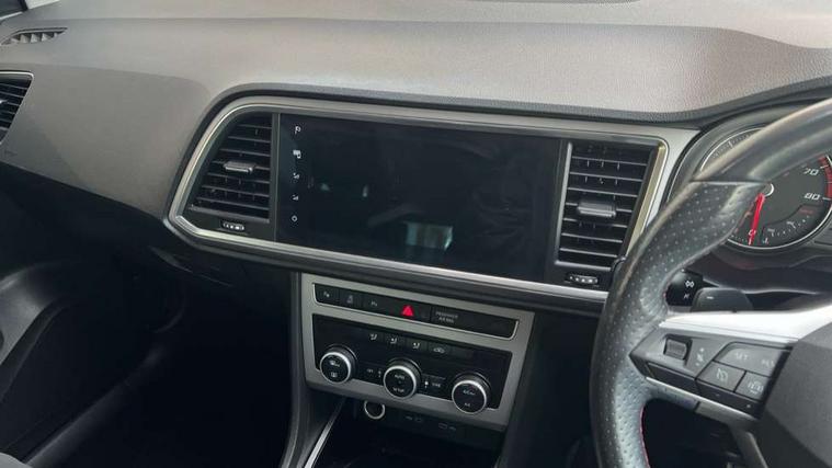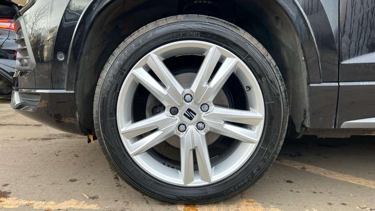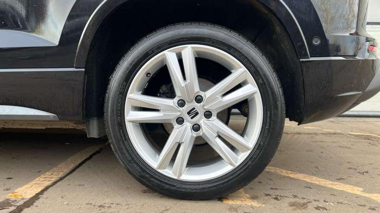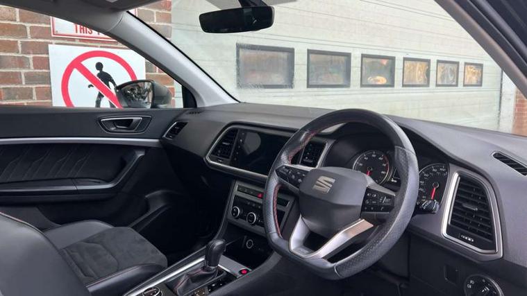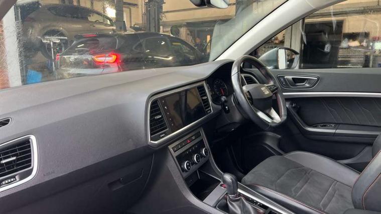 Cruise control system with speed limiter, Outside temperature gauge, Progressive power assisted steering, SEAT drive profile with driving experience button - Normal, Sport, Eco and Individual mode, gearshift, steering and throttle response, Self parking functionality (includes front and rear parking sensors), Trip computer, Wireless full link smartphone integration, Wireless phone charger, Steering wheel mounted audio/phone controls, Body colour bumpers, Body coloured wheel arch surrounds, Chrome roof rails, Chrome side window trim, Cosmo grey front grille frame, Dark tinted rear windows, Daytime running lights, Door mirrors with welcome light silhouette, Dynamic headlight range control with self adjusting whilst driving, Electric adjustable/heated/folding door mirrors, Front and rear electric windows, Full LED headlamps with lens and LED front fog lamps with cornering function, Illuminated aluminium front door sill, LED rear tail lights with dynamic indicators, Rear fog lights, Rear spoiler, Rear wash/wipe, Simulated exhaust pipes in chrome frame, 12V socket in front, 60/40 split folding rear seat, Aluminium pedals, Dual zone climate control, Front and rear head restraints, Front centre armrest, Front seat back storage pockets, Height adjustable driver and passenger seat with lumbar adjustment, ISOFIX points in outer rear seats with top tether anchorage points, Leather steering wheel and gear knob, Microsuede upholstery with front sports seats, Rear armrest and easy back seat release mechanism from boot, Steering wheel mounted gearshift paddles, Storage compartment under driver's seat, Convenience pack - Ateca, Interior lighting pack - Ateca, Navigation system pack with DAB - Ateca, 3x3 point rear seatbelts, ABS, Traction control system (TCS), Electronic stability control (ESC) and Electronic differential lock system (XDS), Airbags - Driver and front passenger airbag with deactivation, front side, two curtain and driver's knee airbags, Electric parking brake with auto hold function, Front and rear seatbelt reminder, Front assist with autonomous emergency braking, Hill hold control, Tiredness recognition system, Traction control, Tyre pressure monitoring system, Alarm, Keyless entry, Locking wheel bolts, Chrome interior detailing, 18" Brillaint silver alloy wheels,