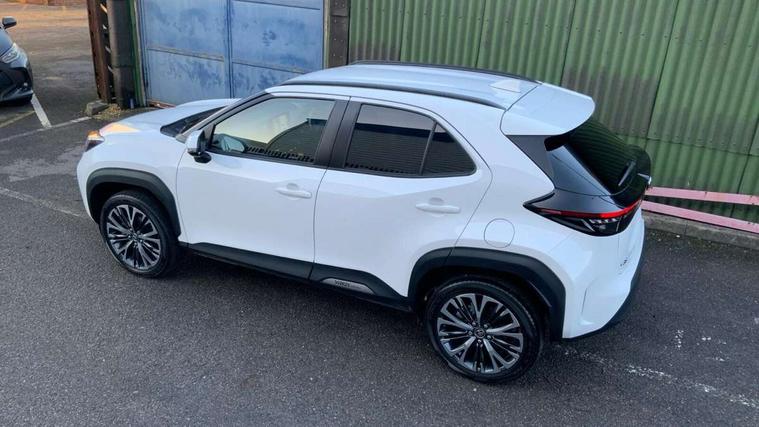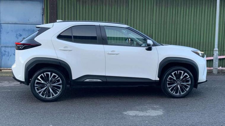 10.5" Multimedia display screen, 10.5" Toyota smart connect+ with navi multimedia system with wireless Smartphone integration incl Apple CarPlay, 360 degree panoramic view monitor, 7" Multi information display screen, Adaptive cruise control, multi info switches on steering wheel, Adjustable speed limiter, Advanced parking assist, Blind spot monitoring, Bluetooth connectivity, Color multi-information display, Digital speedometer, Digital tachometer, Drive mode selector, Driver attention alert system, Dynamic guide lines on reversing camera, eCall emergency system, Electric power steering, Emergency driving stop system, Full range intelligent adaptive cruise control, Hybrid system indicator, Intelligent front and rear parking sensors with clearance sonar and automatic braking, Intersection turn assist, Key reminder warning, Lane change assist, Lane departure warning, Lane trace assist, My T Connected services, Power tailgate, Pre-collision system enhanced with emergency steering assist, Rear cross traffic alert with brake assist, Remote boot door release in cabin, Road sign assist - RSA, Safe exit assist, Telephone switch on steering wheel, Wireless Mobile Phone Charger, Steering assisted vehicle stability control, 6 speakers, DAB Digital radio, Front USB Type-C connector, Front USB-C device charger, 3rd brake light, Acoustic windscreen glass, Anti-jam protection on power windows, Auto dimming rear view mirror, Auto high beam [AHB] with on/off switch, Auto intermittent windscreen wipers, Automatic headlights, Automatic headlights cut-off, Automatically retractable door mirrors, Black door moulding, Black lower front grille, Black protection moulding on side doors, Black roof rails, Black wheel arch mouldings, Body colour door handles, Body colour front bumper, Body colour rear bumper, Electric adjustable heated door mirrors, Follow me home headlights, Front and rear electric windows with auto up/down function, Gloss black upper front grille, Headlight cut off reminder, Indicators integrated on door mirrors, Intermittent rear wiper, Kick activated power back door, LED daytime running lights guide, LED front fog lights, LED front light guide, LED Indicators, LED projector headlights, LED rear lights with sequential indicators, Manual headlight levelling, Meshed upper front grille, Noise reduction layer on windscreen, Privacy glass, Rain sensor, Rear side wing doors, Rear spoiler, Rear window defogger, Shark fin antenna, 12v power outlet - front, 12V power point in boot, 2x Rear coat hooks, 3 seat bench in 2nd row, 3 spoke leather steering wheel, 40/60 split deckboard, 40:20:40 split folding rear bench seat, Adjustable rear headrests, Adjustable speed limiter switch on steering wheel, Boot light, Central armrest, Driver and front passenger personal lights, Driver and front passenger Whiplash injury Lesseing seats, Driver and passenger seatback pockets, Dual zone automatic air conditioning, Fabric door trim, Front console box, Front cup holders, Front door pockets, Front head restraints, Front sport seats, Front/rear assist grips, Gear shift indicator, Grey roof lining, Heated driver and passenger seats, Heated steering wheel, Height adjustable driver's seat, Height adjustable front passenger seat, Hooks for luggage holding belts, ISOFIX child restraint system, Lane departure alert switch on steering control, Leather gearshift, LED centre room light, Light on driver and passenger sun visor, Manual telescopic and tilting steering wheel, Mirror on driver and passenger sun visor, Nanoe-X air purifier, Partial synthetic leather upholstery, Pollen air filter, Power adjustable lumbar support on driver seat, Rear cup holders, Rear door pockets, Rear head restraints, Remote air-conditioning system, Single compartment glovebox, Single front passenger seat, Soft tonneau cover, Storage box under boot floor, Voice recognition switch on steering wheel, White ambient lighting in centre console, White ambient lighting in footwell, White ambient lighting on front doors, Yaris cross floor mats, Tech pack - Yaris Cross, 3x3 point rear seat belts, ABS+EBD+Brake assist, Downhill Assist Control (DAC), Driver and passenger central airbags, Driver and passenger front airbags, Driver and passenger side airbags, Electronic parking brake, Emergency brake light system (EBS), Front seat belt reminder, Hill start assist control (HAC), Passenger airbag on/off switch, Pre-collision system with pedestrian and cyclist detection, Rear door child safety locks, Rear passenger side airbags, Rear seat belt reminder, Traction control, Tyre pressure warning system, Immobiliser, Intrusion alarm, Keyless smart entry with push button start, Power door locks, Power passenger window lock, Remote door lock, Gloss black side air vent surrounds, Tyre repair kit,