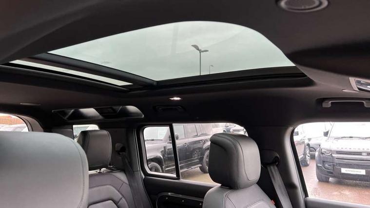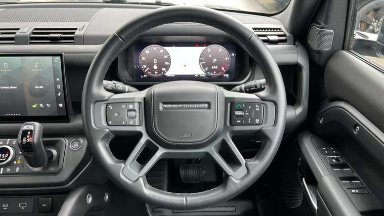 11.4" touchscreen, 360 degree parking aid, 3D Surround Camera with 360 View, 180 Rear View, Front Traffic Detection, Forward Vehicle Guidance, Tow Hitch Assist and clear sight Ground View, Adaptive cruise control, Android Auto, Apple CarPlay, Assisted tailgate with soft close, Blind spot assist, Bluetooth system, Brake pad wear indicator, Clear exit monitor, Connected navigation pro, Driver condition monitor, Electric power assisted steering (EPAS), Interactive driver display, Lane keep assist, Push button start, Rear collision monitor, Rear traffic monitor, Traffic sign recognition with adaptive speed limiter, Trip computer, Wade Sensing, 8 speed automatic transmission, All wheel drive system, Twin speed transfer box, DAB Radio (Digital Audio Broadcasting), Pivi pro connected, Automatic headlight levelling, Automatic headlights, Black exposed rear recovery eyes, Centre high mounted stop light, ClearSight interior rear view mirror, Electric heated/power fold door mirrors with approach lights and auto dimming driver side, Electric windows with one touch open/close and anti-trap, Follow me home lighting, Front fog lights, Heated rear window with timer, Heated windscreen, LED tail lights, Privacy glass, Puddle lights, Rain sensing windscreen wipers, Rear fog lights, Rear side wing doors, Rear wiper, Side hinged tailgate, Trailer stability assist, X-Dynamic badge, 12V power socket in loadspace, 14 way heated and cooled electric adjustable memory front seats with 4 way manual headrests, 3 seat bench in 2nd row, Alpine lights, Configurable cabin lighting, Durable rubber cabin flooring, Durable rubber loadspace flooring, Electric reach + rake adjustable steering column, Extended leather upgrade, Footwell lights, Front passenger isofix child seat attachment, Heated steering wheel, Loadspace cover, Loadspace Hook, Multifunction steering wheel, Overhead stowage for sunglasses, Premium cabin lighting, Rear headrests, Rear ISOFIX, Rear reading lights, Single front passenger seat, Standard seat configuration, Storage glovebox, Sunvisors with illuminated vanity mirrors, Online pack with data plan - Defender, 5 x 3 point seatbelts, ABS, Brake hold function, Cornering brake control (CBC), Customer configurable autolock, DSC - Dynamic Stability Control, EBD - Electronic brakeforce distribution, Electric parking brake (EPB), Emergency brake assist, Emergency braking, ESP + traction control, Front airbags with passenger seat occupant detector, HDC - Hill descent control, Hill launch assist, Low traction launch, Power operated child locks, Remote for (e-Call, Optimised assistance call, InControl app, Climate, beep and flash and door), RSC - Roll stability control, Seat belt reminder, TPMS (Tyre pressure monitoring system), Alarm, Immobiliser, Intrusion sensor, Keyless entry, Locking wheel nuts,