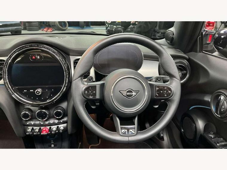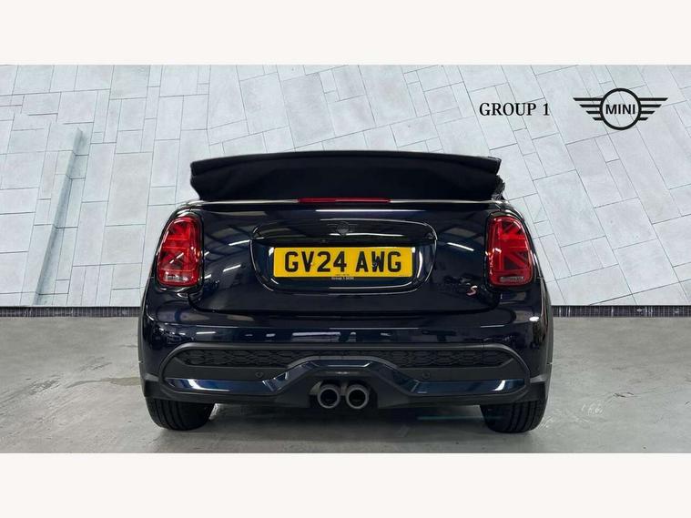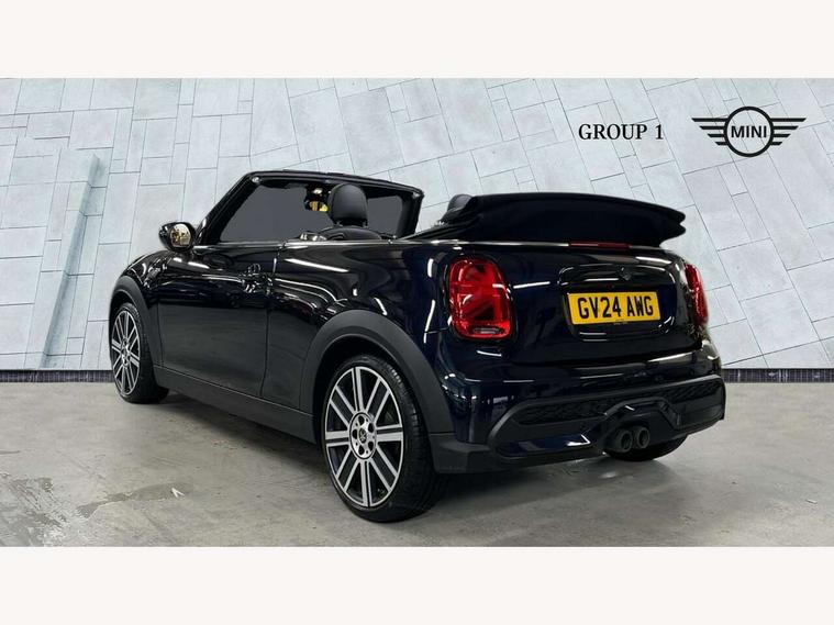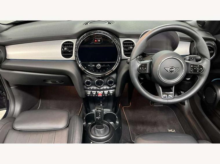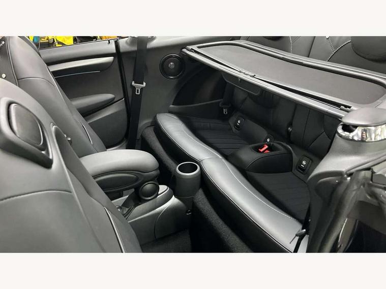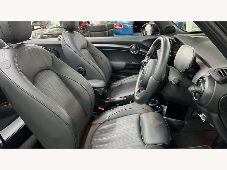 Automatic start/stop function with brake energy recuperation, Compatible mobile phone bluetooth with audio streaming, Electro-mechanical speed dependant steering assistance, Instrument cluster, MINI Driving Modes - centre toggle switch to control driving setting (sport, mid and green), Mini E-call, MINI TeleServices, On board computer, Rear park distance control, Service interval indicator, Double Vanos system, Fully variable valve control, High precision injection, Performance Control, Steptronic sport transmission with double clutch and steering wheel paddles, FM tuner and DAB digital radio, Automatic headlight activation switch, Bonnet scoop, Chrome plated fuel cap, Dynamic brake lights, Electric windows, Fully electric black softtop with integrated sunroof functionality, Heated rear window, Heated windscreen washer jets, Metal door sill strips with Cooper S imprint, Model logo Cooper S on right of tailgate, Radiator grille bars, tailgate handle, lower front grille grating, rear central fog light in chrome, Rain sensor window wipers, Rear fog lights, Rear LED lights with union jack design, Side scuttle panel with integrated indicator, Sun/heat protection glass, Two central exhaust tailpipes with chrome finisher, White indicator lenses, 12V Accessory socket in centre console, 4 lashing eyes in luggage compartment, 50/50 split folding rear seats, Air vents, gear lever base, speakers in doors, door handles in chrome, Chrome interior highlights, Cupholders, Easy Load boot handles, Front and rear head restraints, Front and rear isofix with front passenger airbag deactivation, Front seatback storage pockets, Glove compartment, Height and length steering column adjustment, Interior lighting with 12 basic colours selectable via toggle switch in roof, Leather gearshift lever and handbrake gaiters, LED reading lights, vanity mirror lights, front foot well light and spotlight on front seats, Mechanical seat adjustment, driver seat height adjust, forward/back and front seats backrest, Mini logo projection on floor from drivers exterior mirror, MINI Yours fine walk nappa leather steering wheel with contrast stitching in silver and MINI Yours badge, Multifunction steering wheel, Storage compartments in doors, Sunvisors with vanity mirrors, Convertible pack with comfort access - Mini Convertible, 3 point seatbelts on all four seats, 6 Airbags - front, side and seat belt tensioners, Active rollover protection, Anti-lock braking system (ABS), DSC - Dynamic Stability Control, Front and rear disc brakes, Hill start assist, Two tone horn, Tyre pressure monitoring system, Alarm system with tilt sensor, monitoring doors, bonnet interior and tailgate, Electronic vehicle immobiliser, Keyless Go, Chrome line interior, Tool kit,