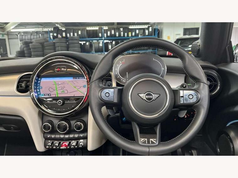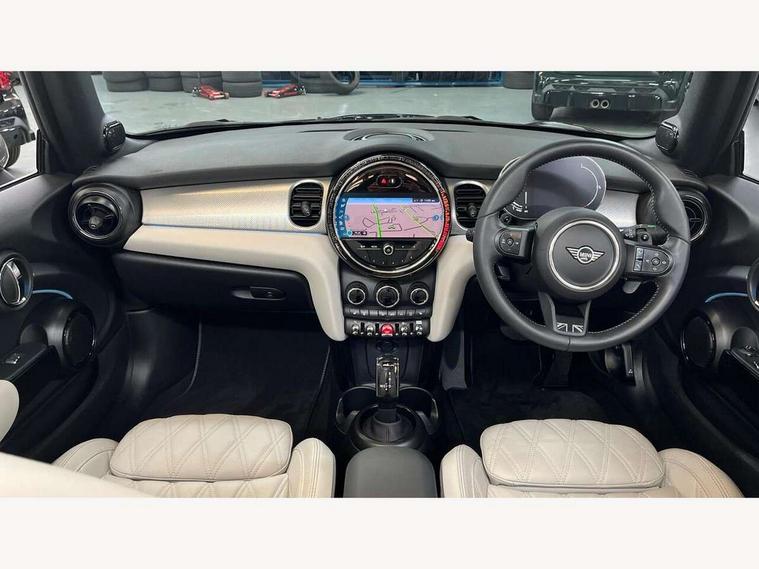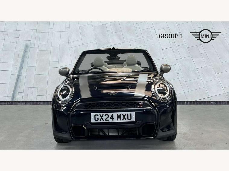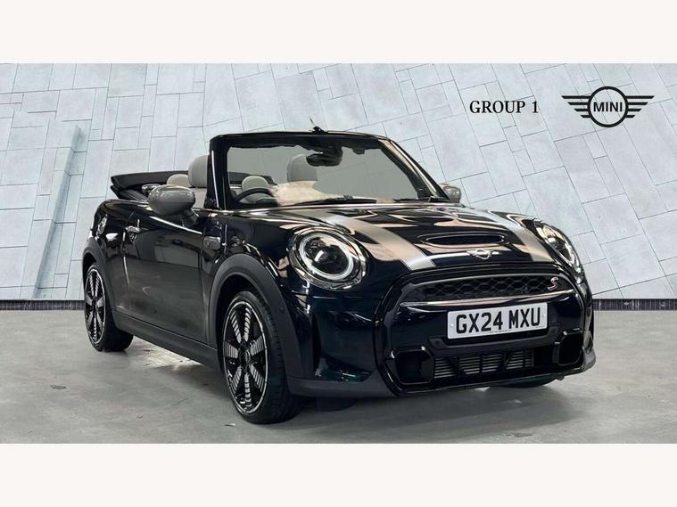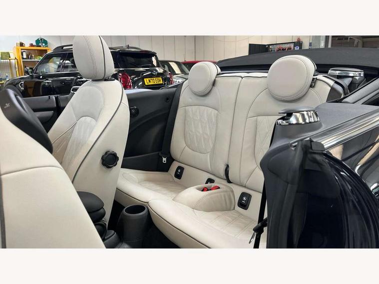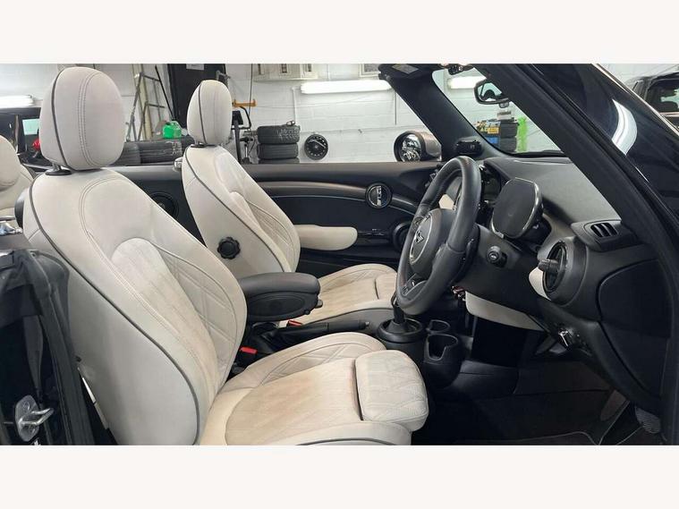 Automatic start/stop function with brake energy recuperation, Compatible mobile phone bluetooth with audio streaming, Electro-mechanical speed dependant steering assistance, Instrument cluster, MINI Driving Modes - centre toggle switch to control driving setting (sport, mid and green), Mini E-call, MINI TeleServices, On board computer, Rear park distance control, Service interval indicator, Double Vanos system, Fully variable valve control, High precision injection, Performance Control, Steptronic sport transmission with double clutch and steering wheel paddles, FM tuner and DAB digital radio, Automatic headlight activation switch, Bonnet scoop, Chrome plated fuel cap, Dynamic brake lights, Electric windows, Fully electric black softtop with integrated sunroof functionality, Heated rear window, Heated windscreen washer jets, Metal door sill strips with Cooper S imprint, Model logo Cooper S on right of tailgate, Radiator grille bars, tailgate handle, lower front grille grating, rear central fog light in chrome, Rain sensor window wipers, Rear fog lights, Rear LED lights with union jack design, Side scuttle panel with integrated indicator, Sun/heat protection glass, Two central exhaust tailpipes with chrome finisher, White indicator lenses, 12V Accessory socket in centre console, 4 lashing eyes in luggage compartment, 50/50 split folding rear seats, Air vents, gear lever base, speakers in doors, door handles in chrome, Chrome interior highlights, Cupholders, Easy Load boot handles, Front and rear head restraints, Front and rear isofix with front passenger airbag deactivation, Front seatback storage pockets, Glove compartment, Height and length steering column adjustment, Interior lighting with 12 basic colours selectable via toggle switch in roof, Leather gearshift lever and handbrake gaiters, LED reading lights, vanity mirror lights, front foot well light and spotlight on front seats, Mechanical seat adjustment, driver seat height adjust, forward/back and front seats backrest, Mini logo projection on floor from drivers exterior mirror, MINI Yours fine walk nappa leather steering wheel with contrast stitching in silver and MINI Yours badge, Multifunction steering wheel, Storage compartments in doors, Sunvisors with vanity mirrors, Convertible pack with comfort access - Mini Convertible, 3 point seatbelts on all four seats, 6 Airbags - front, side and seat belt tensioners, Active rollover protection, Anti-lock braking system (ABS), DSC - Dynamic Stability Control, Front and rear disc brakes, Hill start assist, Two tone horn, Tyre pressure monitoring system, Alarm system with tilt sensor, monitoring doors, bonnet interior and tailgate, Electronic vehicle immobiliser, Keyless Go, Chrome line interior, Tool kit,