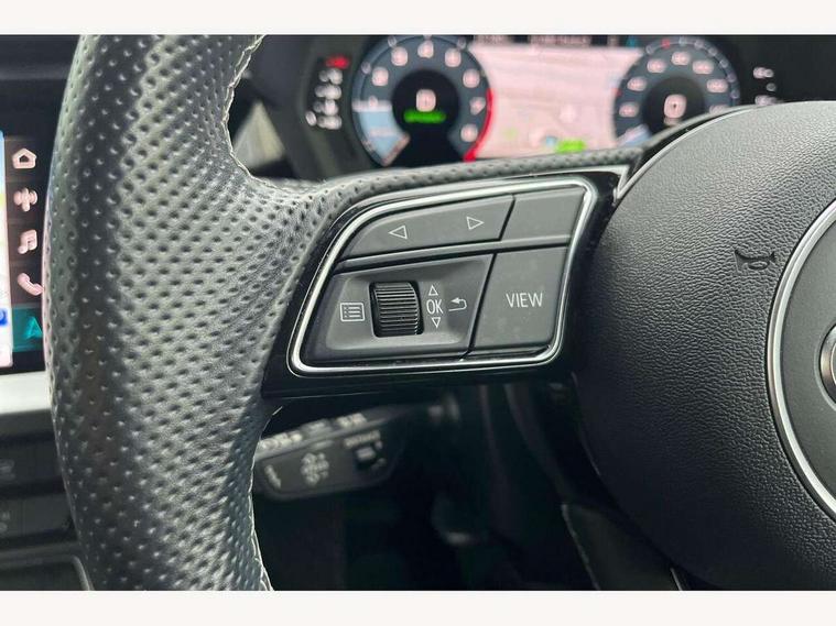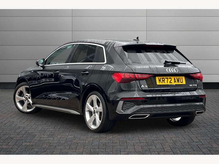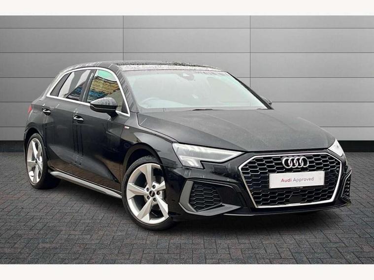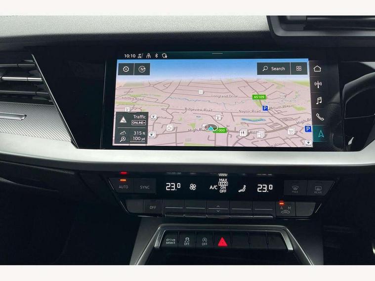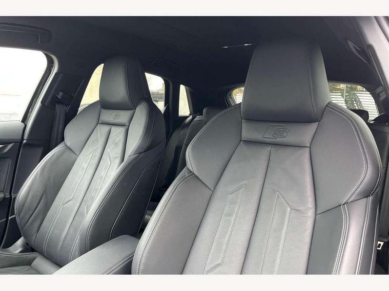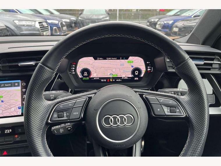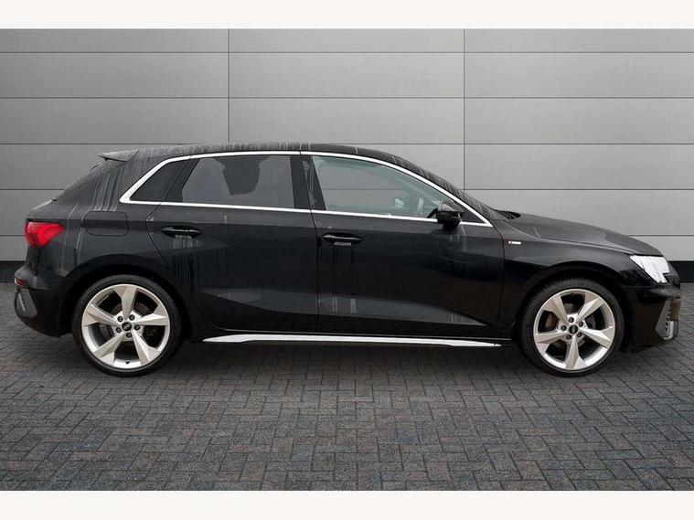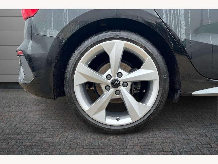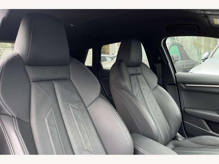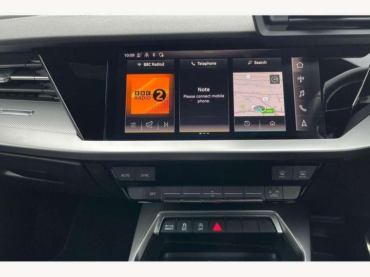 Audi drive select (Auto, Comfort, Dynamic, Efficiency and Individual), Audi smartphone interface, Audi Virtual Cockpit - 10.25" digital and colour instrument cluster, Automatic start/stop system with recuperation, Bluetooth interface, Collision avoidance assistant, e-Call (emergency call), Electromechanical power speed sensitive steering, Lane departure warning system, MMI Navigation Plus with high resolution 10.1" colour touch screen display, Service indicator, Trip computer, Voice control system with natural language interaction, Sports suspension, 2xUSB-C connection with data and charging functions, 6 passive loudspeakers, DAB Digital radio, 3rd brake light, Acoustic glass windscreen, Aluminium window trim, Auto dimming frameless rear view mirror, Body colour exterior mirrors, Electrically adjustable/heated/folding/dimming door mirrors with kerb view includes integrated LED indications + kerb view function for passenger side, Front electric windows, Illuminated aluminium inserts front door sills with S logo, LED daytime running lights, LED headlights with LED rear lights and dynamic rear indicators, Light and rain sensors, Privacy glass - dark tinted rear window, rear door and side windows, Rear electric windows, Rear side air outlets in grained matt black, Rear side wing doors, Rear wiper, S line bumpers, S roof spoiler, 12V socket and storage compartment in front centre console, 3 seat bench in 2nd row, 3 spoke leather multifunction steering wheel with paddle shift, 40/20/40 split folding rear seat bench with cupholder, Black cloth headlining, Dual zone electronic climate control, Front and rear centre armrest in leather, Front and rear headrests, Front/rear floor mats, Height and reach adjustable steering wheel, Illuminated vanity mirror, Interior lighting - glove compartment light and right hand side, Luggage compartment floor covering, Manual boot compartment lid, Manually adjustable front seats, Seat side bolsters, Single front passenger seat, Stainless steel pedals and front footrest in black, Twin leather upholstery with front sports seats S embossed logo, Aluminium interior elements pack - A3 Sportback, LED interior lighting pack - A3 Sportback, S line styling pack - A3 Sportback, 3x3 point rear seat belts, Audi pre sense front, Driver and front passenger airbag with passenger airbag deactivation, Electronic Stabilisation Control (ESC) including ABS, ASR and EDL, First aid kit with warning triangle and 2 safety vests, Front side airbags with head airbags and interaction airbag, Pre-sense front with pedestrian and cyclist detection, Seatbelt monitoring, Tyre pressure loss indicator, Anti theft alarm, Anti-theft wheel bolts, Electronically operated child lock, Immobiliser, Remote control central locking, Accent surfaces in the dashboard and centre console in platinum grey silk effect paint finish, Dark spectrum aluminium inlays,