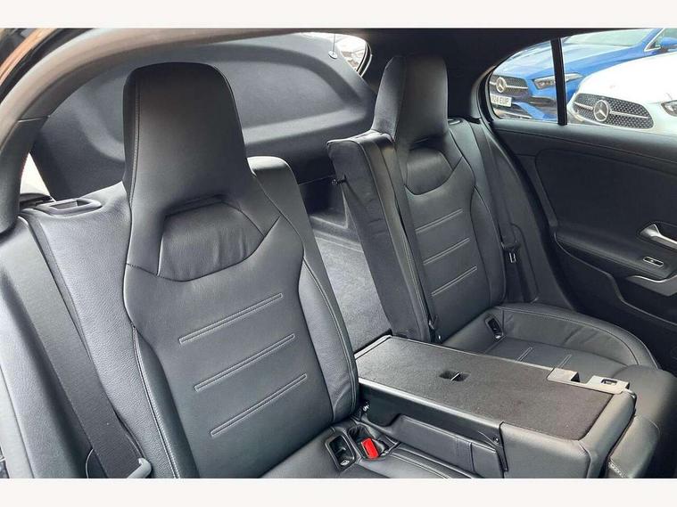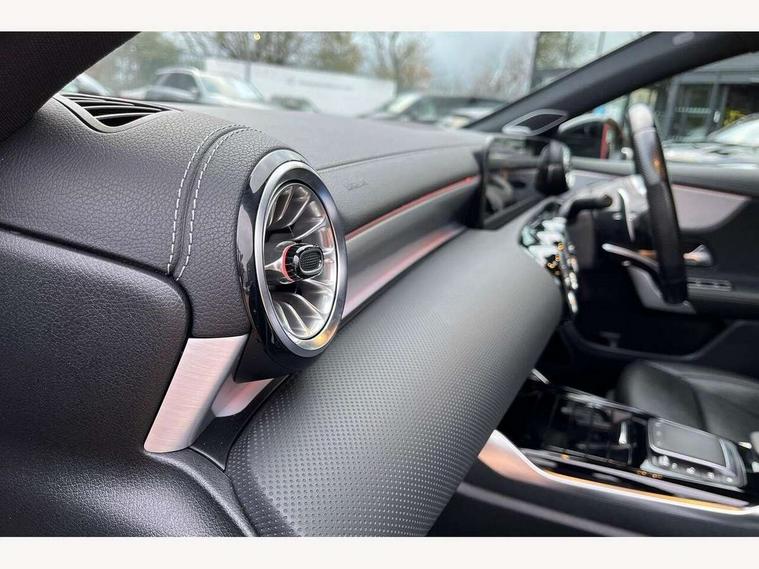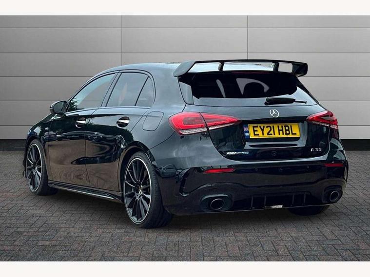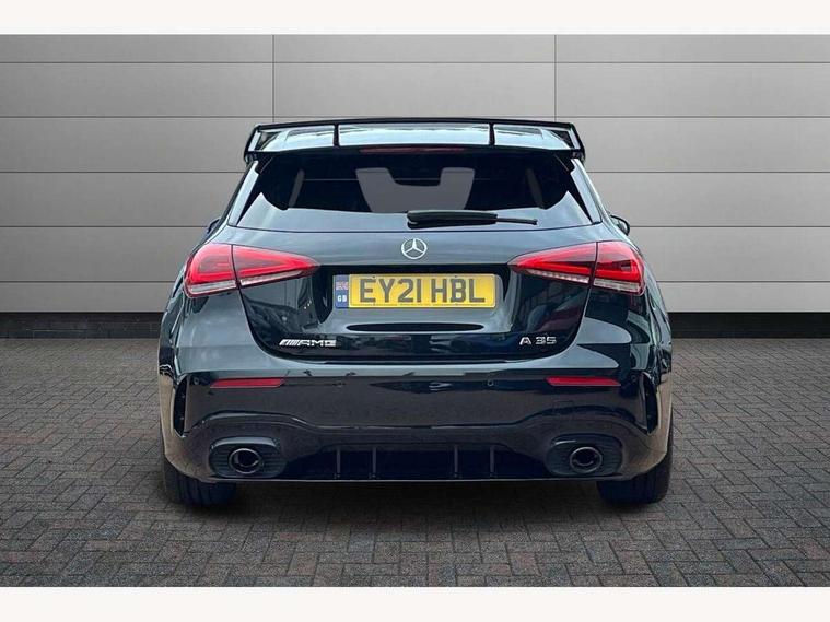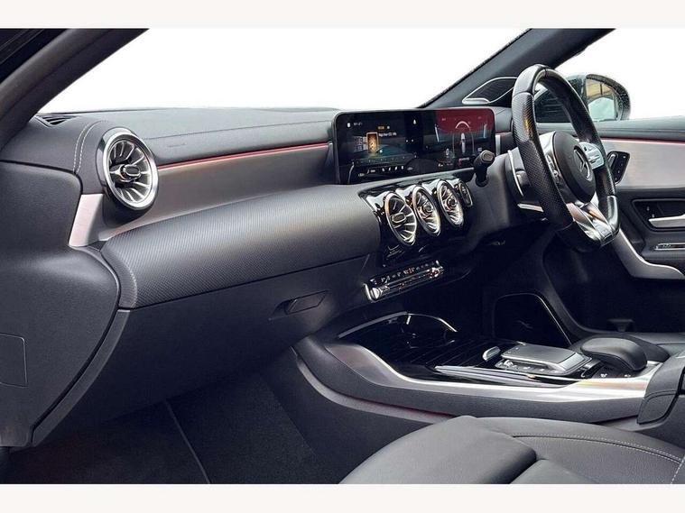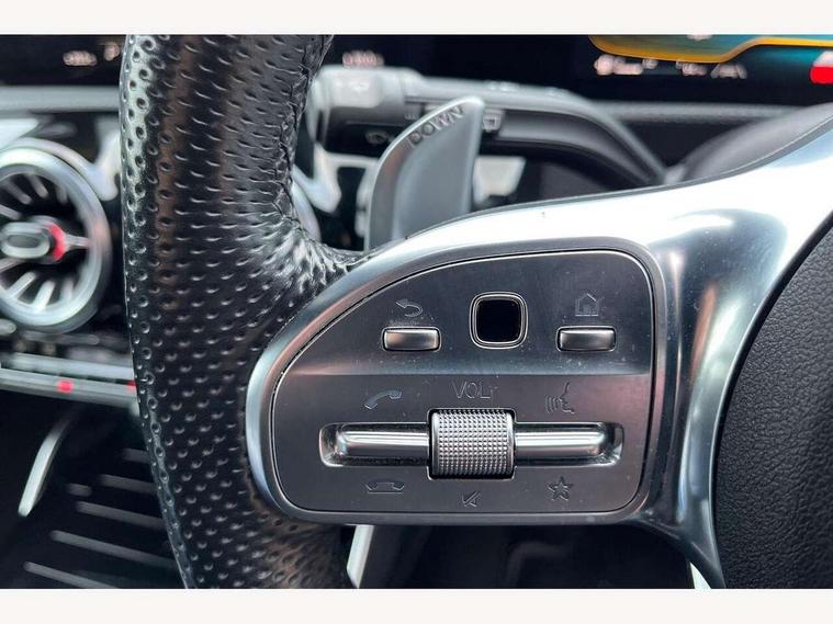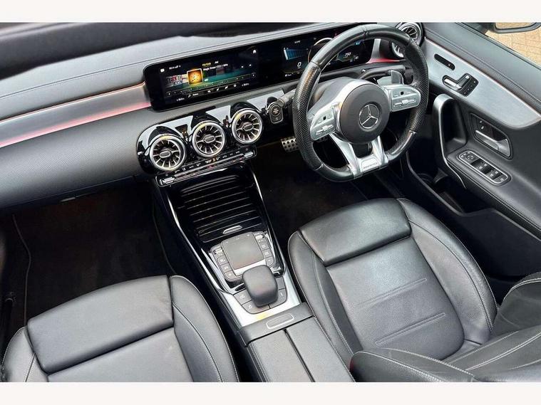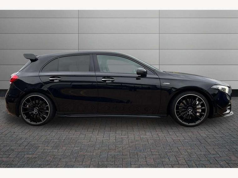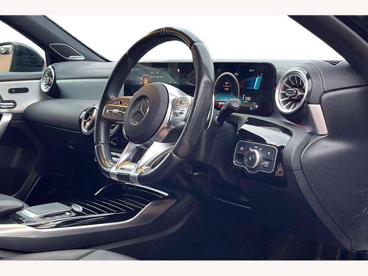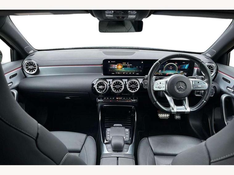 10.25" Digital instrument cluster display screen, 10.25" media display, 180 degree rear view camera with parking guidelines, Active parking assist with visual and audible warning of detected obstacles, Attention assist, Brake pad wear indicator warning light, Car wash mode, Direct steering, Dual bluetooth interfaces, DYNAMIC SELECT with driving programs (Slippery, Comfort, Sport, Sport+ and Individual), ECO start/stop function, Fluid level warning indicator for fuel, oil, coolant and washer fluid, Hard-disk navigation, Hey Mercedes Voice activation, Lamp failure indicator, MBUX augmented reality for navigation, Mercedes me connect including emergency call system, accident recovery, breakdown and maintenance management, Mercedes me remote services, Outside temperature gauge, Owners manual in English, Pre-installation for private car sharing, Preinstallation for Mercedes Benz link, Service indicator (ASSYST), Smartphone integration with Apple CarPlay and Android auto, Traffic sign assist, Trip computer, Ultrasonic sensors positioned in the front and rear bumpers, Wireless charging, Rear axle multi-link, 2 USB ports (type C) in rear stowage compartment and one in front of center console, Burmester surround sound system - 590W, DAB Digital radio, MBUX multimedia system with DAB digital radio and touchpad including satellite navigation, 4 Electric Front and Rear windows, Adaptive brake lights, AMG bodystyling - Front apron with splitter in chrome, rear apron with chrome trim and chrome visible trim elements in tailpipe, AMG Front apron with flics as air deflector elements on the outer air intakes, AMG radiator grille with twin blade lamella and AMG Lettering, AMG Rear apron with specific diffuser look with four vertical fins and two round chrome plated tailpipe trim elements with a diameter of 90 mm, AMG spoiler lip on roof, AMG Sports exhaust system with two round tailpipes measuring 90 mm in diameter attached in rear apron, AMG lettering plus ribbing on the inside of the, Black weather strip, Body colour bumpers, Body colour door handles, Body colour side skirt, Electric adjustable and heated door mirrors with integrated LED side indicators, Front wings wheel arches with TURBO 4MATIC lettering, Headlamp assist automatic headlamp activation, Heated glass rear windscreen + timer control, High gloss black beltline, LED high performance headlamps with integrated LED daytime running lights, LED tail lamp, LED third brake light, Multibeam LED with adaptive highbeam assist plus, Panoramic sliding sunroof, Privacy glass, Radio aerial, Rain sensing windscreen wipers with two sensitivity settings, Rear fog lights, Rear wiper, Trim elements on louvres in outer air inlets in silver chrome, Wider wheel arches for AMG wheels, Window line trim strip in high gloss black, 40:20:40 split folding rear seats, AMG Performance steering wheel in nappa leather, Auto Mercedes-Benz child seat recognition sensor, Black air vents with surround in silver chrome, Black roof lining, Brushed stainless steel sports pedals with rubber studs, Controller on centre console with chrome surround, Electrically adjustable front memory seats including lumbar support, Floor mats with stitched edging and AMG lettering, Front centre armrest with storage compartment, Front seat backs luggage nets, Front seat cushion length adjustment, Heated front seats, Height/reach adjustable steering column, Illuminated front door sills with changeable cover, Interior lighting - 64 colour Ambient lighting, Interior mirror with reading lamps in black and frameless, Rear armrest with 2 cupholders, Rear head restraints, Seat occupancy sensor for front passenger seat, Silver coloured aluminium gear shift paddles on steering wheel, Sports seats with integrated headrests, Stowage compartment in centre console with retractable cover, Sunvisors with illuminated vanity mirrors, Touchpad on center console, Twin front cupholders, Two zone thermotronic luxury automatic climate control, Aerodynamic pack - A Class, AMG night pack - A Class, Light and sight pack - A Class, Mirror package - A Class, Seat comfort pack - A Class, 3 rear 3 point seatbelts, ABS with Brake Assist, Active bonnet, Adaptive brake assist with hold function and hill start assist, Black seatbelts, Childproof locks manually operated for rear doors and electrically operated for rear power windows, Crash responsive emergency lighting, Driver and passenger head and side airbags, Drivers knee airbag, Dual stage driver/passenger airbags, Electronic parking brake, ESP curve dynamic assist, ESP with ASR, Front and rear seatbelt reminder, Front brake calipers with AMG lettering, ISOFIX and top tether child seat fixing points in two outer rear seats, Perforated front brake discs, Tyre pressure monitoring system, Warning triangle and first aid kit, Window airbags, Alarm system/interior protection/immobiliser, Keyless entry lock/unlock, Keyless Go, Remote central locking and crash sensor with emergency opening function, Urban guard vehicle protection system with immobiliser and interior protection, Light aluminium with longitudinal grain interior trim, 19" AMG multi-spoke matt black painted light alloy wheels with high sheen finish, Summer tyres, Tirefit sealant kit,