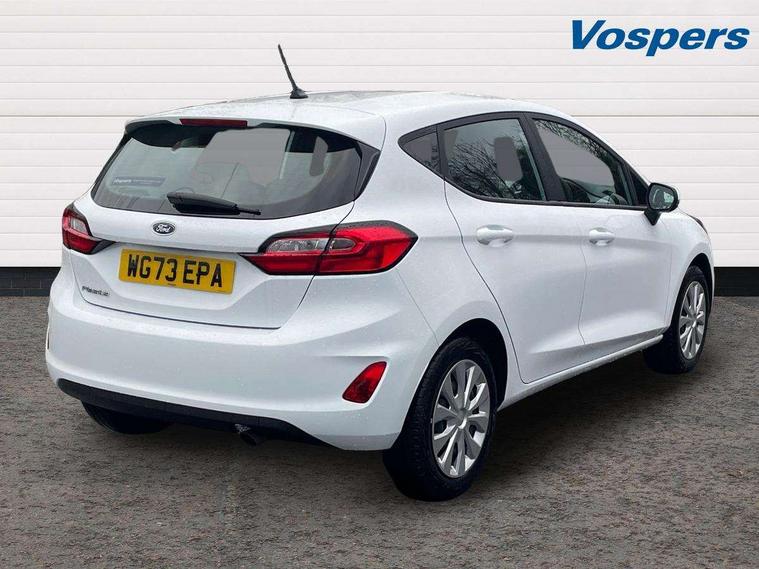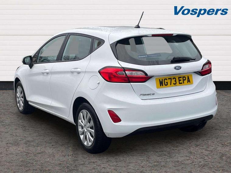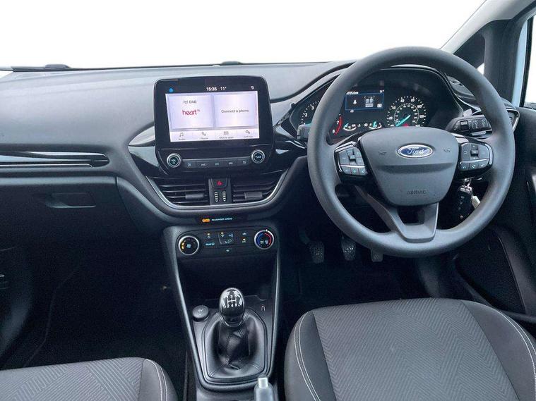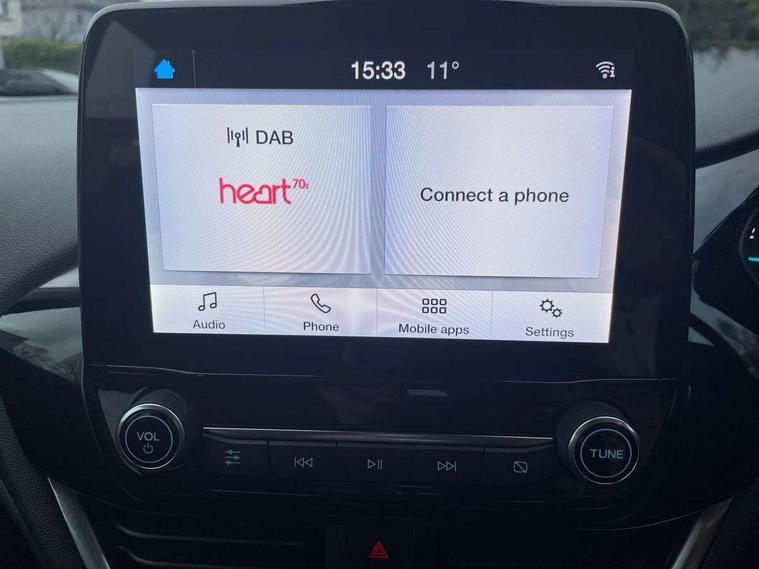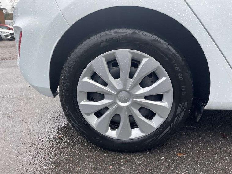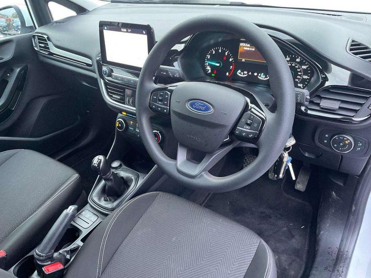 Bluetooth system, Electric power steering, Ford easy fuel, Trip computer, 2 USB ports, Auxiliary input socket, DAB Digital radio, Ford SYNC includes 8" touchscreen, 6 speakers, apple carplay, android auto and emergency assistance, Steering wheel mounted controls, Body colour bumpers, Body colour door handles, Body colour rear spoiler, Chrome beltline trim, Electric front windows/one touch facility, Electric rear windows, LED projector low beam headlamps with LED daytime running lights, Mesh design front grille with chrome surround, Quickclear heated windscreen, Rear wiper, 12V Accessory socket in centre console, 60/40 split folding rear seat, Adjustable head restraints, Ambient lighting, Boot carpet, Chrome inner door handles, Cloth upholstery, Footwell illumination, Front floor mats in velour, Front map reading lights, Front seat and rear pockets, Illuminated glovebox, Load area light, Luxury woven headliner, Manual 2 way passenger seat adjust, Manual 4-way driver seat adjust, Manual air conditioning, Overhead console with sunglasses holder, Pollen filter, Rake/reach adjustable steering wheel, NCAP Pack - Fiesta, 3 point seatbelts on all rear seats, ABS+EBA, Curtain airbags, Driver and passenger airbags, Drivers knee airbag, Electronic stability control with hill start assist, Front passenger airbag deactivation, Front side airbags, Tyre pressure monitoring system, MyKey system, Remote central locking & engine immobiliser, Thatcham Cat.1 alarm, 16" 8 spoke alloy wheels with rock metallic machined finish, Tyre repair kit,