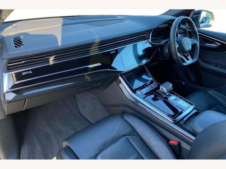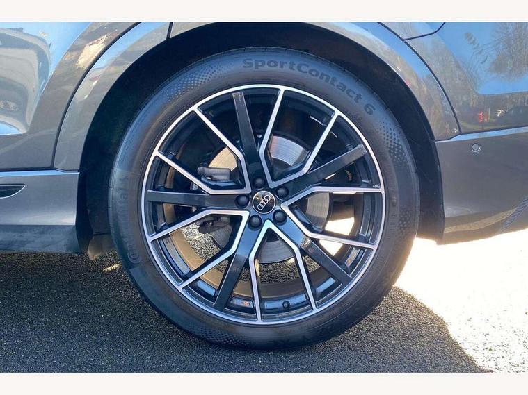10.1" and 8.6" Dual colour touchscreens, Audi connect safety and service (e-call), Audi connect with Amazon Alexa Integration, Audi drive select, Audi parking system plus includes 360 degree display with front and rear sensors, Audi phone box light with wireless charging, Audi smartphone interface includes wireless Apple carplay/Android Auto, Audi virtual cockpit - 12.3" high resolution LCD display with fully customisable instrument cluster, Automatic start/stop system, Electro-mechanical PAS, Low washer fluid indicator, MMI - Multi Media Interface control system, MMI navigation plus with MMI touch, Natural voice recognition, On board computer, Operating buttons in black, glass look with haptic feedback, Power operated tailgate, Rear view camera, Service interval indicator, 48V Mild hybrid technology, 85 litre fuel tank, Adaptive sport air suspension, Quattro all wheel drive with self locking centre differential, Audi music interface with 2 USB ports with charge and data functions, Audi sound system with 6 channel amplifier, 180 watt amplifying capacity and 10 loudspeakers including subwoofer, Aux-in socket, DAB Digital radio, 3rd brake light, Acoustic windscreen, Aluminium window trim, Audi beam, Audi HD Matrix LED headlights with dynamic front and rear indicators, Auto dimming frameless rear view mirror, Black Audi rings and black badging, Coming/leaving home lighting function, Electric front+rear windows, Electrically folding auto dimming/adjustable/heated door mirrors with memory function, LED side indicators and kerb view function for passenger side, Headlight washers, Heat insulating glass in windshield, LED signature daytime running lights, Platinum grey front spoiler lip and diffuser insert with honeycomb grille in black, Privacy glass - dark tinted rear and rear side windows from B-pillar backwards, Rain and light sensors, Rear side wing doors, Rear wiper, 2 zone automatic climate control, 3 bench rear seats in 2nd row, 4-way lumbar support for front seats, 40:20:40 split folding rear bench seat, Audi phone box light, Black cloth headlining, Comfort front centre armrest, Driver seat memory function, Electrically adjustable front seats, Front head restraints, Front/rear floor mats, Heated front seats, ISOFIX child seat mounting for front passenger seat and 2 outer rear seats with top tether child seat mounting for all 3 rear seats, LED interior ambient lighting, Luggage compartment sill protection in stainless steel, Rear centre armrest with 2 cupholders, Rear headrests, Seat cushion displaceable by 100mm in the ratio 60:40, Single front passenger seat, Stainless steel pedals, Sunvisors with illuminated vanity mirrors, Tool kit, 3 point seatbelts on all seats, Audi pre sense front, Child locks on rear doors, Driver and front passenger, front side and curtain airbags, Electromechanical parking brake, Electronic Stability Control (ESC) including ABS, ASR and EDL, Front passenger airbag deactivation, Hill descent control, Hill hold assist, Predictive pedestrian protection, Seatbelt monitoring, Traction control, Tyre pressure loss indicator, Warning triangle and first aid kit, Anti theft alarm with tow away protection, Anti-theft wheel bolts and wheel loosening detection, Immobiliser, Keyless go with remote central locking, Polished oak trim with grey finished, Tyre repair kit,