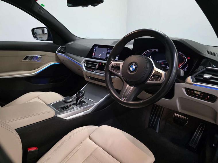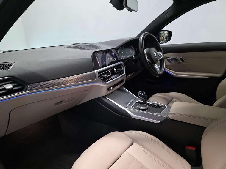 Active guard plus, Attentiveness assist, Auto start-stop, BMW ConnectedDrive online services, BMW Live Cockpit Professional sat nav system including 10.25" high resolution display and Intelligent Voice Assistant, BMW service history, BMW Teleservices, Brake pad wear indicator in front and rear, Check Control warning system for monitoring of lights and door/luggage compartment open warning, Condition based service, Electric power steering with Servotronic steering optimised at all speed ranges, iDrive controller on centre console, Instrument cluster with speedometer with mph readout, tachometer, fuel gauge and oil temperature gauge, Integrated owners handbook, Oil sensor for level and grade, warning by check control system, On board computer - average speed+fuel consumption, service interval, clock/date, odometer/trip meter, outside temperature display and ice warning, Optimum shift indicator, Personal Profile - automatic lock when driving away selectable, Variable sport steering, 8 speed automatic steptronic transmission, Balanced 50/50 weight distribution, Battery cut-out switch, Diesel particulate filter, Drive performance control - ECO PRO, comfort and sport modes, Incorrect fuelling protection, Larger capacity fuel tank, M sport suspension, Stroke dependent dampers, DAB tuner, Electronic service booklet, Acoustic glazing, Active airstream chrome frame kidney grille with 8 high gloss black vertical slats, Automatic headlight beam throw control with load dependent regulating reaction, dynamic compensation of braking dive and acceleration squat, Black roof mouldings, Body colour - fuel filler flap, front and rear bumpers, door handles and mirror caps with integrated turn indicator + bottom segment in matt black, Dynamic brake lights, Electric windows - front and rear, with open/close fingertip control, anti-trap facility and comfort closing, Exhaust tailpipe - split left and right, Extended LED headlights, Exterior mirrors - electrically folding with anti-dazzle, Fading support, Front and rear bumper system with replaceable deformation elements, Front black door sill finishers with BMW designation, Green tinted heat protection glazing, High gloss shadow line exterior trim, Interior rear view electrochromatic mirror with automatic anti dazzle function, LED front fog lights, Lightweight engineering, M designation on front side panels, left and right, Matt black exterior B pillar, Model designation on right side of tailgate, Rain sensor with automatic headlight activation, Rear wiper, Shark fin antenna, Two part LED tailights in L-shape with components in smoked glass, brake light, LED turn indicator and rear fog light, Visible VIN plate, Welcome lights in interior and door handle area, Windscreen wipers with integrated washing jets, 12V power socket in front storage compartment, 2 front cupholder in centre console with clamping elements and matt black inlay, 3 rear seats with non folding headrests with 3 point seat belts, 3 zone automatic air conditioning, 4 pieces lashing eyelets in luggage compartment, 40:20:40 split folding rear seat with loading system, Ambient lighting with welcome carpet light, Anthracite headlining, Armrest integrated in front and rear door trim + front centre console armrest, Centred top Luggage compartment lights, Four grab handles integrated in roof lining, Front and rear door exit lighting (left / right), Front and rear door pockets, Front and rear reading lights, Front and rear velour floor mats, Front head restraints, Front sport seats, Heated driver and front passenger seats, Height adjustable mechanically and infinitely variable steering column, Illuminated armrest storage compartment, Illuminated glove compartment with separate small compartment, Interior lighting - front centre over interior mirror with soft light, rear centre and front and rear footwell lighting, M Sport multifunction leather steering wheel, Make-up mirror lights, Rear centre armrest with 2 cupholders, Rear centre console with storage compartment and ventilation grille, Sunvisors with vanity mirrors and ticket pocket, Toolkit located in luggage compartment, Connected pack professional - 3 Series Saloon/Touring, M Aerodynamics pack - 3 Series Saloon/Touring, 2 tone horn, BMW emergency call, Brake energy regeneration, Braking pre-tensioning, Child proof locking system in rear door, Child seat ISOFIX attachment rear outer seats, Coasting in idle in ECO PRO mode, Crash sensor activating of airbags, Unlocking doors, hazard warning lights, fuel cut off, interior lighting+activation of safety battery terminal clamp, Driver and front passenger side airbags, integrated in the door side seat backrest bolsters for all seat variants, Driver/Front Passenger airbags, Dry braking, Dynamic brake control, Dynamic stability control + (DSC+) - Anti-lock Braking System (ABS) with brake assist and cornering brake control + Automatic Stability Control (ASC), Dynamic Traction Control - DTC, Electromechanical parking brake including automatic hold function and automatic release of the parking brake when pulling away, Electronic differential lock control (EDLC), Front passenger manual airbag deactivation, Head airbags for all 4 outer seats, Hill start assist, Seat belt security check for driver and front passenger, Side impact protection, Three 3 point seat belts on all seats including front belt stopper, pyrotechnic belt tensioners and belt force limiters, Tyre pressure monitoring with three level warning strategy, Ventilated front and rear disc brakes, Warning triangle and first aid kit, Alarm system (Thatcham 1) with remote control and electronic engine immobiliser, Central locking switch for all doors, fuel filler cap and luggage compartment, Remote control with integrated key one button open/close vehicle and windows, sole opening of the luggage compartment lid and panic mode, Start/stop button with Comfort Go keyless engine start and auto Start/stop deactivation button, Vehicle key with M specific designat