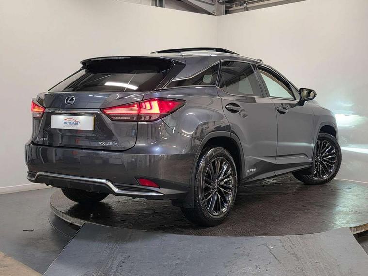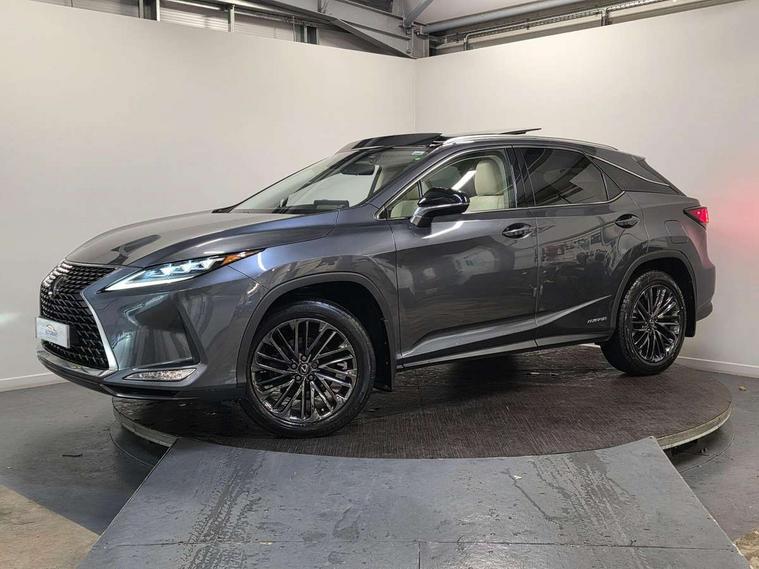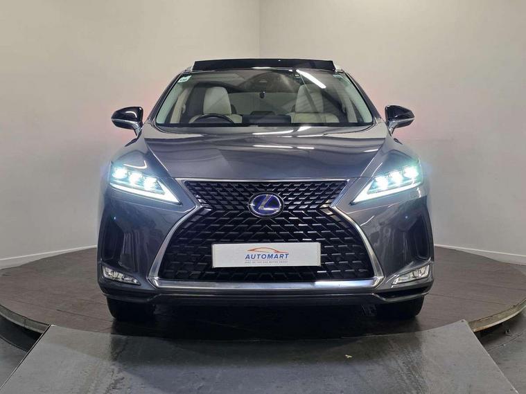12.3" Touchscreen display and remote touch interface, 4 driving modes EV/Eco/Normal/Sport, Analogue clock with GPS function, Apple car play/Android Auto, Bluetooth mobile phone connectivity, Electric power steering, Emergency call service, Front and rear parking sensors with intelligent clearance sonar, Lane change flasher function, Lexus link connected services with available optional wifi, Lexus Premium Navigation with full European map capability, street view and connected services, Multi-information display 4-inch TFT, Push button starter, Reversing camera with back guide lines, Wireless Smartphone charger, E-Four Automatic transmission, Vehicle Dynamics Integrated Management (VDIM), Vehicle Stability Control (VSC), 12 speakers Pioneer audio, AUX socket with VTR compatibility, DAB Digital radio, DVD, Front and rear USB ports, 3 eye LED headlights with auto high beam, Auto dimming rear view mirror, Front and rear electric windows, Headlight washers, Heated, auto-folding door mirrors, auto dimming with rerverse tilt and memory, LED brake lights and rear lights with emergency brake signal, LED cornering headlights, LED daytime running lights, LED front and rear sequential indicators, LED front fog lights, Power back door with kick sensor, Privacy glass, rear doors and tailgate, Puddle lights, Rain sensor windscreen wipers, Rear side wing doors, Rear wash/wipe, Roof rails, 2 map pockets in the rear, 2 way electric lumbar support, 2 way manually adjustable front headrests, 2 way manually adjustable rear headrests, 2 x fixed shopping bag hooks in boot, 2 x Sunvisors with vanity mirror and lamp, 3 seat bench in 2nd row, 3 x 12V power sockets, 4 x tie down hooks in the boot, 40:20:40 split folding rear seats, 60/40 split folding rear seat with 40/20/40 folding ability, 8 way electrically adjustable front seats, Card holder installed in driver and passengers sun visors, Centre and rear armrest with 2 cupholders, Centre armrest with storage box, Climate concierge, Driver seat memory function, Driver's seat easy access auto retraction function, Dual zone climate control air conditioning system with S flow and Nanoe technology, Electrically adjustable leather steering wheel with paddle shifts and auto retraction function, Electrically adjustable steering column, Glasses holder in roof lighting panel, Heated front seats, Heated steering wheel, Isofix standard child seat restraint mounting, Leather gear lever, LED interior illumination, Rear armrest with storage, Self charging hybrid, Single front passenger seat, Sliding/reclining rear seats, Small compartment to right of steering wheel, Smooth leather upholstery, Textile carpet mats, Ventilated front seats, 3 point ELR front and rear seatbelts with pretensioners, ABS, Curtain airbags, Driver and front passenger 2 stage airbag, Driver/front passenger side airbags, Drivers knee airbag, EBD + Brake Assist, Electronic parking brake, Electronically controlled braking, Front passenger seat cushion airbag, Hill assist control, Lexus safety system - dynamic radar cruise control, pre collision system day and night, lane tracing assist, road sign, automatic high beam, OTA, Passenger airbag cut-off device, Rear door child safety locks, Rear passenger side airbags, Traction control, Tyre pressure warning, WIL whiplash protection front seats, Anti theft system with alarm, intrusion sensor, tilt sensor, glass breakage sensor and engine immobiliser, Locking wheel nuts, Security window etching, Smart keyless entry, Two motion door lock with double lock, Black grain inlay, 20" Alloy wheels, Temporary spare wheel,