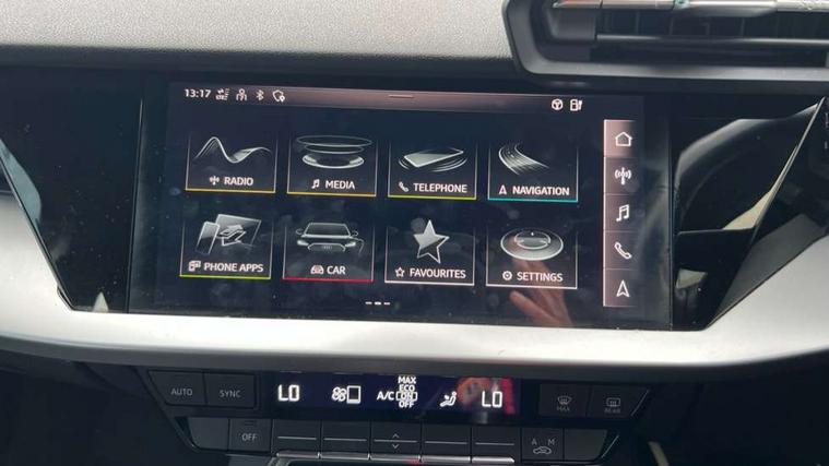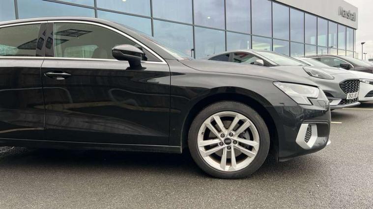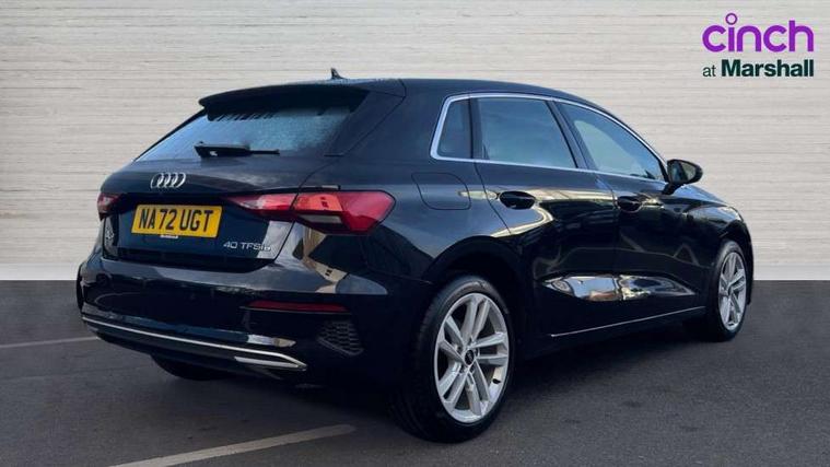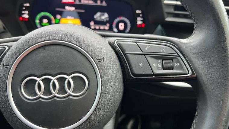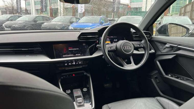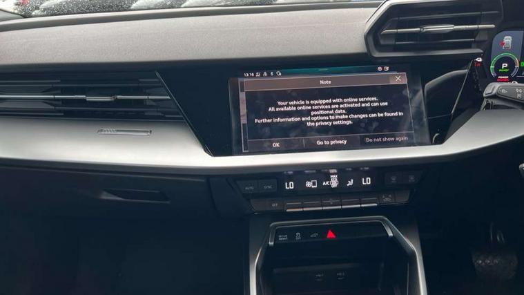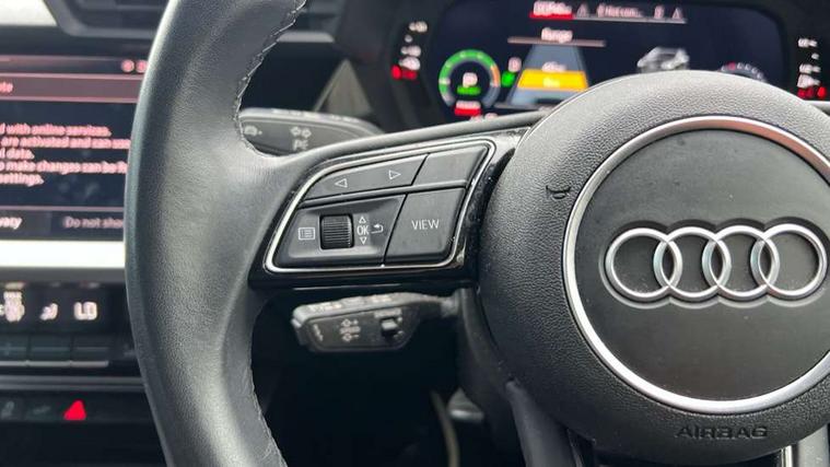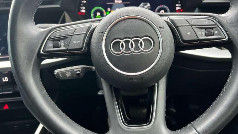 Audi drive select (Auto, Comfort, Dynamic, Efficiency and Individual), Audi smartphone interface, Audi Virtual Cockpit - 10.25" digital and colour instrument cluster, Automatic start/stop system with recuperation, Bluetooth interface, Collision avoidance assistant, e-Call (emergency call), Electromechanical power speed sensitive steering, Lane departure warning system, MMI Navigation Plus with high resolution 10.1" colour touch screen display, Service indicator, Trip computer, Voice control system with natural language interaction, 3 pin 10 amp domestic charging cable, 3.6 kw On-board charger, Standard suspension, Type 2 mode 3 32 amp charging cable, Type 2 socket for AC charging, 2xUSB-C connection with data and charging functions, 6 passive loudspeakers, DAB Digital radio, 3rd brake light, Acoustic glass windscreen, Aluminium window trim, Auto dimming frameless rear view mirror, Body colour exterior mirrors, Body colour roof spoiler, Electrically adjustable/heated/folding/auto dimming door mirrors with integrated LED indications + kerb view function for passenger side, Front electric windows, LED daytime running lights, LED headlights and halogen rear lights, Light and rain sensors, Rear electric windows, Rear side wing doors, Rear window, rear door windows and rear side windows in clear glass, Rear wiper, 12V socket and storage compartment in front centre console, 3 seat bench in 2nd row, 40/20/40 split folding rear seat bench with cupholder, Dual zone electronic climate control, Front and rear centre armrest, Front and rear headrests, Front door sill trims with aluminium inlay, Front/rear floor mats, Height and reach adjustable steering wheel, Interior lighting - Front and rear roof module including reading lights, glove compartment light and right hand side, Luggage compartment floor covering, Manual boot compartment lid, Manually adjustable front seats, Seat side bolsters, Single front passenger seat, Steel grey cloth headlining, Twin leather upholstery, Aluminium interior elements pack - A3 Sportback, Sport styling pack - A3 Sportback, 3x3 point rear seat belts, Audi pre sense front, Driver and front passenger airbag with passenger airbag deactivation, Electronic Stabilisation Control (ESC) including ABS, ASR and EDL, First aid kit with warning triangle and 2 safety vests, Front side airbags with head airbags and interaction airbag, Pre-sense front with pedestrian and cyclist detection, Seatbelt monitoring, Tyre pressure loss indicator, Anti theft alarm, Anti-theft wheel bolts, Electronically operated child lock, Immobiliser, Remote control central locking, Inlays with silk effect paint in platinum grey, Tool kit, Tyre repair kit,
