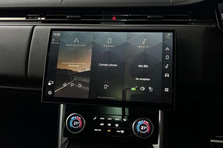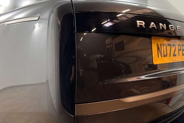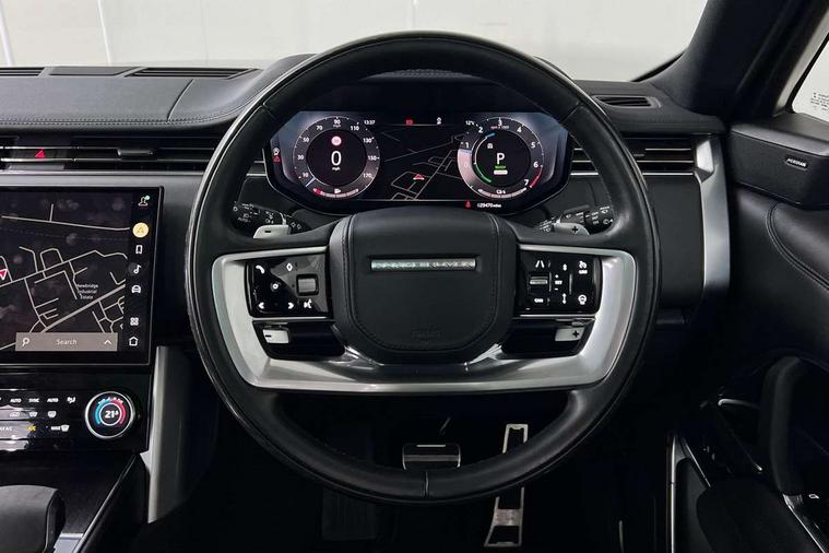13.1" Touchscreen, 3D surround camera inc frwd traffic detection, vehicle clearance guidance, 3D view, clearsight ground view, manoevure light, 360 parking aid, wade sensing, Adaptive cruise control with steering assist, All Terrain Info Centre, All wheel steering, Android Auto, Apple car play, Blind spot assist, Bluetooth connectivity streaming, Driver condition response, Eco mode, Electric power assisted steering (EPAS), Emergency call service, Front and rear parking aid, Interactive driver display, Lane keep assist, Powered gesture tailgate/boot lid, Rear collision monitor, Rear traffic monitor, Remote, Traffic sign recognition with adaptive speed limiter, Wi-Fi Enabled with data plan, Wireless device charging with phone signal booster, 7 kW onboard charger, 8 speed automatic transmission, Active damper technology system, Adaptive dynamics, All terrain progress control, All Wheel Drive (AWD), Automatic access height, Home charging cable 5m Mode 2 including plugs, Public charging cable 5m Mode 2 including plugs, Terrain Response 2 Auto, Twin speed transfer box, Digital Audio Broadcast radio-DAB, Pivi pro including smart settings, Connected navigation pro, nuance speech, USB socket, Acoustic laminated windscreen, Animated directional indicators, Automatic headlights, Automatic levelling headlights, Centre high mounted stop light, Electric windows with one touch open/close and anti trap, Flush deployable exterior door handles, Front and rear recovery eyes, Front fog lights, Headlamp power wash, Heated rear window, Heated washer jets, LED tail lights, Power fold, auto-dimming, heated door mirrors with approach lights, Rain sensing windscreen wipers, Range rover badge, Rear boot, Rear fog lights, Rear side wing doors, Rear wash/wipe, Side repeater indicators in mirror, Trailer stability assist, Winter wiper park position, 12V power sockets, 3 seat bench in 2nd row, Air quality sensor, Bright metal pedals, Cabin lighting, Customer configurable single point entry, Driver and passenger front seat armrests, Easy boot loading, Ebony Carpet, Front and rear cupholders, Front and rear grab handles, Front head restraints, Gearshift paddles, Heated steering wheel, Hook in load space, Loadspace light, Luggage tie down in loadspace, Multifunction steering wheel, Rear centre armrest, Rear head restraints, Rear ISOFIX, Single front passenger seat, Twin blade sunvisors with Illuminated vanity mirrors, Upper and lower glovebox, Online pack with data plan - Range Rover, 3x3 point rear seat belts, Anti-lock braking system (ABS), Brake hold function, Cornering brake control (CBC), Customer configurable autolock, DSC - Dynamic Stability Control, Electronic brake force distribution, Electronic parking brake, Electronic traction control, Emergency brake assist, Emergency braking, Front airbags with passenger seat occupant detector, Front side airbags, Hill descent control, Hill launch assist, Low traction launch, Occupant protection assist, Power operated child locks, Roll stability control, Tyre pressure monitoring system (TPMS), Immobiliser, Intrusion sensor and alarm, Keyless entry, Locking wheel nuts, Remote central locking, Noble chrome controls,