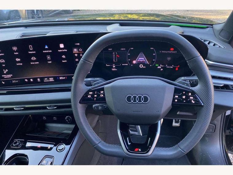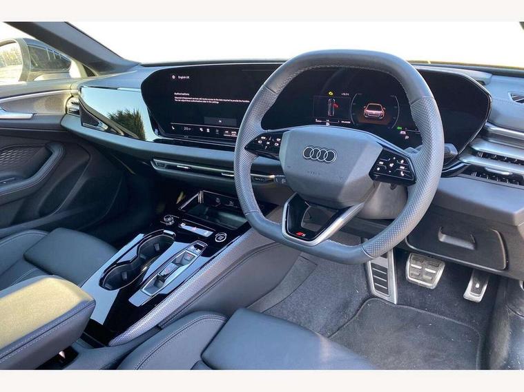 Adaptive cruise control, Advanced driver attention and fatigue montior, Audi application store, Audi assistant, Audi connect emergency call and service, Audi drive select, Audi smartphone interface, Audi virtual cockpit plus with 11.9" OLED colour display, Automatic start/stop system with coasting functionality, Camera based traffic sign recognition, Intersection assist, Lane departure warning, MMI navigation plus with high resolution 14.5" OLED touchscreen colour display, Park assist plus, Parking system plus with 360 display, Progressive steering with servotronic, Rear view camera, Swerve assist and turn assist, Traffic sign based speed limiter, Sports suspension lowered by 20mm, 2 USB-C ports in both the front and rear, Audi sound system impressive sound with 10 loudspeakers including centre speaker and subwoofer, 6-channel amplifier with a total output of 180 watts, DAB digital radio reception, Smartphone compartment with wireless charging, Aluminium window trims, Auto dimming rear view mirror, Body colour door mirrors, Door mirrors - electrically adjustable, heated, folding and auto dimming on both sides, Front and rear electric windows, Front door sill trims with aluminium inlays, illuminated with 'S' logo, High beam assist, LED headlights Plus incl. digital daytime running lights, turning light, all-weather light, motorway light, manouevring light and intersection light, LED rear lights pro incl. dynamic rear indicators and illuminated light strip with animated coming and leaving home function, LED third brake light, Privacy glass, Rear and side windows with heat insulating glass, Rear boot, Rear side wing doors, S Line badges on the front wings, S line bumpers, radiator grille and diffuser in phantom black and diffuser insert in matt anthracite, White rhombus logo projection light in exterior mirrors, Windscreen with acoustic glazing, 3 rear headrests, 3 seat rear bench, 3 spoke leather steering wheel with multi-function buttons with touch control, flattened on top and bottom, with S badging and contrast stitching, 3-zone automatic climate control, 40:20:40 split folding rear seat bench with centre armrest and cup holders, Comfort front centre armrest, Front and rear floor mats, Front seats with manual adjustment for position and 4-way electric lumbar support, Front sport seats with integrated headrest and S embossed logo, Headlining in black cloth, Heated front seats, i-Size child seat mounting on the front passenger side and outer rear seats, i-Size and top tether on the outer rear seats, Luggage compartment lid, electrically opening and closing, Manual steering column height and depth adjustment, Single front passenger seat, Stainless steel pedals and footrest, Steering wheel grips in perforated leather and shift paddles, Ambient lighting package plus - A5, 3x3 point rear seat belts, Driver airbag, Electric child safety locks, First aid kit with warning triangle and vests, Front emergency brake assist, Front passenger airbag, Front passenger airbag deactivation, Front side airbags with head airbag system and front interaction airbag, Hill hold assist, Seat belt monitoring with rear seat occupant reminder, Tyre pressure loss indicator, Anti theft alarm, Anti-theft wheel bolts, Keyless Go, Accent surfaces and control buttons in gloss black, Black dashboard with contrast stitching, Inlays in matt brushed aluminium with linear embossing, anthracite, Softwrap in leatherette with contrast stitching, Upper and lower interior elements in leatherette, Tyre repair kit,