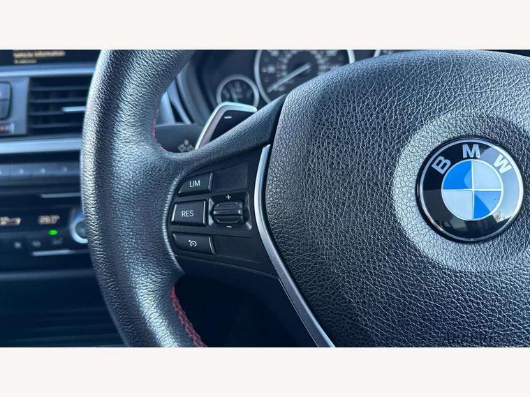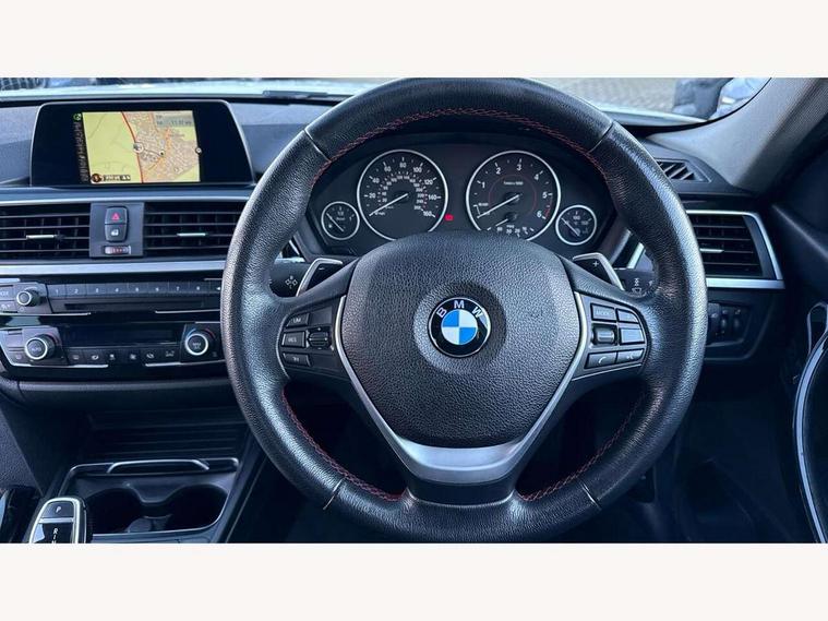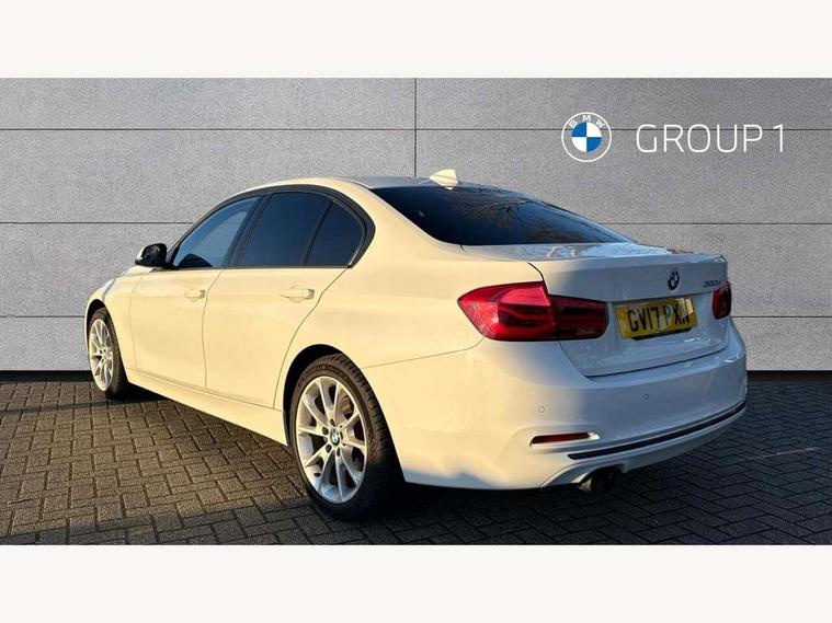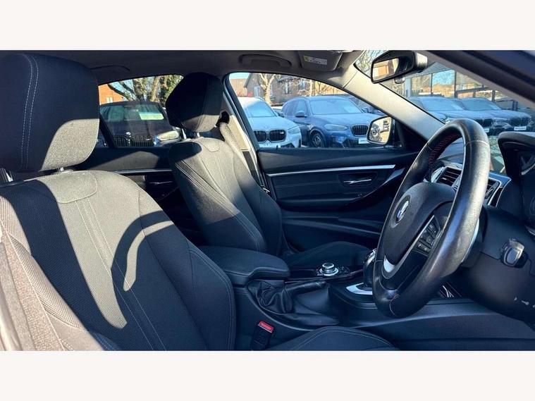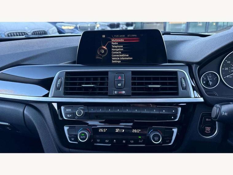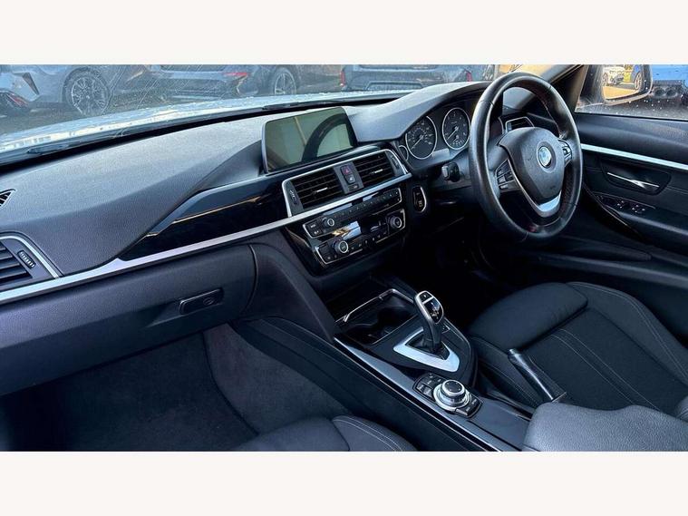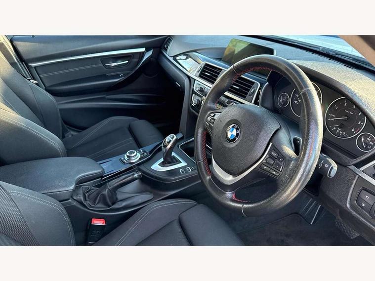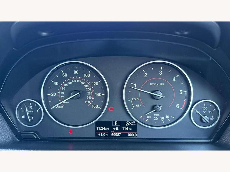 BMW Online services, BMW Teleservices, Brake force display, Brake pad wear indicator warning light, Check control system, Digital clock, Door/boot open warning light, Lights on warning, Oil temperature gauge, On board computer, On board diagnostics, Operation warning of all exterior lights, Outside temperature display, Push button starter, Run flat tyre indicator, Service interval indicator, Traffic message channel (TMC), Diesel particulate filter, Drive Performance Control, Electronic differential lock, Sports function on gearbox with steering wheel mounted gearshift paddles, Auxiliary point for auxiliary devices, BMW professional radio/CD/MP3, CD Changer preparation, DAB Digital radio, 'Guide me home' headlamps, 2 speed adjustable intermittent wipers with wash/wipe function, Auto dimming rear view mirror, Automatic headlight beam throw control, Body colour bumpers, Body colour door handles, Body colour roof mouldings, Chrome exhaust tailpipe, Clear indicator lenses, Dynamic brake lights, Electric adjustable door mirrors, Electric front and rear windows with one touch/convenient open/close function, Front ornamental grille with black kidney bars and chrome bezel, Green tinted heat insulating glass, Heated rear window with automatic switch off, Heated windscreen washer jets, LED daytime running lights, Rain sensor + automatic driving lights control, Shark fin roof aerial, 12V sockets in front centre console and passenger footwell, 2 x folding cupholders in instrument panel above glovebox, 3 rear seat head restraints, 4 foldable grab handles - rear with clothes hook, 4 lashing points to secure luggage, Automatic interior light soft on/soft off system, Driver and passenger sunvisors with vanity mirrors + slide cover, Dual zone automatic air conditioning, Folding front centre armrest + storage, Front and rear door armrests, Front and rear velour floor mats, Front door storage bins with bottle holder, Front sports seats with electric side bolster adjustment, Glovebox light, Height adjustable front headrests, Indirect front interior illumination - soft-light function, Isofix system on outer rear seats, Leather gear knob, Leather gear selector lever handle, Leather handbrake grip, Lockable glovebox, Luggage compartment lighting, Multi-function controls for steering wheel, Reach + rake adjustable steering column, Rear storage compartment in multifunction centre console with sliding cover, Storage compartment in rear doors, Toolkit located in luggage compartment, Extended lighting package - 3 Series, 3 point inertia reel seatbelts + pre-tensioners on outer rear seats, ABS, Automatic Stability Control (ASC), BMW emergency call, Cornering brake control (CBC), Crash sensor, Driver and passenger airbags, DSC+, Dynamic brake control, Dynamic Traction Control - DTC, Front and rear head airbags, Front passenger airbag deactivation, Front seat side impact airbags, Front seatbelt pretensioners + load limiters, Hill start assist, Rear child proof door locks, Seatbelt warning, Three 3 point rear seatbelts, Twin horns, Tyre pressure monitor, Warning triangle and first aid kit, Automatic drive away locking facility, Central locking fuel filler cap, Centre lock switch, Electronic immobiliser, Key integrated remote control central locking, Remote control alarm, Low rolling resistance tyres, Run-flat tyres,