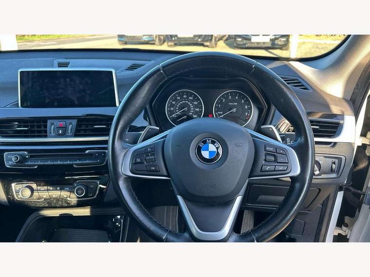 Active Guard incl speed limiting and lane departure functions with auto steering, and front collision warning with brake intervention, Ambient temperature display, Attentiveness assist, Automatic tailgate opening, BMW Online services, BMW Teleservices, Lights on warning, On board computer, Outside temperature gauge, Rear park distance control, Service interval indicator, Speed limiter, Stop/start button, Tyre puncture warning system, 61 Litre fuel tank, Electronic differential lock, Performance Control, Auxiliary socket for external MP3 player, BMW professional radio with CD player, DAB Digital radio, Adaptive LED Headlights, Adjustable headlights, Body colour bumpers, Body colour door handles, Body colour door mirrors, Electrically adjustable and heated door mirrors, Exclusive door sill finishers, Fingertip control / anti-trap function on electric window, Follow me home headlights, Front and rear electric windows, Front fog lights, Heat insulating tinted glass, Heated windscreen washer jets, LED daytime running lights, Rain sensor including auto headlights activation, Twin chrome exhaust tailpipes x2, Welcome home function, 12v power point in centre console, 12V power socket in passenger footwell, 3 spoke sport leather steering wheel, 4 grab handles, Boot light, Centre console with cupholders, Dakota leather upholstery, Driver/passenger sunvisors with ticket holders, Drivers folding storage compartment, Dual zone automatic air conditioning, Front and rear door armrests, Front centre armrest/sliding cover, Front passenger isofix child seat attachment, Front/rear adjustable head restraints, Heated front seats, Illuminated glovebox, Isofix rear child seat preparation, Leather gearknob/gaiter/handbrake grip, LED ambient lighting in door trim, Luggage area underfloor compartment, Multifunction steering wheel, Rake/reach adjustable steering wheel, Sliding/split/reclining 40/20/40 rear seat with 60/40 split rear seat base, Steering wheel gearshift paddles, Extended storage package - X1, 3 rear 3 point seatbelts, ABS/EBD, Audio/visual collision warning system, Automatic Stability Control (ASC), BMW emergency call, Cornering brake control (CBC), Crash Sensor - activates hazard/interior lighting + unlocks doors, Driver/Front Passenger airbags, Driver/front passenger side airbags, DSC - Dynamic Stability Control, Dynamic brake control, Dynamic Traction Control - DTC, Electronic parking brake, Front and rear head airbags, Front passenger airbag deactivation, Front seatbelt force limiters, Hill start assist, Pyrotechnically pre-tensioned front seatbelts, Rear door child safety locks, Seatbelt warning, Tyre pressure monitor, Warning triangle and first aid kit, Auto door lock when driving, Central locking including boot and fuel flap with deadlocks, Engine immobiliser, Locking wheel nuts, Remote control Thatcham category 1 alarm, High gloss black centre console, Low rolling resistance tyres,