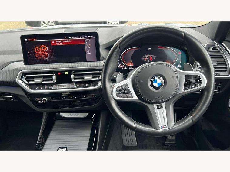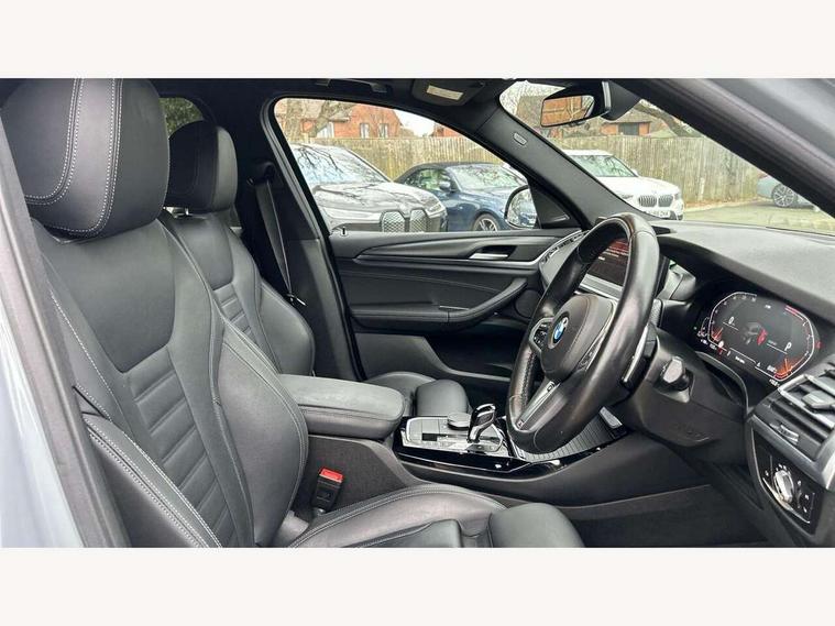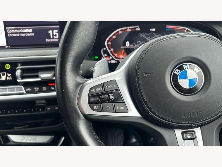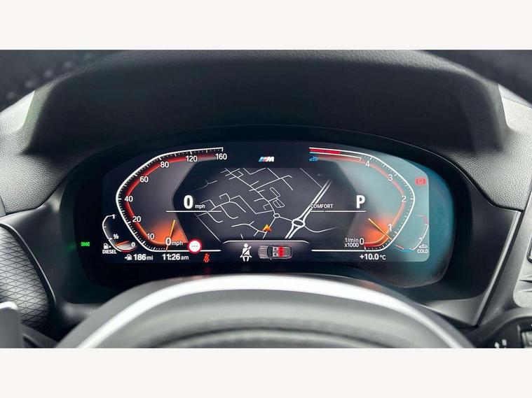 Active Guard, Attentiveness assist, BMW Live Cockpit Professional nav system including 12.3" instrument display + 12.3 high resolution control display, BMW Online services, BMW Teleservices, Brake pad wear indicator in front and rear, Check Control warning system for monitoring of lights and door/luggage compartment open warning, Condition based service - BMW service history, electronic service booklet, integrated owner's handbook, Connected drive services, Cruise control with brake function + speed limiter, Electric boot lid, Front/rear Parking distance control, iDrive touch controller with 8 favourite buttons, Instrument cluster with speedometer with mph readout, tachometer, fuel gauge and oil temperature gauge, Lights on warning by audio warning signal when ignition is switched off, Oil sensor for level and grade, warning by check control system, On board computer - average speed+fuel consumption, service interval, clock/date, odometer/trip meter, outside temperature display and ice warning, Optimum shift indicator, Personal Profile - automatic lock when driving away selectable, Run flat indicator, Stop/start system, Variable sports power steering with drive performance control Sport+ mode, Automatic transmission with gearshift paddles, Diesel particulate filter, Incorrect fuelling protection, Larger capacity fuel tank, M sport suspension, Multi-link rear suspension, Performance Control, BMW professional radio/CD/MP3, DAB tuner, Acoustic glazing, Automatic windscreen wipers and automatic headlight, Black finish on B pillars, Body colour door handles, Body colour electric adjust heated aspherical door mirrors, Body colour roof mouldings, Body coloured bumpers, Direction indicator, side repeaters, integrated in exterior mirrors, Dynamic brake lights, Exhaust tailpipes - dual, round, split left and right with chrome finisher, Fingertip control / anti-trap function on electric window, Folding wing mirrors with auto dimming, Follow me home headlights, Front and rear bumper system with replaceable deformation elements, Front and rear electric windows, Gloss chrome tailpipes finishers, Green tinted heat insulating glass, Heated windscreen washer jets, High beam assistant, High gloss black shadow line roof rails, High gloss shadowline exterior trim in decorative moulding side frame/recess cover/guide rail/B, C pillars/mirror frame and triangle with mirror base, High level 3rd brake light incorporating LED Technology, Interior rear view electrochromatic mirror with automatic anti dazzle function, LED tail lights, Lightweight engineering, M aerodynamic bodystyling, M Sport entry door sill strips, Model designation, Rain sensor, Rear side wing doors, Rear wing door, Rear wiper, Shark fin antenna, Side exterior M designation badges, Visible VIN plate, Welcome lighting, Windscreen wipers with adjustable interval, 12V power point in luggage area, 12V power socket in front centre console, 3 rear headrests, 3 seat bench in 2nd row, 3 zone automatic air conditioning, 4 lashing points to secure luggage, 40:20:40 split folding rear seat with loading system, Ambient lighting, Anthracite headlining, Automatic interior light when door is opened/ignition switched off or via remote key, Driver seat backrest width adjustment, Floor mats in velour, Foldable storage floor with compartment, Four grab handles integrated in roof lining, Front and rear bottle holders integrated into door trim storage compartments, Front and rear side armrests integrated into door trim, Front centre armrest with storage compartment, Front footwell lights, Front head restraints, Front passenger seat, Front sports seats, Front/rear courtesy lights with soft on/off dimming, Front/rear reading lights, Heated front seats, Isofix rear child seat preparation, Leather gear knob, Luggage area underfloor compartment, Luggage compartment lighting, M sport leather steering wheel, Multifunction steering wheel, Parcel shelf removeable and storable under boot floor, Reach and rake adjustable steering column, Rear centre armrest with 2 cupholders, Removable / retractable luggage cover, Slope adjustable rear seats, Storage compartment in rear centre console and front/rear door trims, Sun visors with vanity mirrors and ticket pocket, Toolkit located in luggage compartment, Two front cupholders with removable oddments tray/lid, Vernasca leather upholstery, Connected pro pack - X3, Driving assistant pack - X3, ADB - Automatic Differential Brake, Anti-lock braking system (ABS) with brake assist, Automatic Stability Control (ASC), Battery safety cut-off, BMW emergency call, Brake drying, Brake energy regeneration, Braking pre-tensioning, Child locks on rear doors, Cornering brake control (CBC), Crash Sensor - activation of central locking release, hazard warning light and interior lighting, Deactivation of fuel pump in the event of a crash, Driver and front passenger front and side airbags with passenger deactivation and ITS front and rear head airbags, Driver and front passenger knee airbag, DSC+, Dynamic brake control, Dynamic Traction Control - DTC, Electromechanical parking brake, Hill descent control, Hill start assist, Seatbelt security check for front seats, Side impact protection, Three point seatbelts to all seats with front and outer rear pyrotechnic belt tensioners and seat belt force limiters, Two tone horn, Tyre pressure sensor, Ventilated front and rear disc brakes, Warning triangle and first aid kit, Central locking switch for all doors, fuel filler cap and luggage compartment, Electronic engine immobiliser, Locking wheel nuts, Remote control including two integrated key - one button for open/close all lockable content, windows and separate button for open luggage compartment, Remote control Thatcham category 1 alarm, Start/stop button with Comfort Go keyless engine start and auto Start/stop deactivation button, Low rolling resistance tyres,