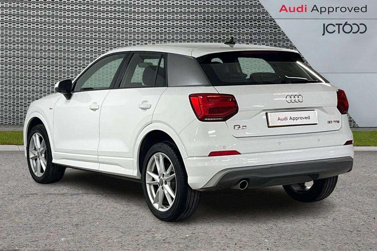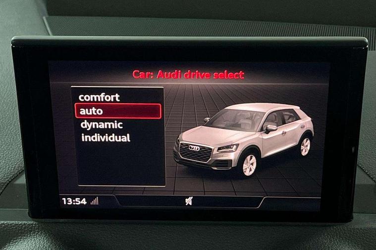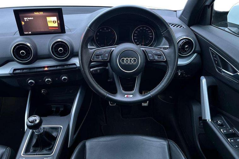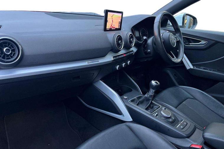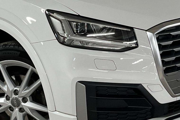 Audi drive select, Audi smartphone interface, Automatic start/stop system with recuperation, Bluetooth interface includes bluetooth audio streaming, Cruise control, MMI - Multi Media Interface control system, MMI SD card integrated nav with 3D map display, dynamic route guidance with TMC, MMI search, natural voice recognition and myAudi special destinations, Power operated tailgate, Progressive steering, Service interval indicator, Dynamic suspension, 2 x SDXC card reader, Audi music interface - apple iPod, apple iPhone, USB storage media, compatible MP3 players, 2 x USB charging points and 1 x Aux-in, CD Drive, DAB digital radio and AM/FM radio, MMI radio plus with 7" colour MMI screen and MMI controller, Black window trims, Bumper in full body colour paint finish, Chrome exhaust tailpipe, Electrically adjustable and heated door mirrors with integrated LED side indicators, Front and rear electric windows, Front underbody guard and rear diffuser trim in selenite silver, Front windscreen with grey tinted sunband, Headlight washers, Interior mirror, LED headlights with LED rear lights + dynamic rear indicators, LED indicator lights, Manual folding door mirrors, Rain and light sensors, Rear wiper, S Line badges on the front wings, S Line body styling - front and rear bumpers, side skirts, radiator grille, rear diffuser insert and front air intakes, 60/40 split folding rear seat bench, Black cloth headlining, Electronically operated child locks, Floor mats with contrast stitching, Front centre armrest, Front headrests, Front sport seats with S embossed logo, Height/reach adjust steering wheel, Illuminated door sill trims with S logo, ISOFIX child seat mounting for front passenger with airbag deactivation and outer rear seat including top tether attachment point for outer rear seats, Manual seat adjustment including seat height adjustment for front seats, Stainless steel pedals, Storage compartments - Glovebox, cupholder compartment in centre console, storage compartment in rear centre console, front and rear door pockets, Three rear headrests, Non smoking pack - Q2, 3x3 point rear seatbelts, 6 airbags - Front, curtain and front side airbags, Electromechanical parking brake, Electronic stabilisation control including ABS, ASR and EDL, Extended and proactive pedestrian protection, Hill hold assist, Multi collision brake assist, Pre-sense front with pedestrian recognition, Seatbelt monitoring, Tyre pressure warning light, Warning triangle and first aid kit, Anti theft alarm, Anti theft wheel bolts, Central locking system with remote control key, Aluminium interior element,