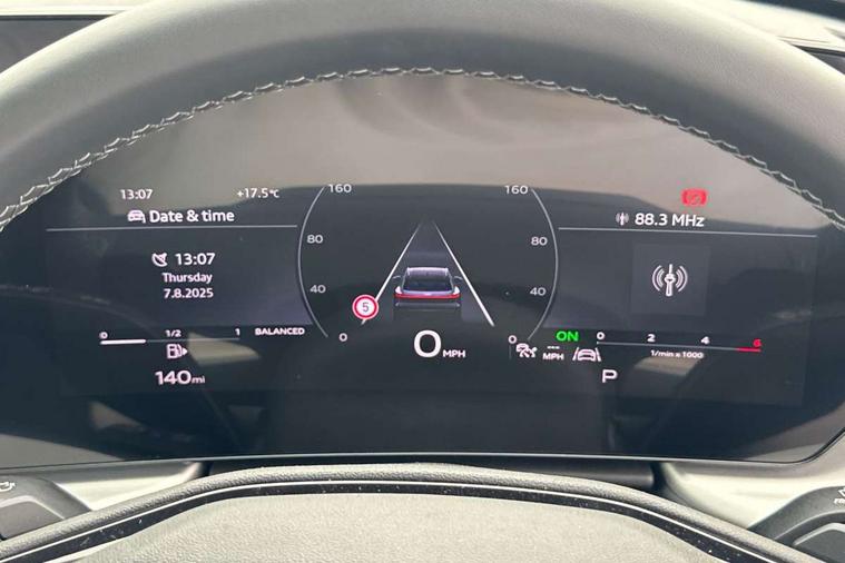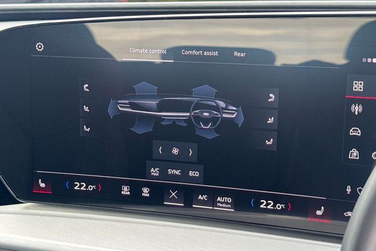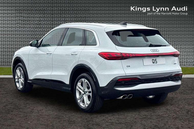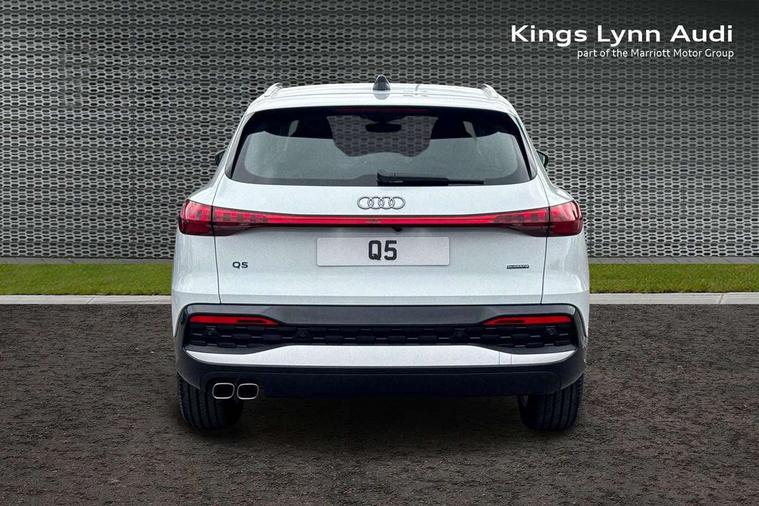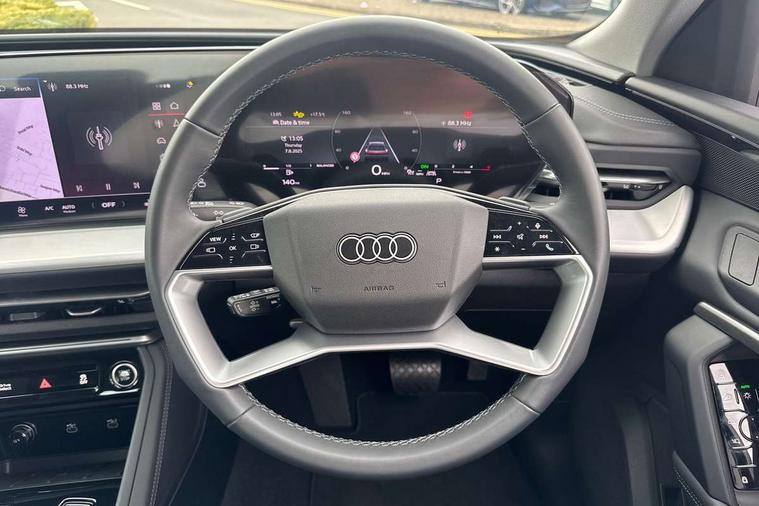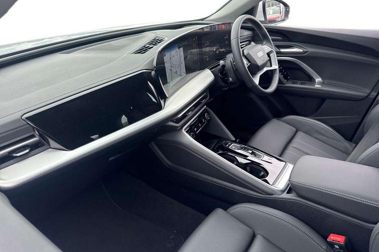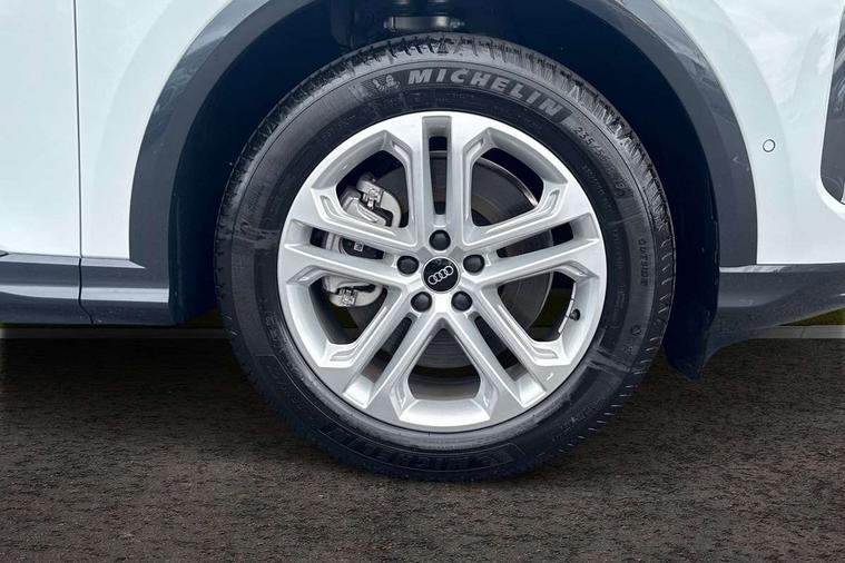 Adaptive cruise control, Advanced driver attention alert, Audi application store, Audi connect emergency call and service, Audi drive select, Audi smartphone interface, Audi virtual cockpit plus with 11.9" OLED colour display, Camera based traffic sign recognition, Fatigue monitor, Front cross traffic intersection assist, Lane departure warning system, MMI navigation plus with high resolution 14.5" OLED touchscreen colour display, Park assist plus, Parking system plus with 360 display, PAS, Reversing camera, Swerve assist and turn assist, Traffic sign based speed limiter, Comfort suspension, 2 USB-C ports in both the front and rear, Audi sound system impressive sound with 8 loudspeakers including centre speaker and subwoofer, 6-channel amplifier with a total output of 180 watts, DAB Digital radio, Smartphone compartment with wireless charging, Aluminium roof rails, Auto dimming rear view mirror, Body coloured door mirrors, Coming/leaving home lighting function, Contrast bumpers in Volcano grey metallic paint finish, Electrically adjustable heated and folding + automatically dimming exterior mirrors, Front and rear electric windows, Front door sill trims with aluminium inlays, illuminated, Headlight cleaning system, Heated rear window, High beam assist, High gloss window surrounds, LED headlights plus incl. digital DRL, dynamic coming and leaving home function with turning/all weather/motorway/manouevring and intersection lights, LED rear lights pro incl. dynamic rear indicators and illuminated light strip with animated coming and leaving home function, LED third brake light, Logo projection light in exterior mirrors, Rear and side windows with heat insulating glass, Rear side wing doors, Rear wash/wipe, Towbar preparation, Windscreen with acoustic glazing, 3 rear head restraints, 3 seat bench in 2nd row, 40:20:40 split folding rear seat bench with centre armrest and cup holders, Comfort centre armrest, Deluxe 3 zone electronic climate control, Front and rear floor mats, Front seats with manual adjustment for position and 4-way electric lumbar support, Front sport seats with integrated head restraints, Heated front seats, i-Size child seat mounting on the front passenger side and outer rear seats, i-Size and top tether on the outer rear seats, Interior trim in aluminium look, Luggage compartment lid, electrically opening and closing, Manual steering column adjustment, Rock grey cloth headlining, Single front passenger seat, Softwrap in leatherette, Twin leather upholstery, Twin spoke leather steering wheel with multi-function buttons with touch control, shift paddles and trim in chrome look, Ambient lighting package plus - Q5, 3x3 point rear seatbelts, ABS, Acoustic vehicle alerting system, Driver and front passenger airbag with passenger airbag deactivation, Electric child safety locks, First aid kit with warning triangle and high visibility vests, Front emergency brake assist, Front side airbags with head airbag system and front interaction airbag, Hill hold assist, Rear seat occupant reminder, Tyre pressure loss indicator, Anti theft alarm, Anti-theft wheel bolts, Remote control key with SAFELOCK and keyless go, Accent surfaces and control buttons in gloss black, Black dashboard with contrast stitching, Matt brushed aluminium inlays, Steel grey seat stitching, Upper and lower interior elements in artificial leather, Tyre repair kit,