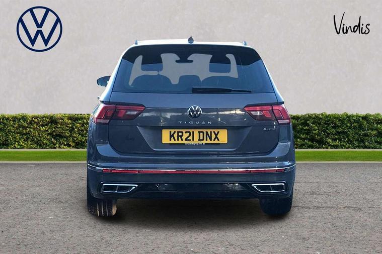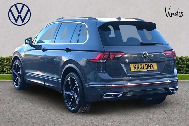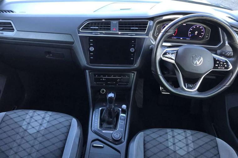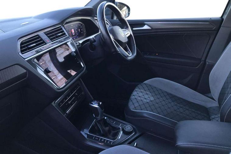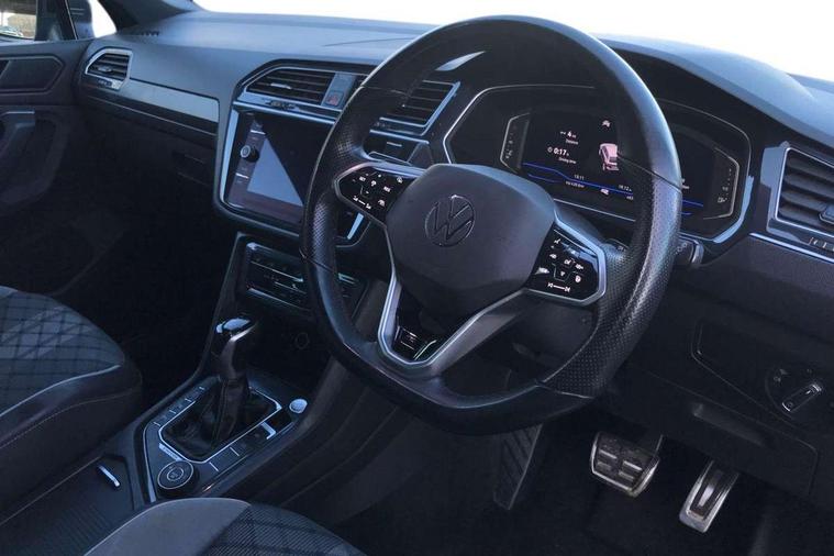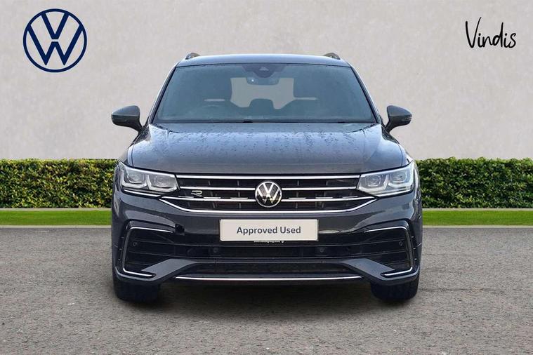 Ambience pack - Tiguan R Line, Driver assistance pack plus - Tiguan, 20" Misano black with diamond turned surface alloy wheels with Airstop tyres, Anti theft alarm system with interior monitoring, backup horn and towing protection, Anti theft wheel bolts, Electronic engine immobiliser, 2 USB-C ports in the front, 1 USB-C charging socket on the center console in the rear, Diversity antenna for FM reception, Radio, SD card slot, Simultaneous pairing of 2 compatible mobile devices, SMS functionality - read, compose and send SMS messages using touch-screen display, Title and cover art display, 3 point seat belt for centre rear seats, 3 point seat belts with seat belt pretensioners for the outer rear seats, Active bonnet, Curtain airbags for front and rear passengers, Driver/Front Passenger airbags, Drivers knee airbag, Electronic parking brake with auto hold, Electronic Stability Control with driver steering recommendation, ABS, ASR, EDL, EDTC and trailer stabilization, Front assist with autonomous emergency braking (for Adaptive Cruise Control ACC up to 130 mph), Front disc brakes, Front passenger airbag deactivation, Front side airbags, Height adjustable front 3 point seatbelts + pretensioners, Hill hold control, Pedestrian monitoring system, Proactive passenger protection system in combination with front assist, Rear disc brakes, Rigid safety cell with front and rear crumple zones, Two tone horn, Warning sound and light for front seat belts if unfastened, Warning triangle, Auto dimming interior rear view mirror, Automatic headlight control system, Black roof rails, Body colour door handles, Body coloured bumpers in R Line style, Chrome moldings on the side windows, Coming/leaving home lighting function, Dynamic headlight range control, Front and rear electric windows, Heated rear window, High level 3rd brake light, Laminated safety glass windshield, heat and sound insulating, LED rear number plate lights, License plate carrier in front and rear, Poor weather light and cornering light, Power adjustable, folding and heated door mirrors with surround lighting, front passenger exterior mirror lowering function, Privacy glass for rear side windows and rear window, R Line body kit, R Line side sills, Rain sensor windscreen wipers, Rear exhaust tailpipe, Rear fog lamp, Rear spoiler in R style, Rear windscreen washer and wiper with interval delay, Side and rear windows in heat insulating glass, Trailer Stability Programme, Unique R Line badging, Windscreen wipers/ intermittent wipe + 4 position delay, 12V outlet in center console rear and in luggage compartment, 2 cup holders in front, 2 LED front reading lights, 2 LED rear reading lights, 3 rear headrests, 4 load lashing points, 40:20:40 split folding rear seats, Air Care Climatronic 3 zone automatic climate control with enhanced air filter and controls in the rear, Backrest release for left front seat, Black headlining, Brushed stainless steel pedals and footrest, Carpet mats in front and rear with decorative stitching in Gray, Door and side trim panel in foam film, insert in leatherette, Front footwell illumination, Front seats head restraints (x-adjustment), Height adjustable front seats, Height/reach adjust steering wheel, Instrument lighting white adjustable panel illumination, Interior light with delay, Isofix Preparation 2 Rear child seats, Leather gear knob, Lockable cooled glovebox, Luggage compartment lighting, Rear bench seat asymetrically split folding, longitudinally movable and folding with load-through hatch and center armrest, Remote unlocking for rear seat backrest, Removable luggage cover, Safety optimised front head restraints, Sliding/reclining rear seats, Standard rear seat release, Storage compartment in driver's door, Storage compartment in passenger's door, Storage compartment in rear doors, Storage compartments in luggage area left and right, Storage tray on dashboard, Sun visors with illuminated vanity mirrors, Tool kit, Top front comfort seats, Variable boot floor, height adjustable and removable, Adaptive cruise control ACC stop and go including speed limiter, App-Connect incl. App-Connect Wireless for Apple CarPlay and Android Auto, Bluetooth phone integration system, Digital Cockpit Pro - Active info display, Distance control assist, Driver alert system, Driver profile selection, Dynamic road sign display, eCall emergency call system, Electromechanical speed sensitive power steering, Lane keeping system Lane Assist, Lights on warning, Multifunction front facing camera, Outside temperature display, Premium multifunction display with multi colour display, Service interval indicator, Start/stop system with regenerative braking, Tailgate/trunk lid unlocking from outside, Warning sound and light for doors and tailgate open, Battery regeneration during braking, Diesel particulate filter, Misfuel prevention device for diesel engine, XDS electronic differential lock for improved traction and handling,