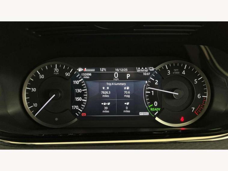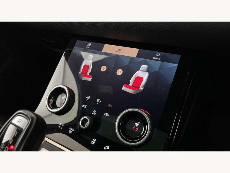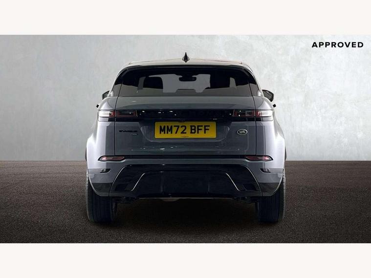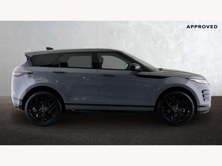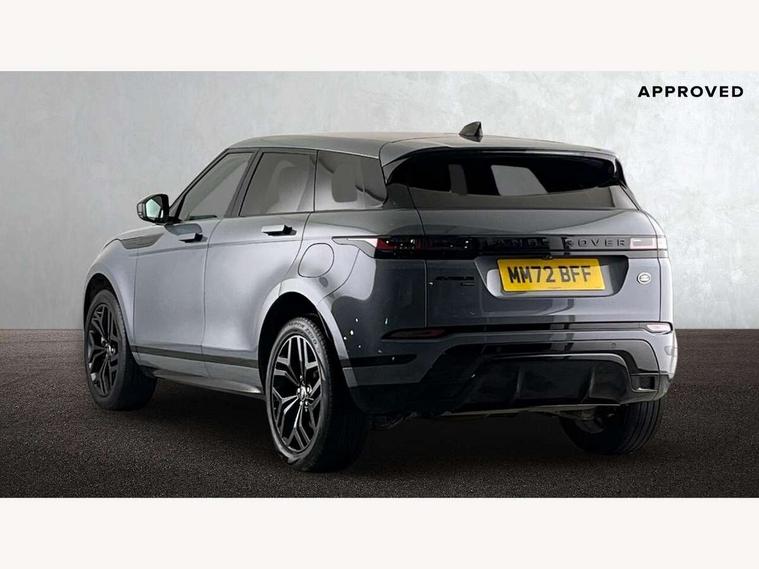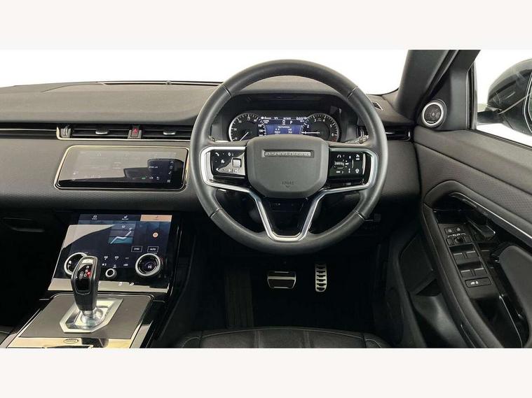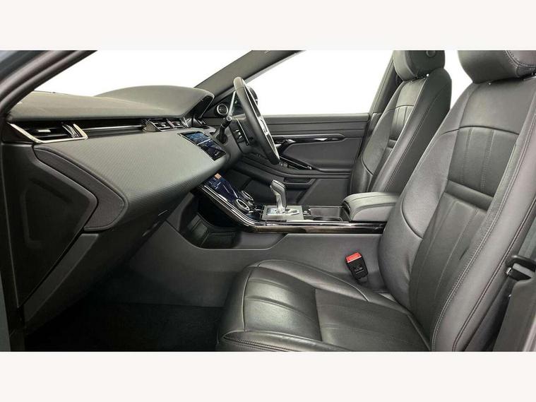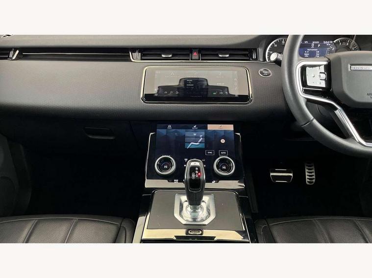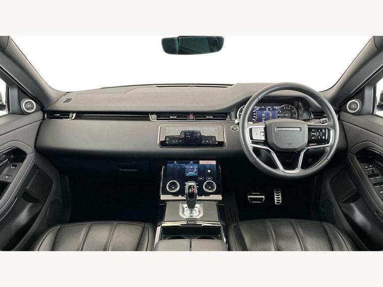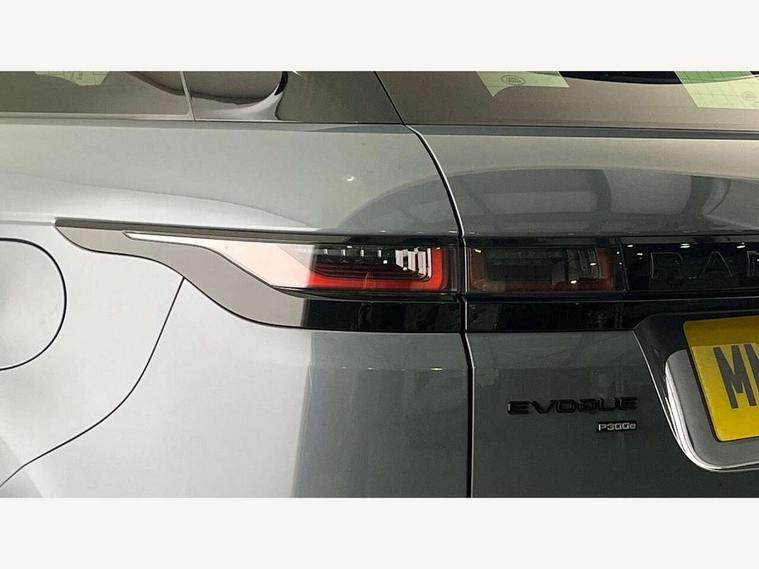 Adaptive cruise control, Android Auto, Apple car play, Bluetooth connectivity, Brake pad wear indicator warning light, Driver condition monitor, eCall emergency system, Electronic power assisted steering (EPAS), Front and rear parking aid, InControl remote, Land Rover InControl apps, Lane keep assist, Pivi pro connected includes upgraded infotainment, connected navigation pro, Nuance speech licence, Push button starter, Traffic sign recognition with adaptive speed limiter, Voice control system, 7 kW onboard charger, All terrain progress control, Electric rear axle drive, Home charging cable, Large fuel tank, Passive suspension, Public charging cable, Terrain Response 2 Auto, Digital Audio Broadcast radio-DAB, Steering wheel mounted controls, Auto headlights, Daytime running lights, Electric windows with one touch open/close and anti trap, Evoque and R-Dynamic badge, Flush deployable exterior door handles, Heated rear window with timer, Heated washer jets, Heated windscreen, P300e badge, Power fold, auto-dimming, heated door mirrors with approach lights and auto dimming driver side, Privacy glass, Rain sensing windscreen wipers, Rear fog lights, Rear side wing doors, Rear wiper, Tailgate spoiler, Third brake light, 40:20:40 split folding rear seats with centre headrest and armrest, Ambient interior lighting, Bright metal pedals, Heated steering wheel, Isofix system on outer rear seats, Overhead lighting console, Overhead stowage for sunglasses, Passive front head restraints, Rear air vents, Rear centre headrest, Rear head restraints, Satin chrome gearshift paddles, Single passenger seat, Sunvisors with illuminated vanity mirrors, Twin sliding front centre armrest, 3 rear 3 point seatbelts, Anti-lock braking system (ABS), Customer configurable autolock, DSC - Dynamic Stability Control, Electronic brake force distribution, Electronic parking brake, Electronic traction control, Emergency braking, Front and rear seatbelt reminder, Hill descent control, Hill launch assist, Low traction launch, Power operated child locks, Roll stability control, Six airbags - Driver and passenger airbags/driver knee airbag/front side airbag and curtain airbags, Torque vectoring brake, Tyre pressure monitoring system, Alarm, Immobiliser, Intrusion sensor, Locking wheel nuts,